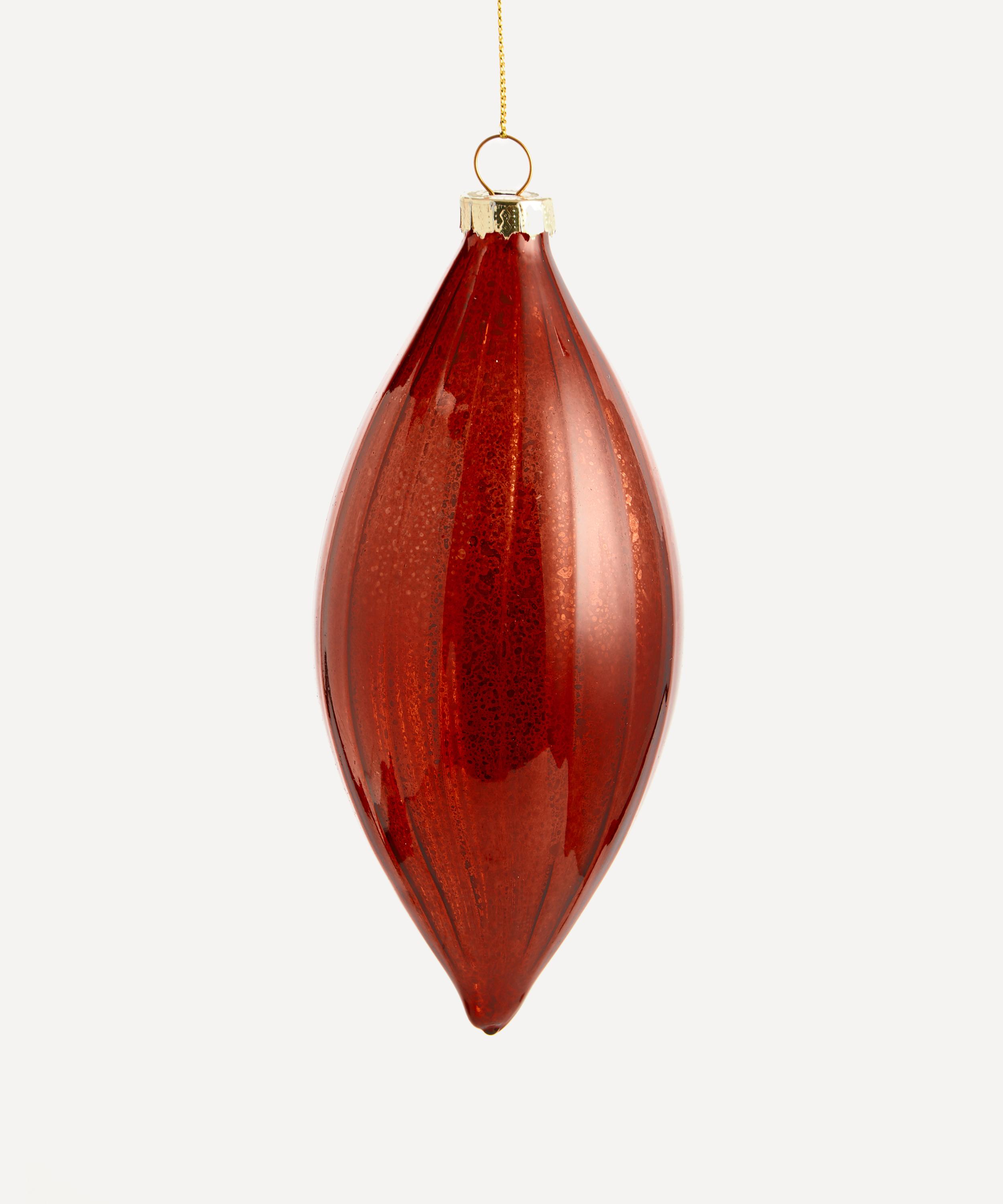 Designed in a classic teardrop form, this festive red bauble features an ornate antique-style finish. An eye-catching ornament to adorn your tree with year after year.