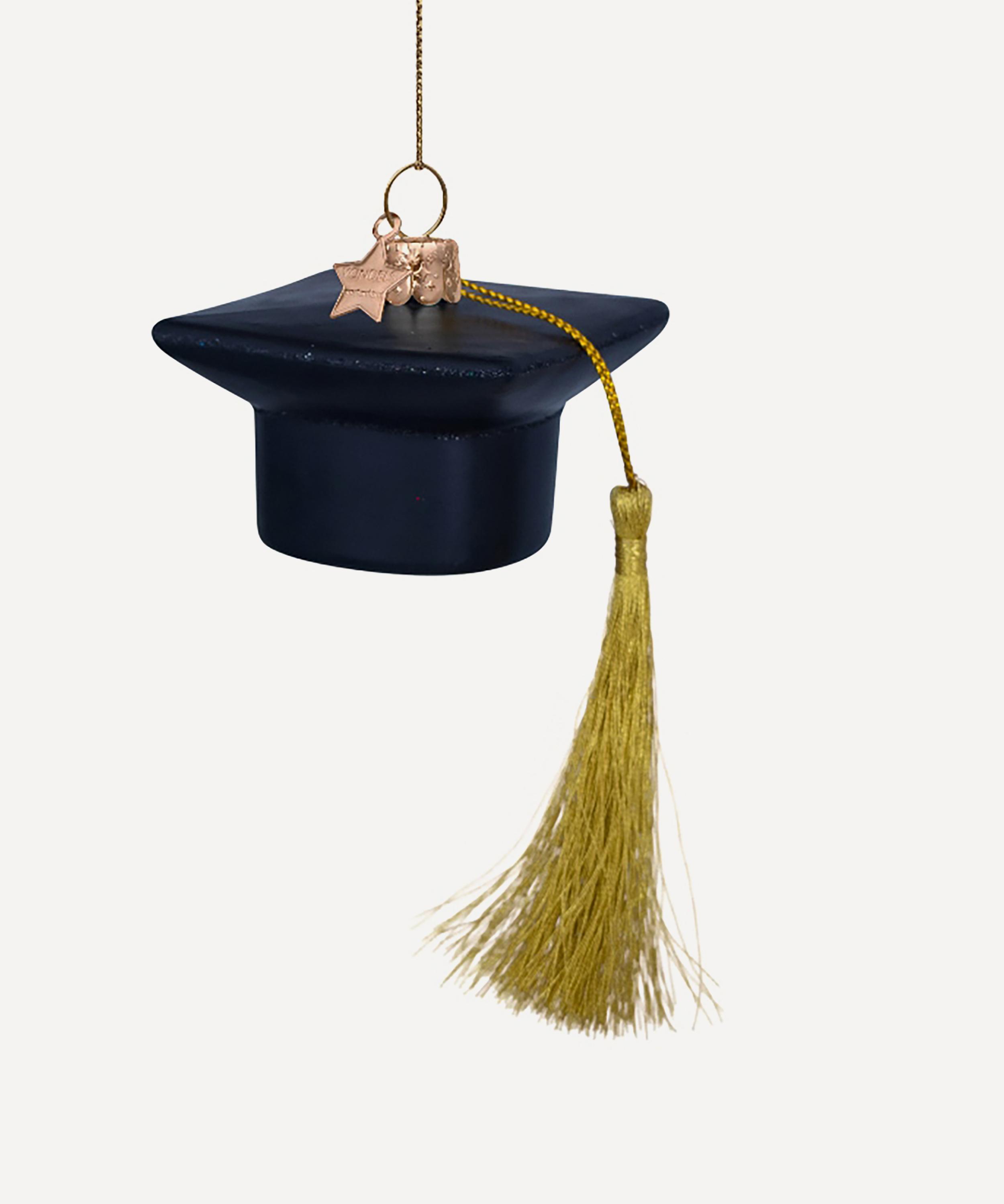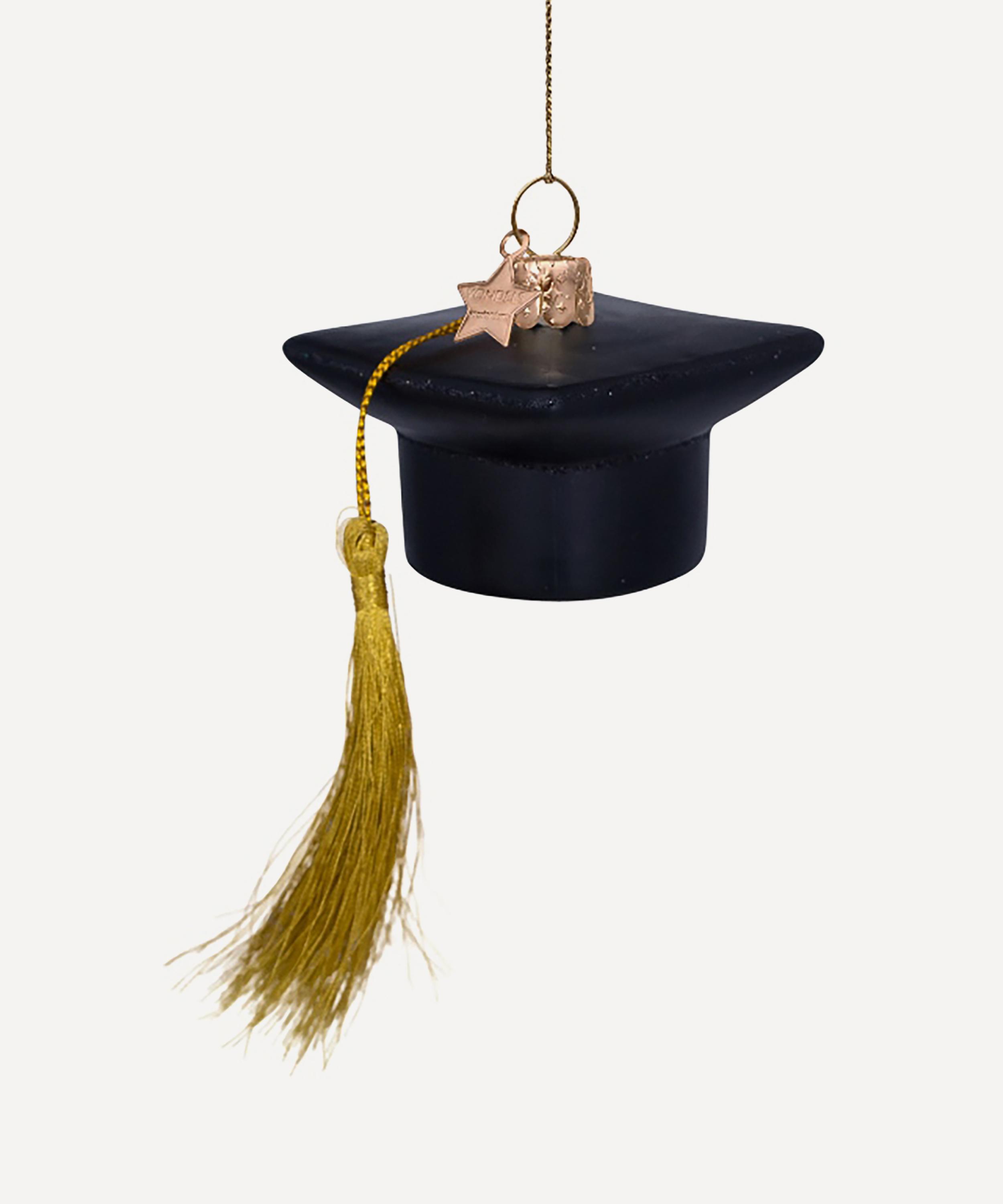 This hand-painted ornament takes the form of a traditional mortarboard hat, complete with a golden tassel and festive fine glitter detailing. Hang it on this years’ pine for best-in-class decorations.