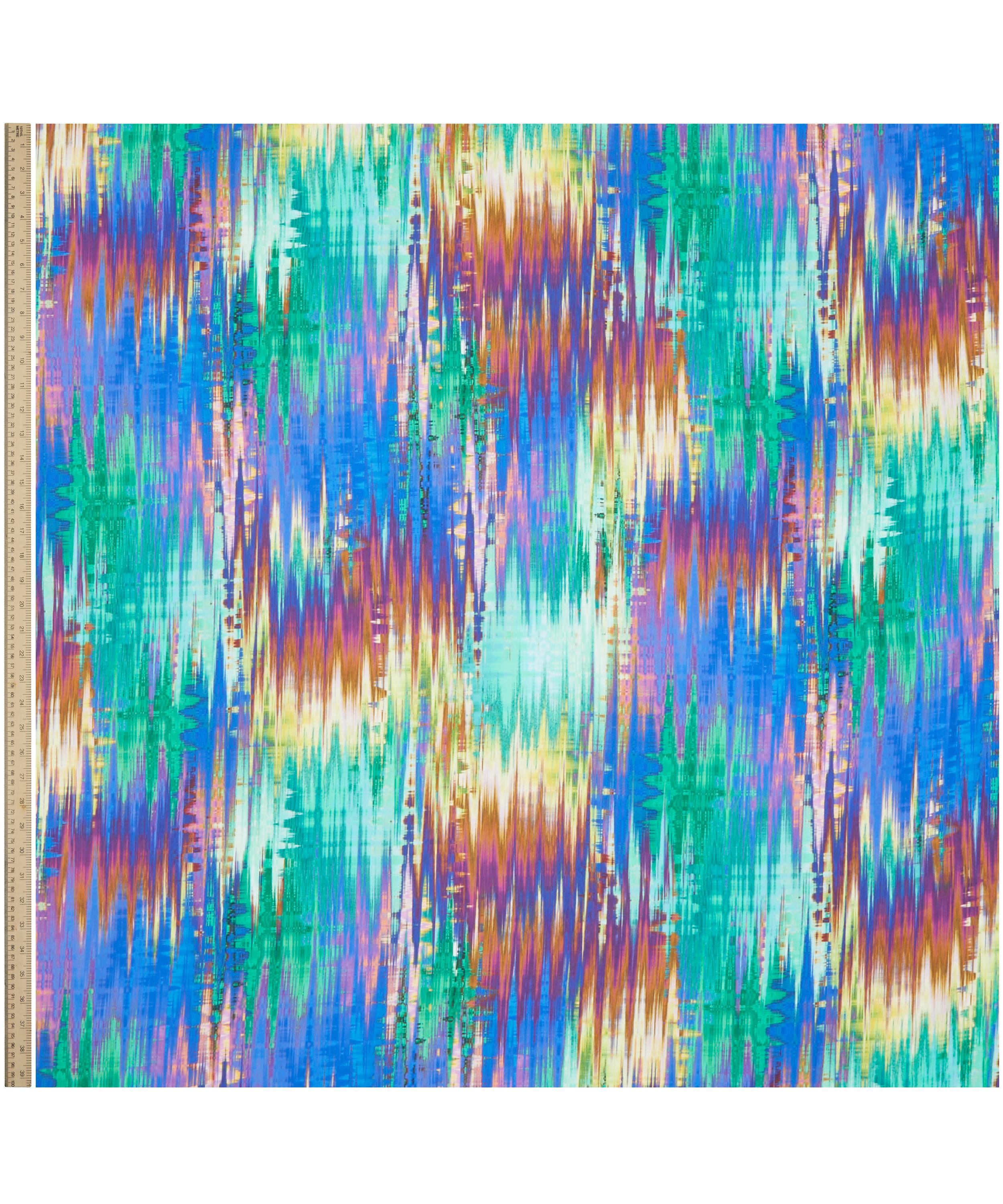 This striking architectural pattern features an imaginary urban landscape, filled with Art Deco style skyscrapers from a series of Liberty scarves designed by Bernard Nevill in 1969. Glitch is part of The Next Act of Retold where, in celebration of 150 years, we looks to where our future waits in the wings - from digital imaginings to celebrated classics in contemporary guises, the new generation of designers experiment with the boundaries of the relationship between art and technology.