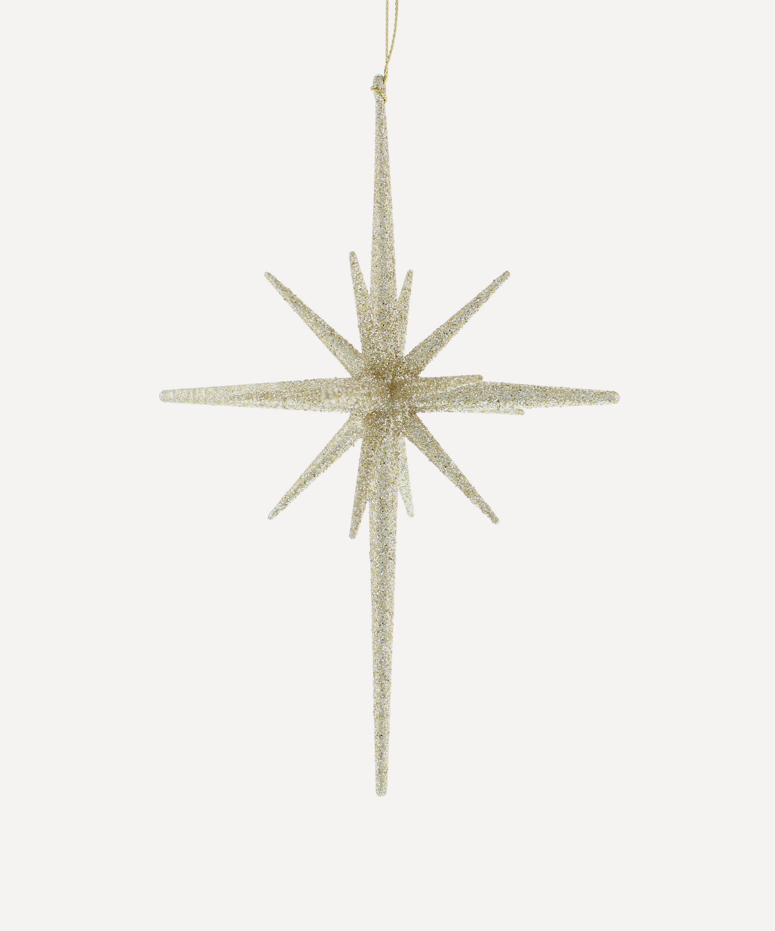 Add a twinkle of sparkle to your evergreen pine this season with the Glitter Starburst ornament, exuding whimsical charm with a touch of opulence through its glittering gold details.