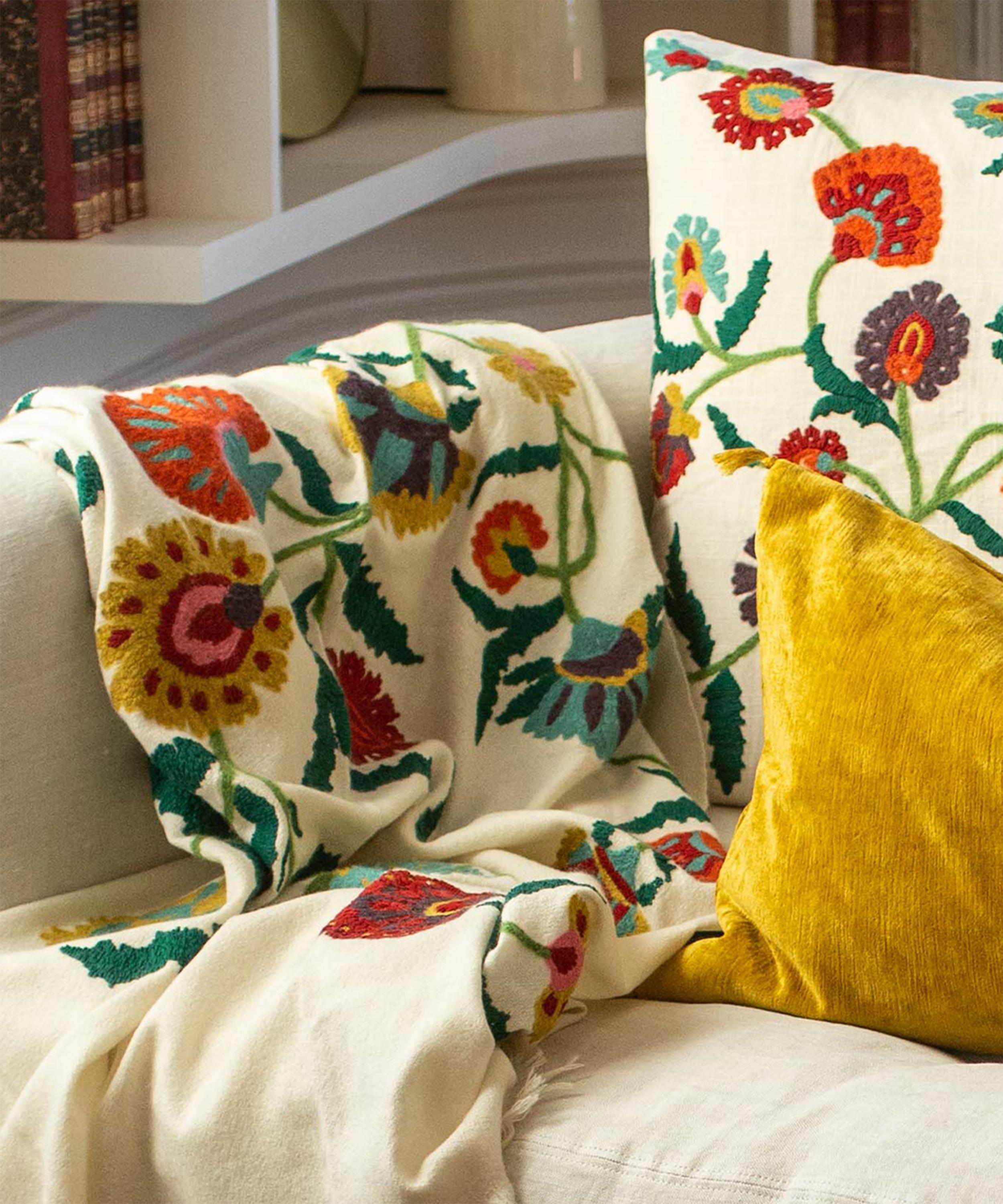 A homeware brand that celebrates the eclectic landscape of a lived-in home, this blanket presents a beautifully embroidered design with slightly irregular contours - perfect for adding texture and comfort to interior spaces.