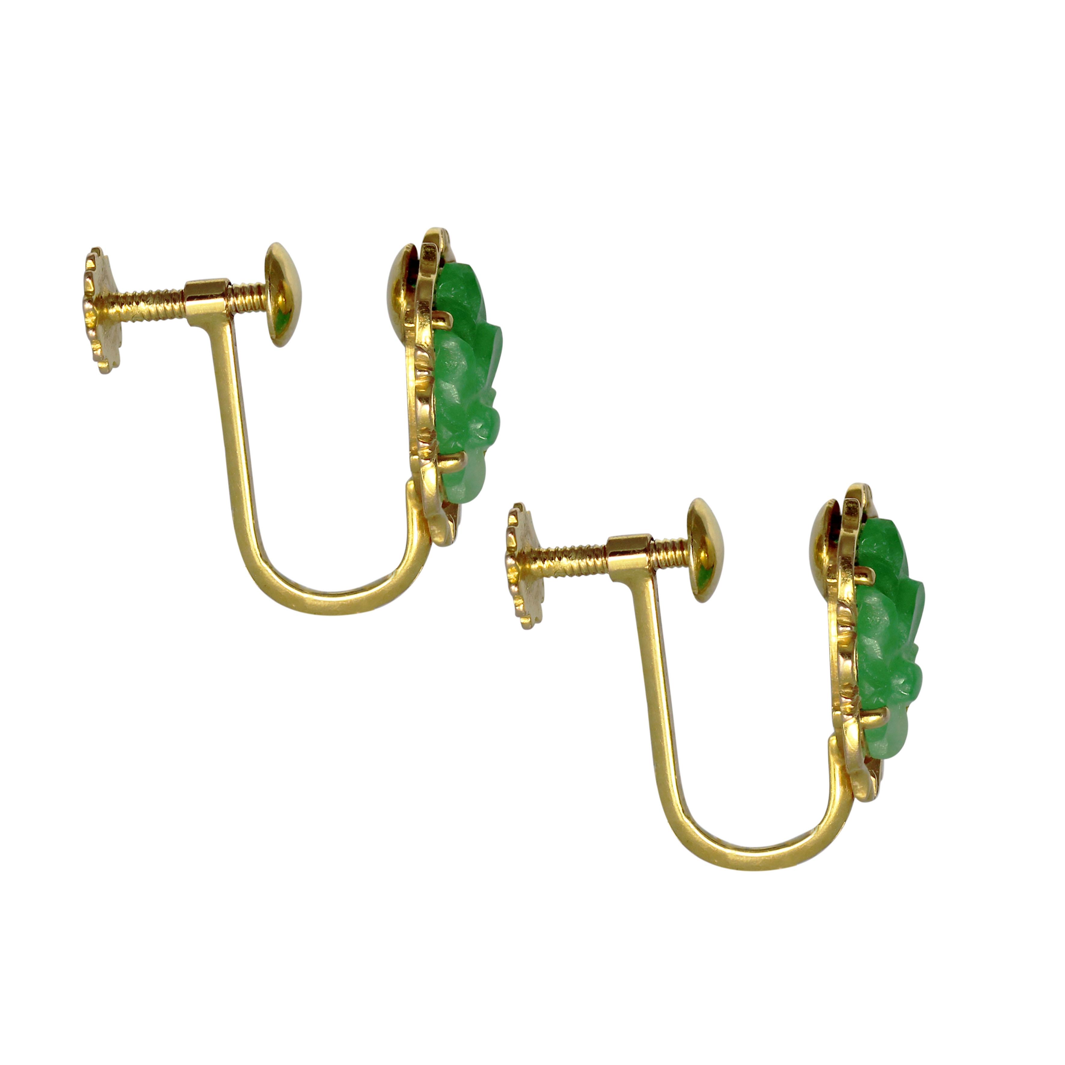 Gold 1960s Jade Screw-Back Earrings