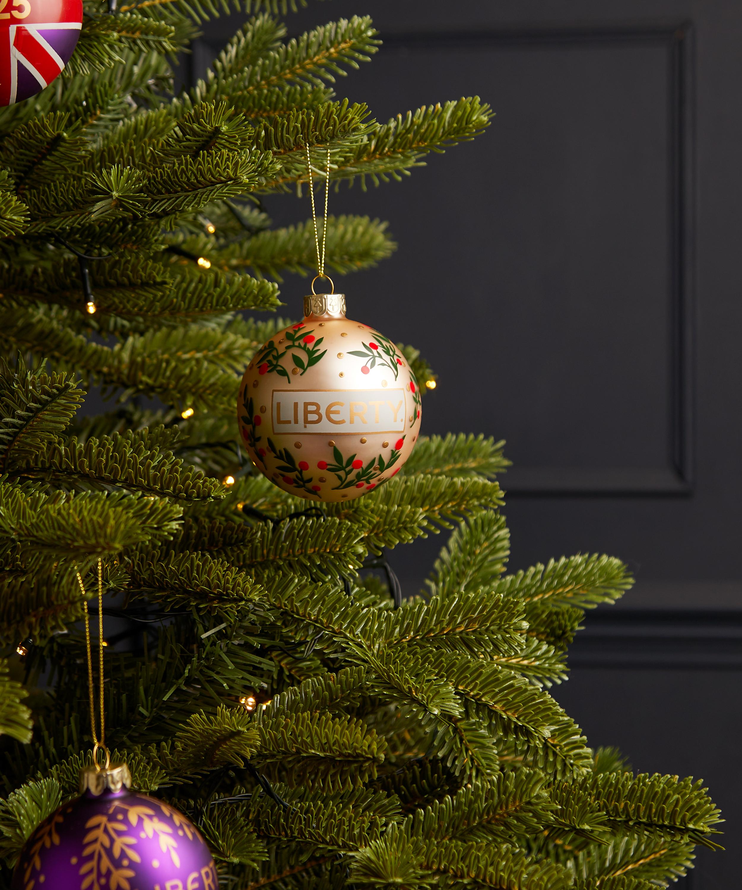 It’s expertly crafted from glass and defined by a standout, glittered Liberty and seasonal berries decoration – making it easy to work into your Yuletide line-up. Mix and match it with traditional decorations and motifs or create a refined palette of contemporary colours and finishes by pairing it with your modern Christmas décor.
