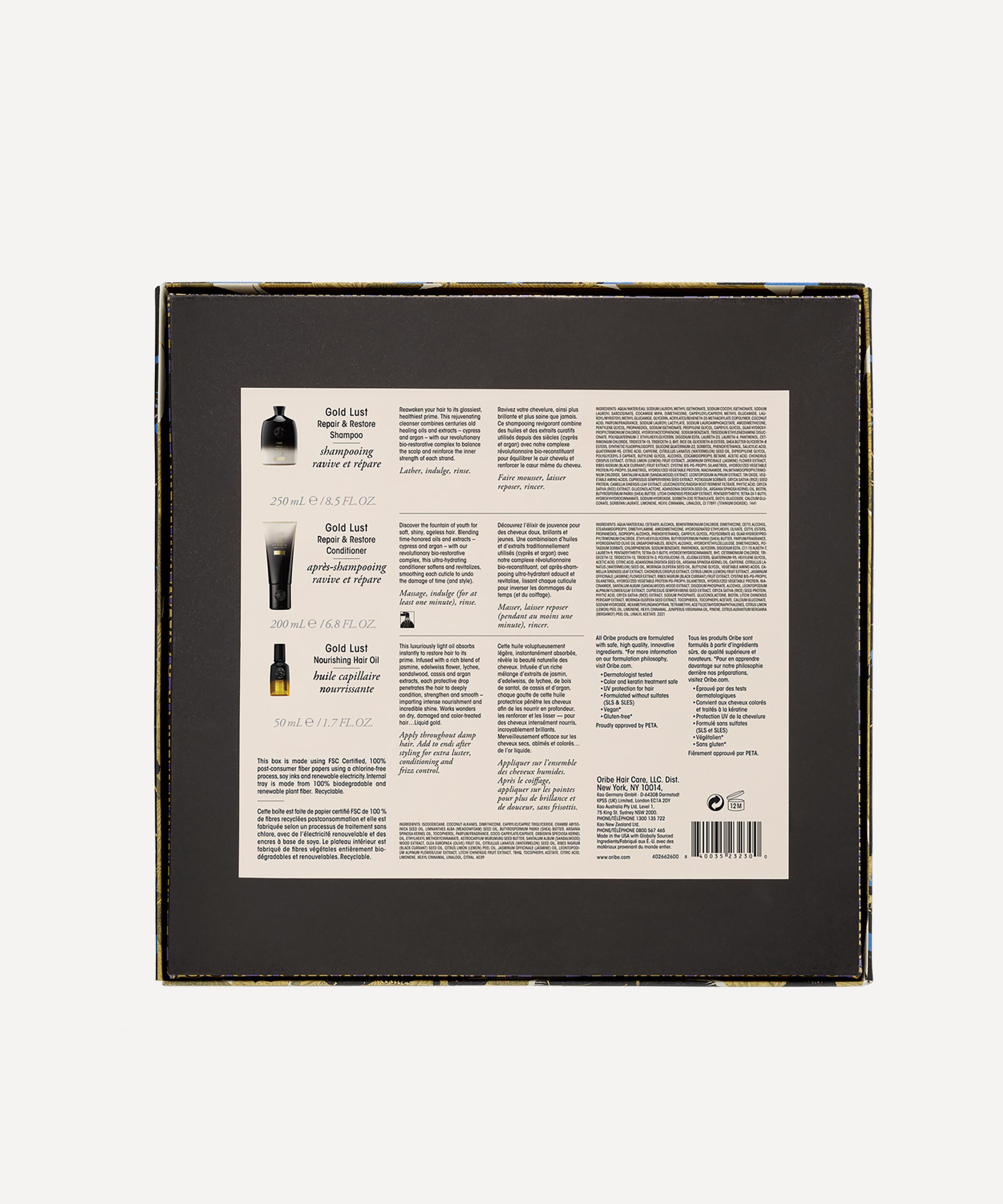 - Includes: Gold Lust Repair & Restore Shampoo 250ml, Gold Lust Repair & Restore Conditioner 200ml, Gold lust Nourishing Hair Oil 50ml