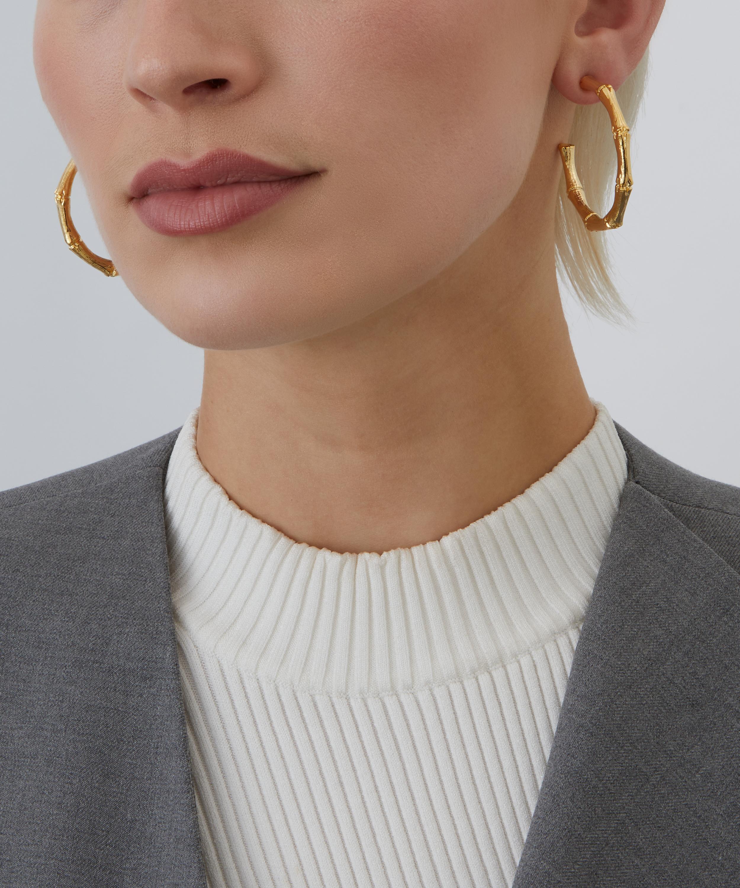 Crafted from gold-plated sterling silver, these shining open-back hoops feature a bamboo segment design, and are complete with post and bell fastenings. Style this understated pair with co-ordinating pieces from the collection for an impactful look.