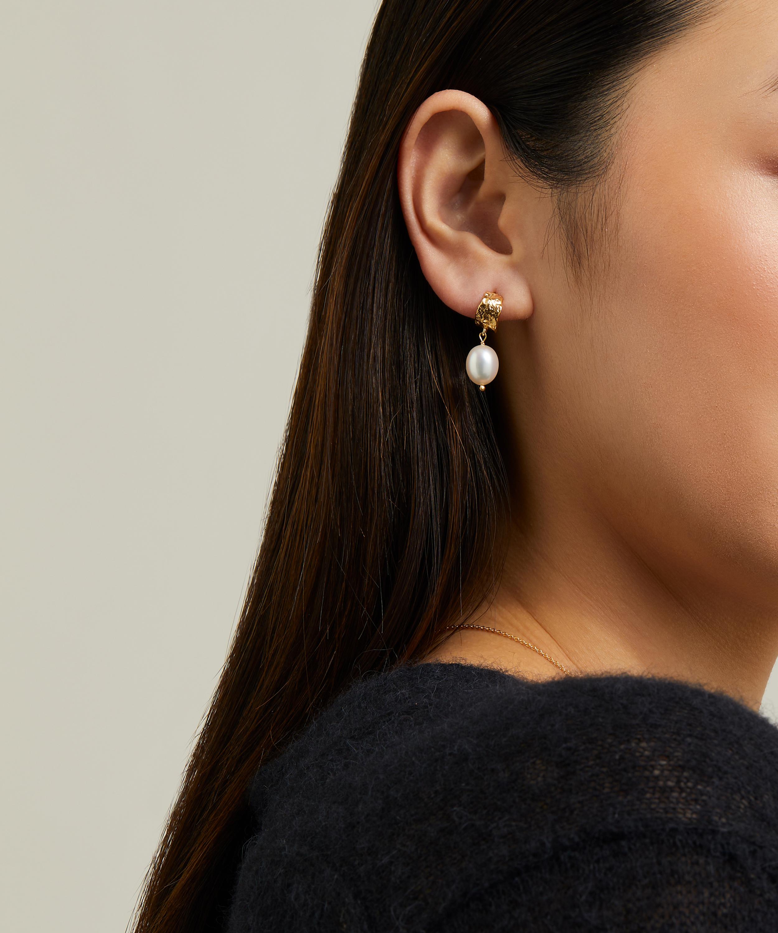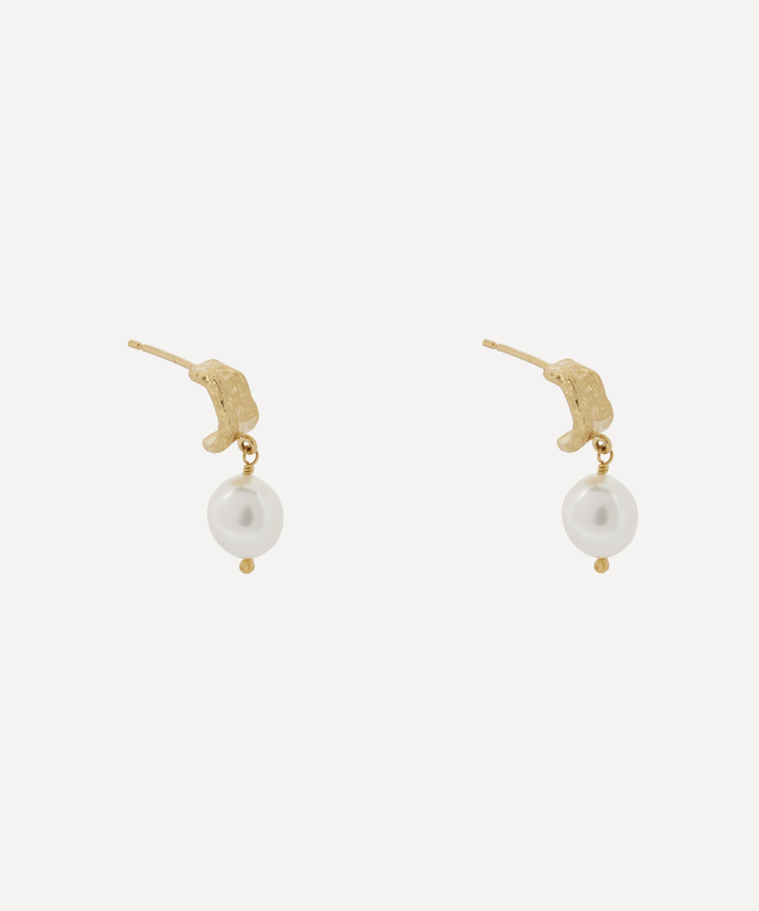 Alex Monroe's Bark huggie hoop earrings showcase the designer's affinity for natural motifs. Handcrafted in the brand's London studio from gold-plated silver, each earring features an open huggie hoop adorned with an etched bark finish and freshwater baroque pearl drops. Mix and match with other natural motifs from the brand's collections for a wearable representation of the elegance and delicacy of the natural world.
