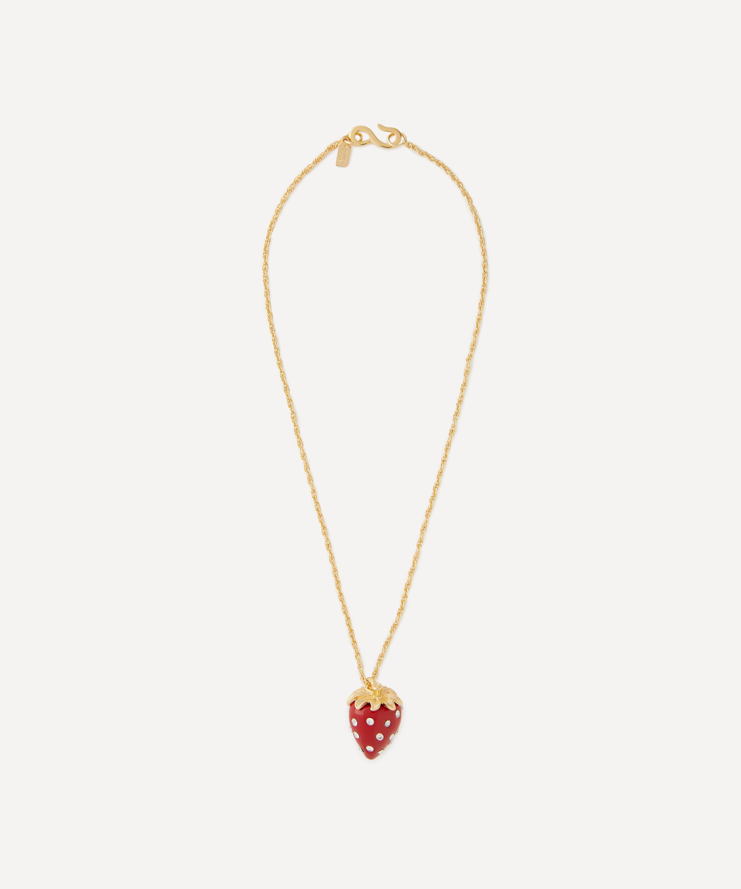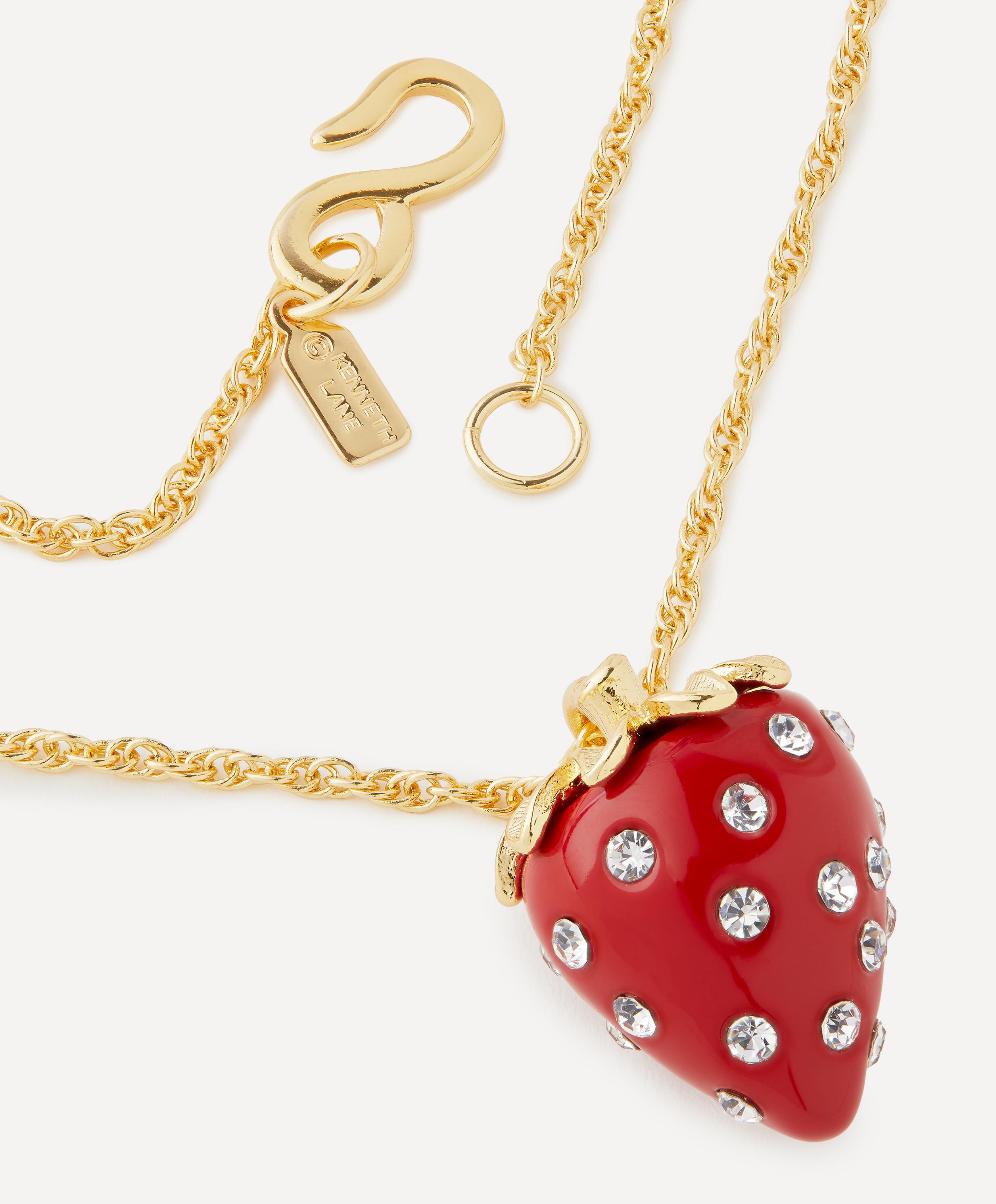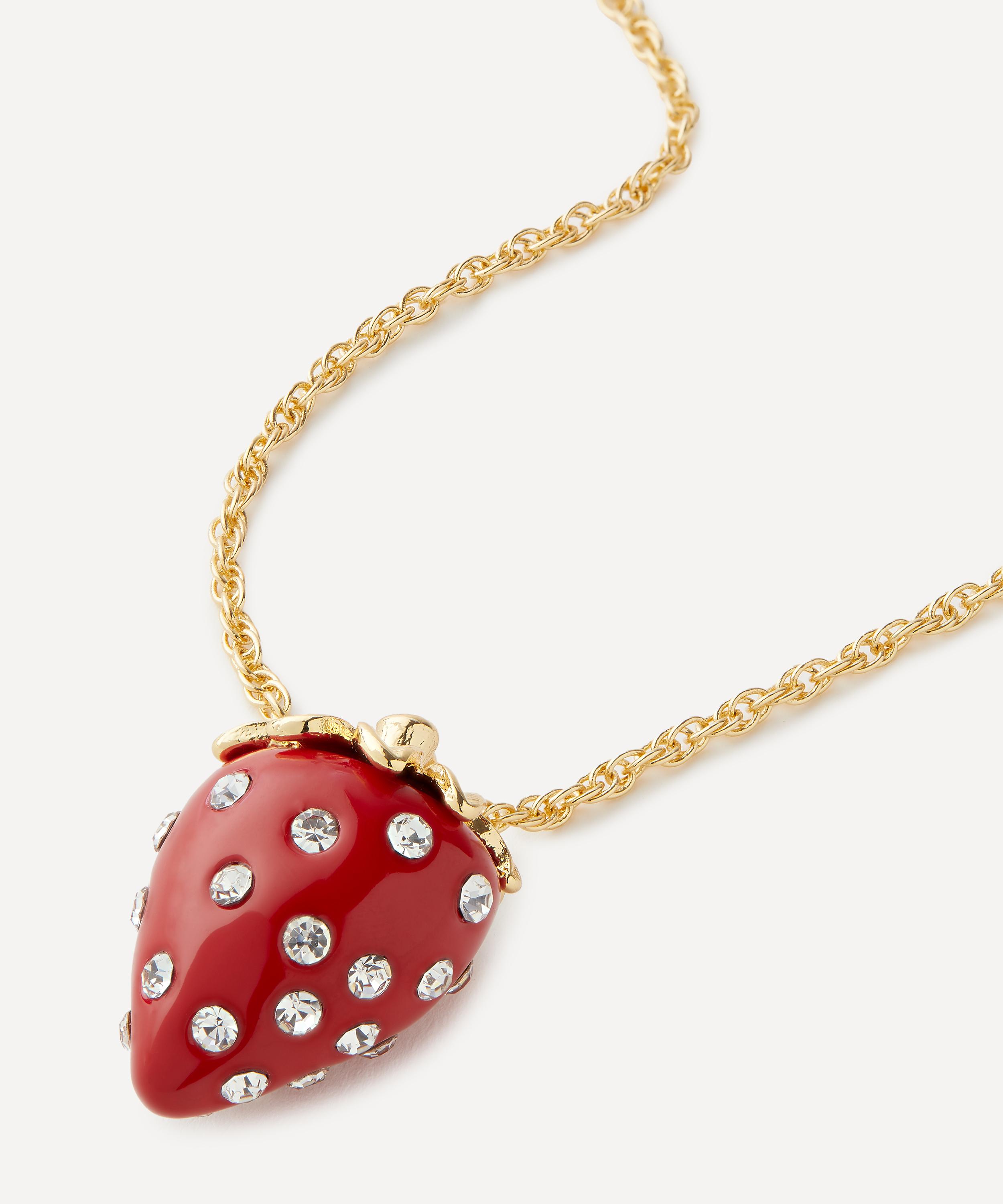 This crystal resin strawberry pendant necklace is a playfully designed piece from the renowned eponymous jewellery brand of American fashion jeweller Kenneth Jay Lane.
