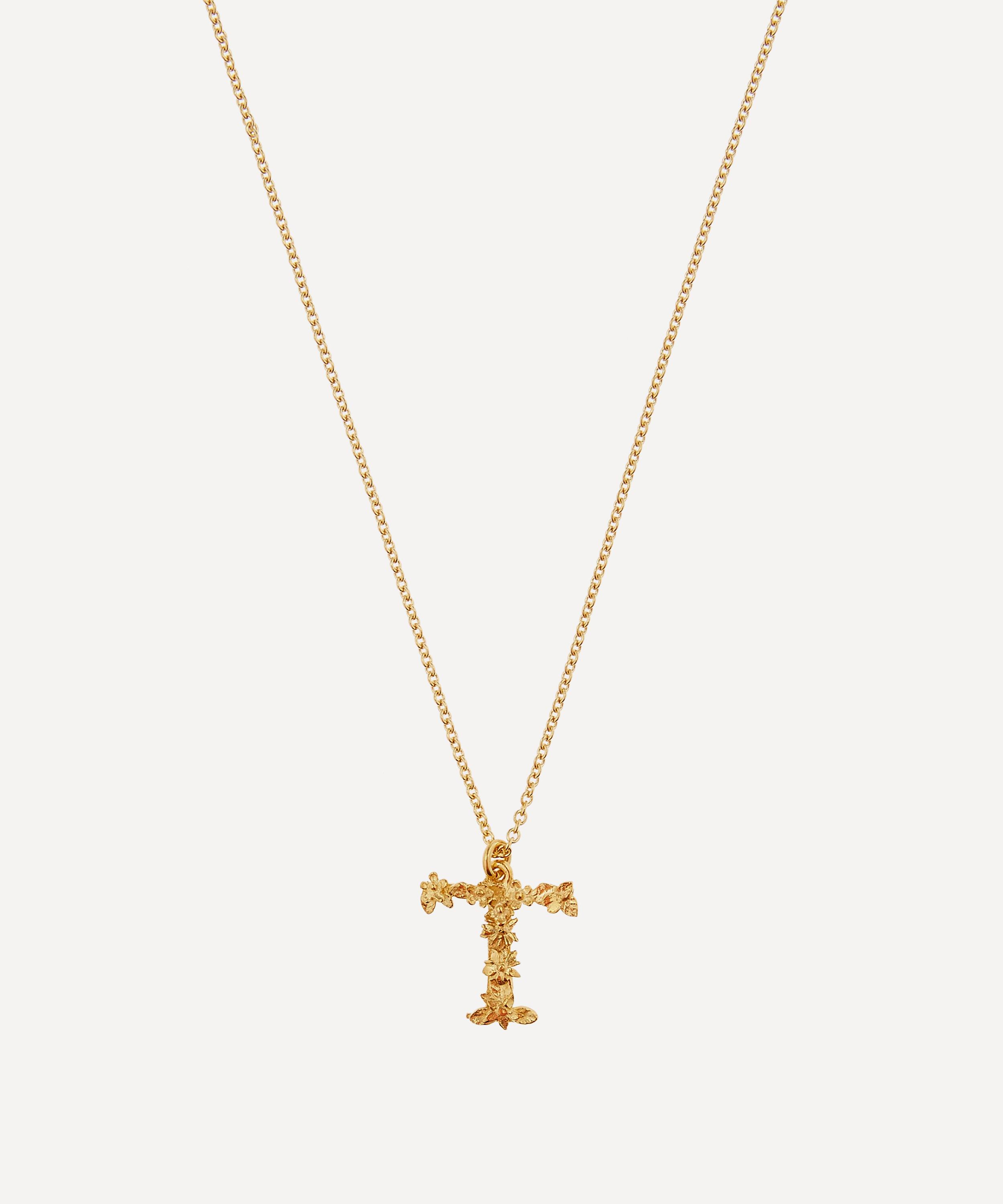 Forever inspired by a childhood spent roaming the wild of Suffolk, nature is an eminent reference for Alex Monroe and every piece of his jewellery begins life as an original sketch. These incredibly detailed, floral initial pendants are sculpted from gold-plated sterling silver and are suspended from fine gold cable link chains. An unusual, beautiful and thoughtful gift that will be treasured for years to come.