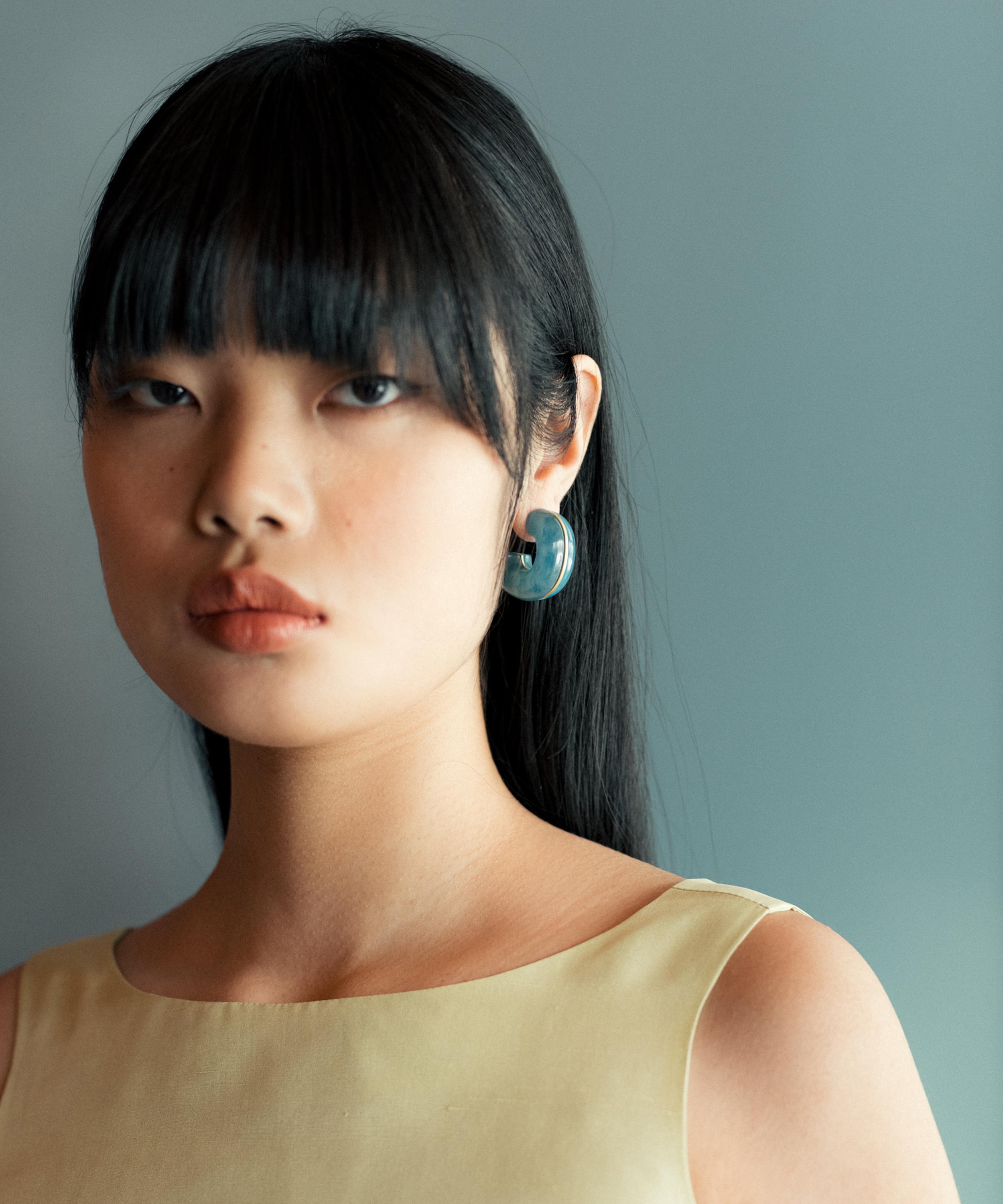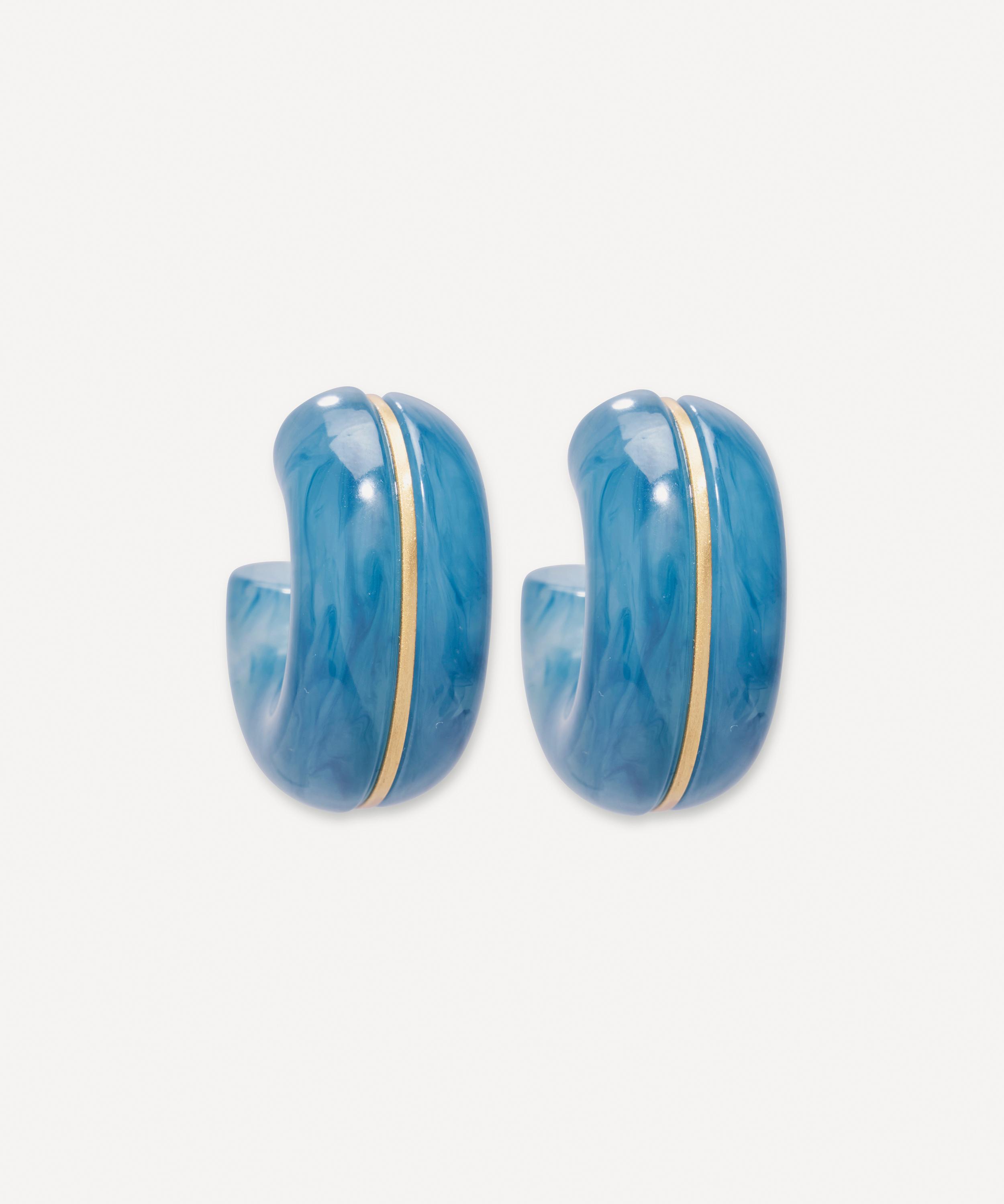 The Halo hoop earrings in Indigo are part of Lizzie Fortunato's artisanal jewellery collection – a triumph of innovative and vibrant designs that tell a story. Featuring a graphic resin hoop in a chunky, bulbous silhouette, they stand out with a gold-plated brass detail inlaid down the centre of the hoop. These stunning creations are perfect for a special occasion or to add a touch of dramatic flair to your everyday ensemble.