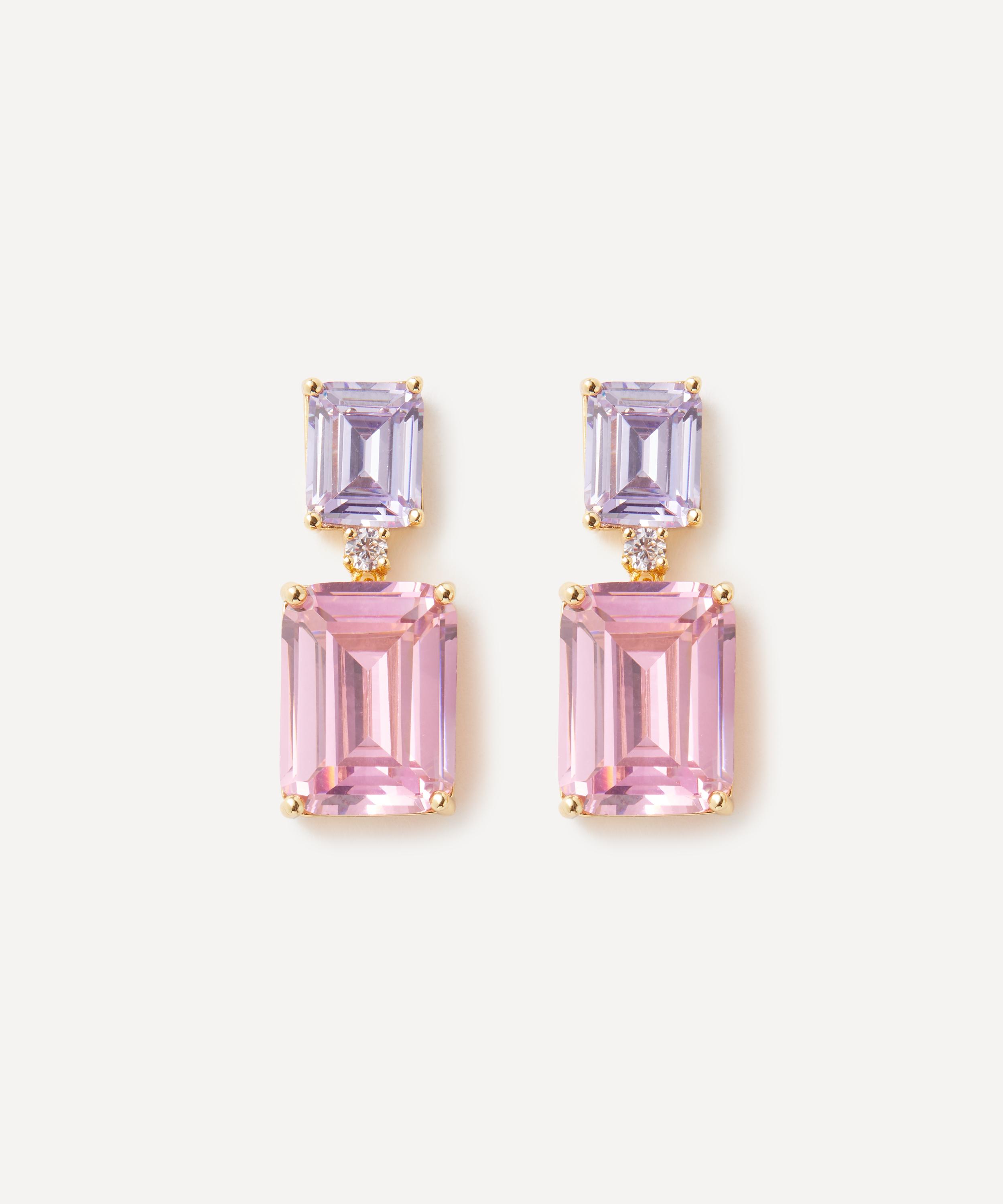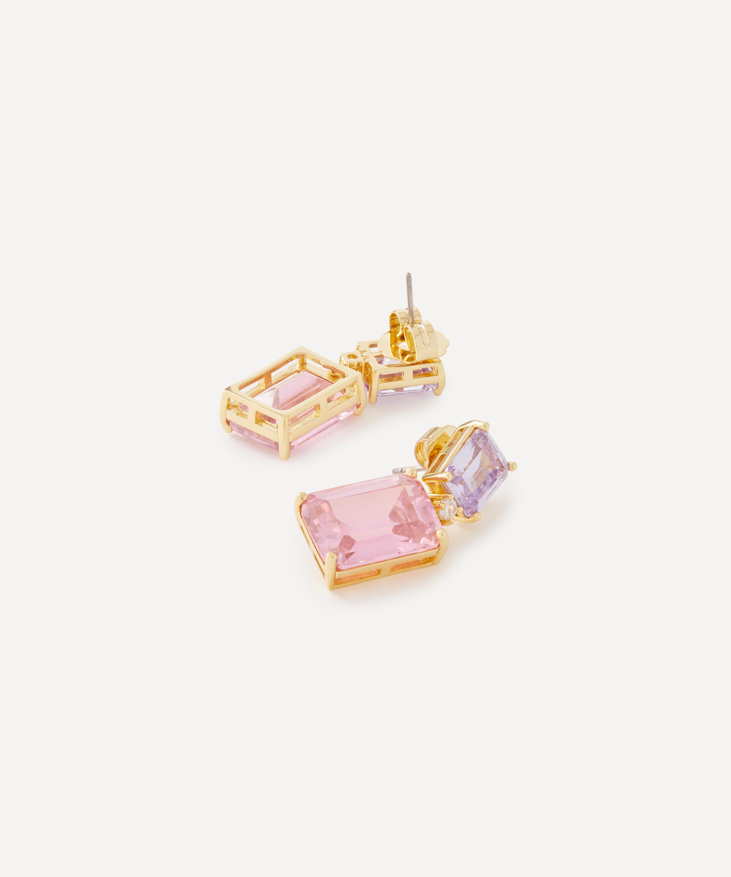 CZ by Kenneth Jay Lane Gold-Plated Lavender and Pink Rectangle Drop Earrings