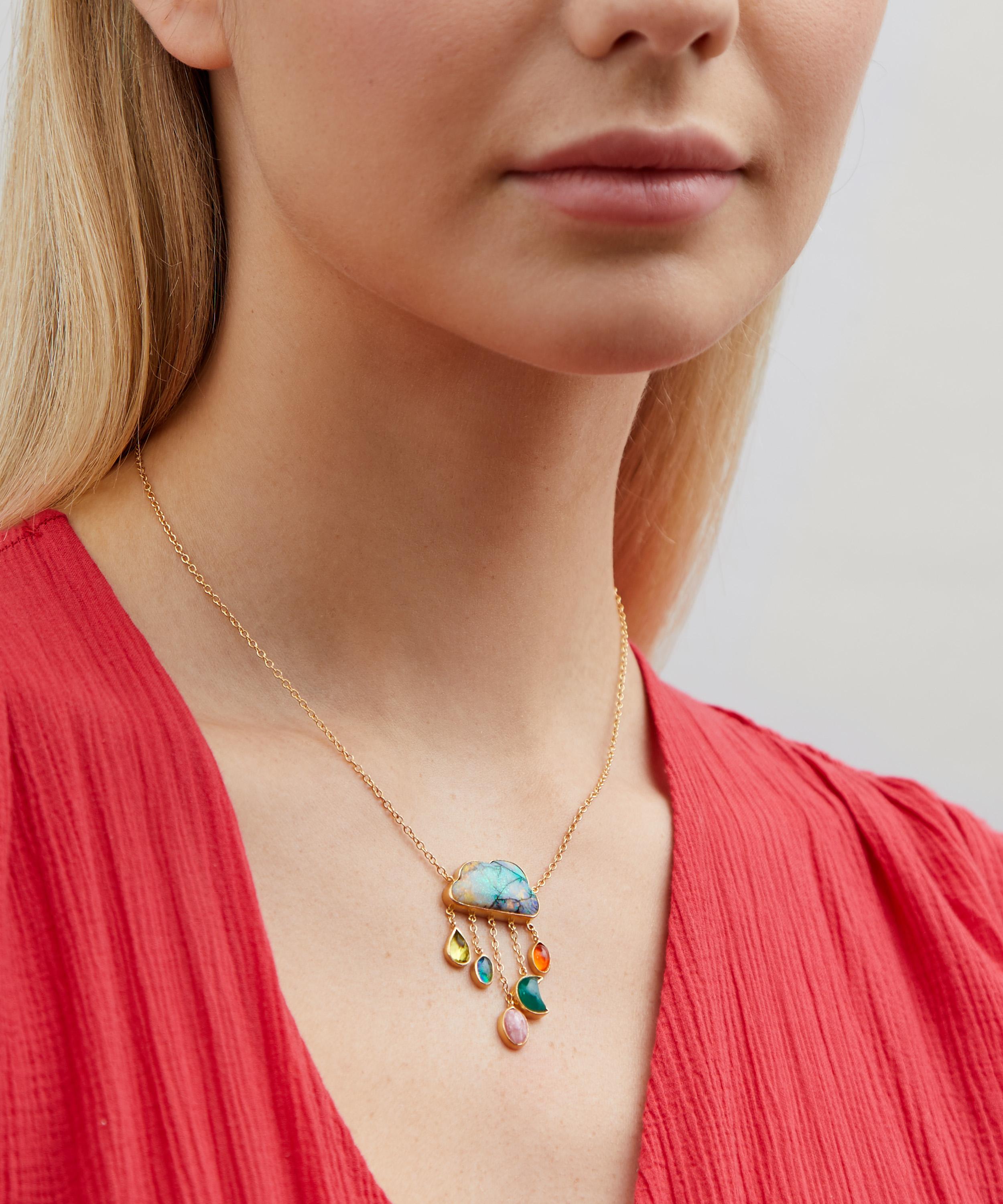 Gold-Plated Opal Cloud and Rain Multi-Stone Pendant Necklace