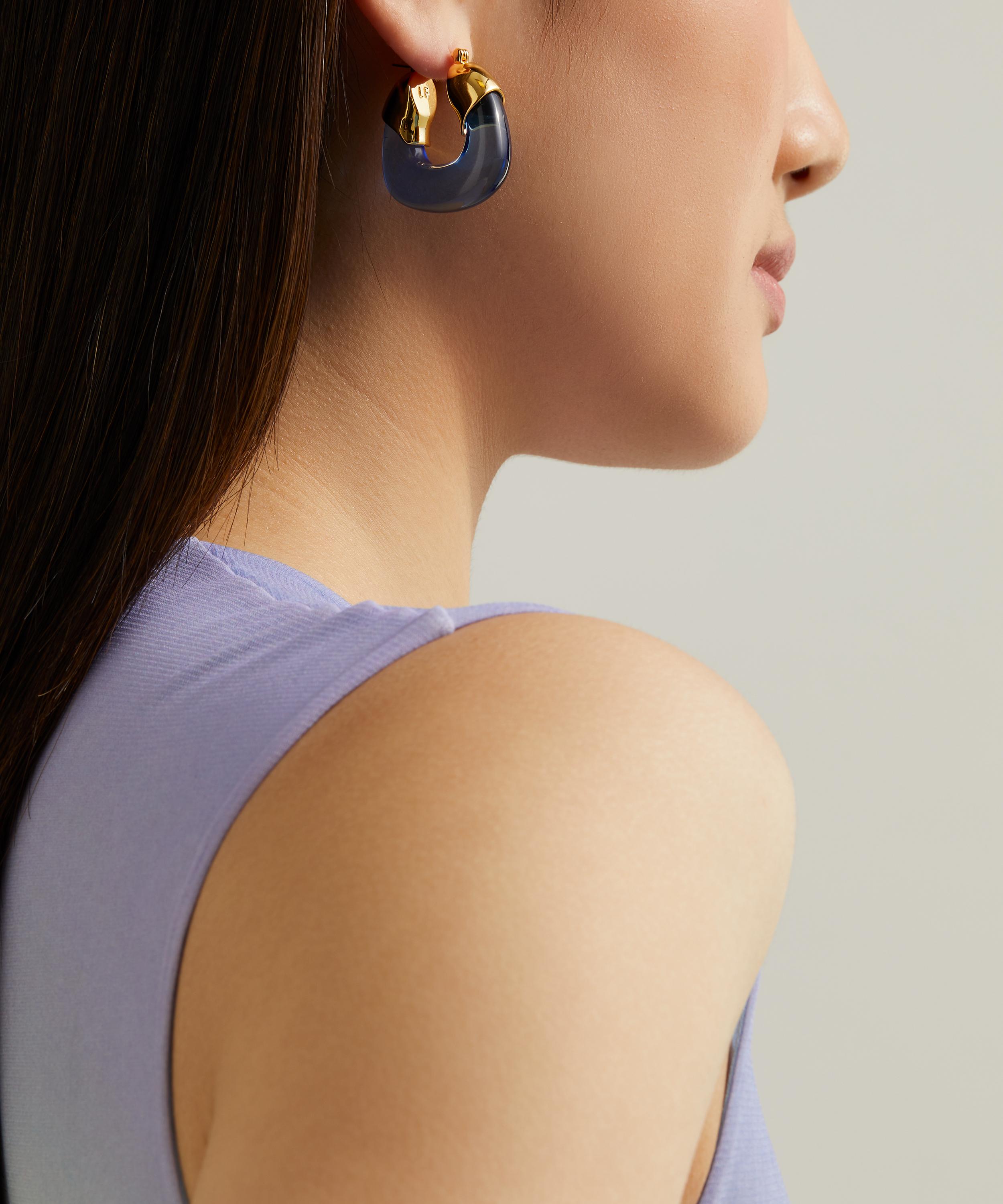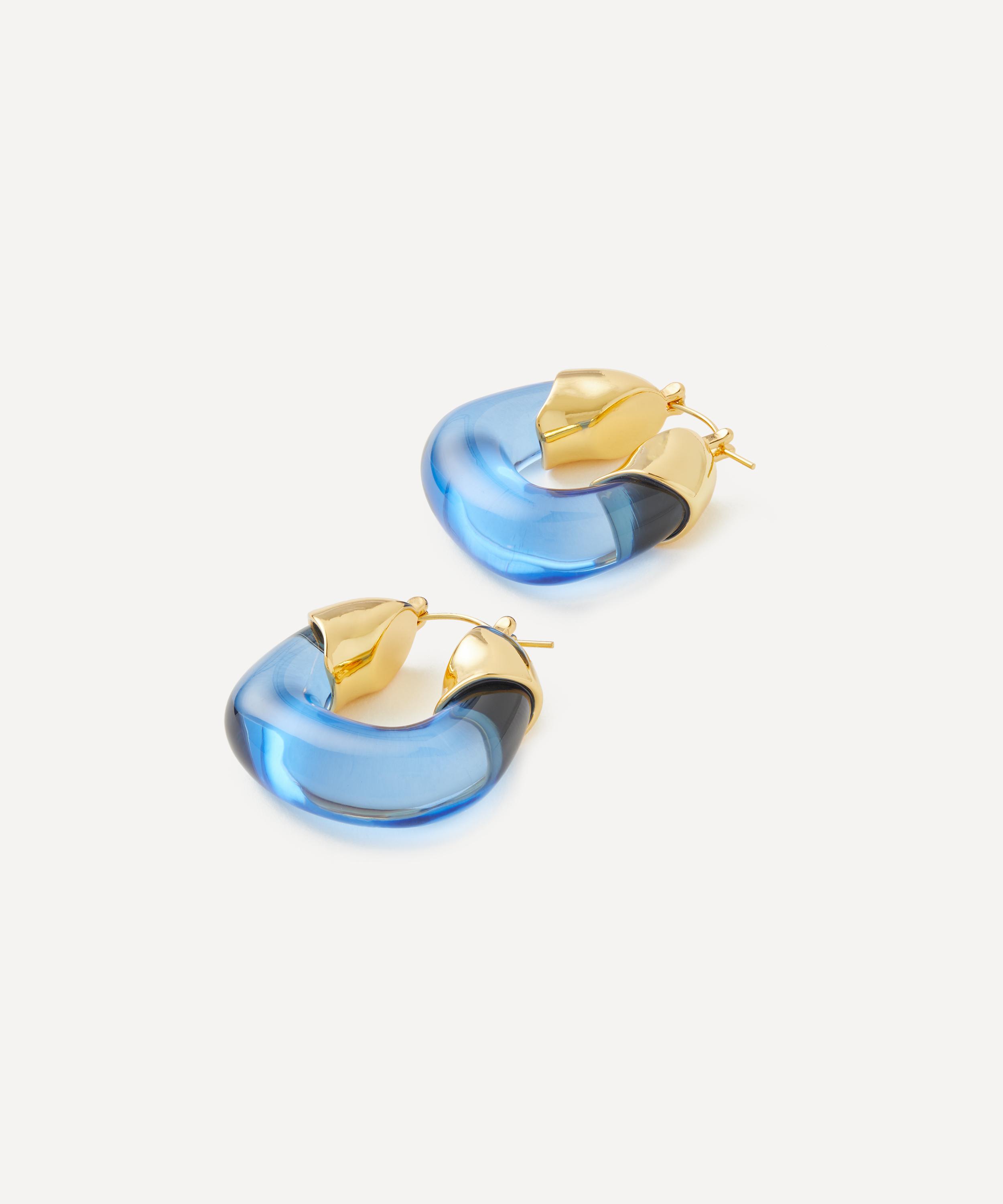 The Organic hoop earrings are part of Lizzie Fortunato`s artisanal jewellery collection – a triumph of innovative and vibrant designs that tell a story. Handcrafted from gold-plated brass, each earring features a sculpted blue resin hoop for a pop of colour, perfect for special occasions, or to add some dramatic flair to your everyday ensemble.