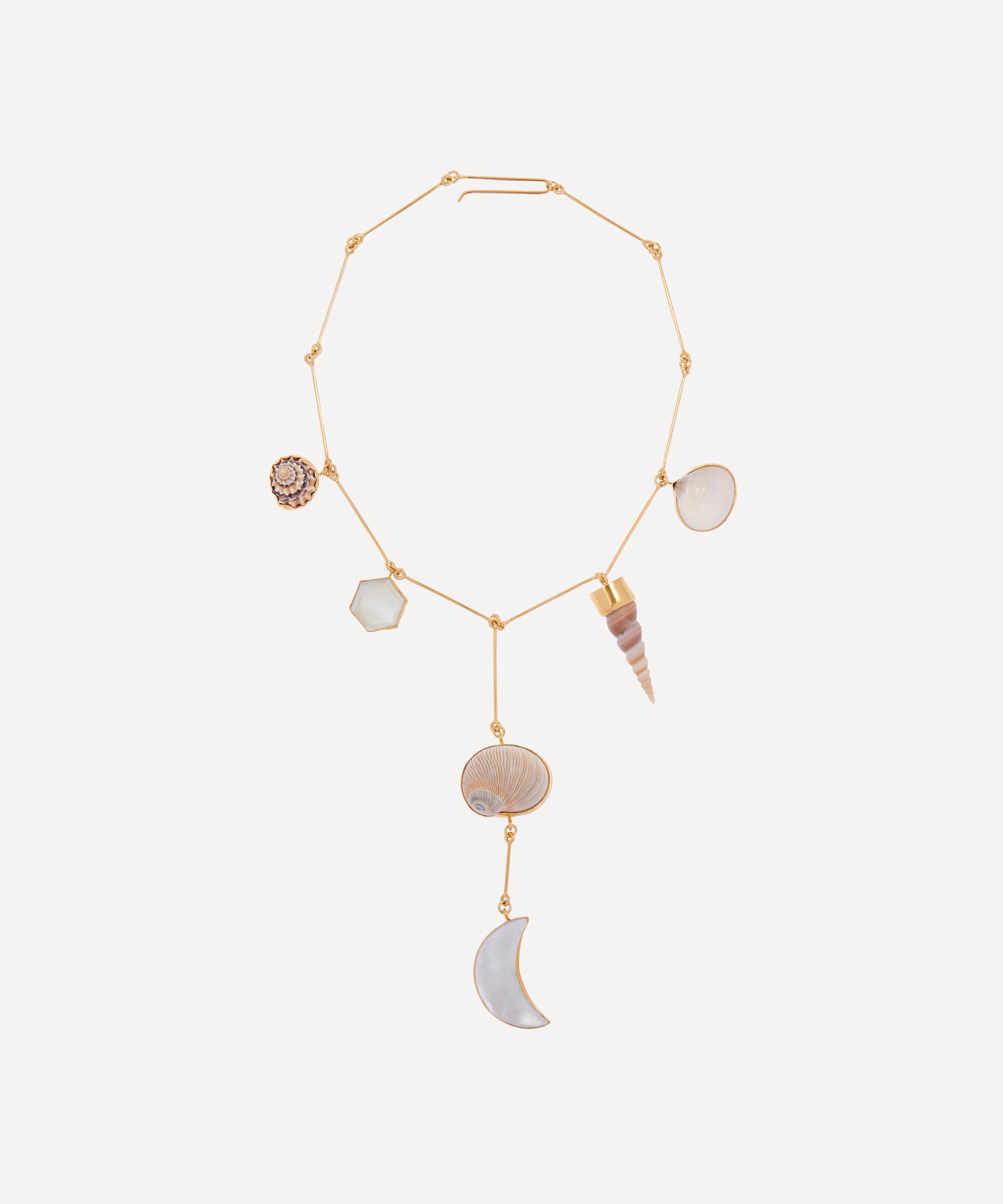 This gold-plated drop necklace from Grainne Morton is studded with six shimmering pearl and shell charms.