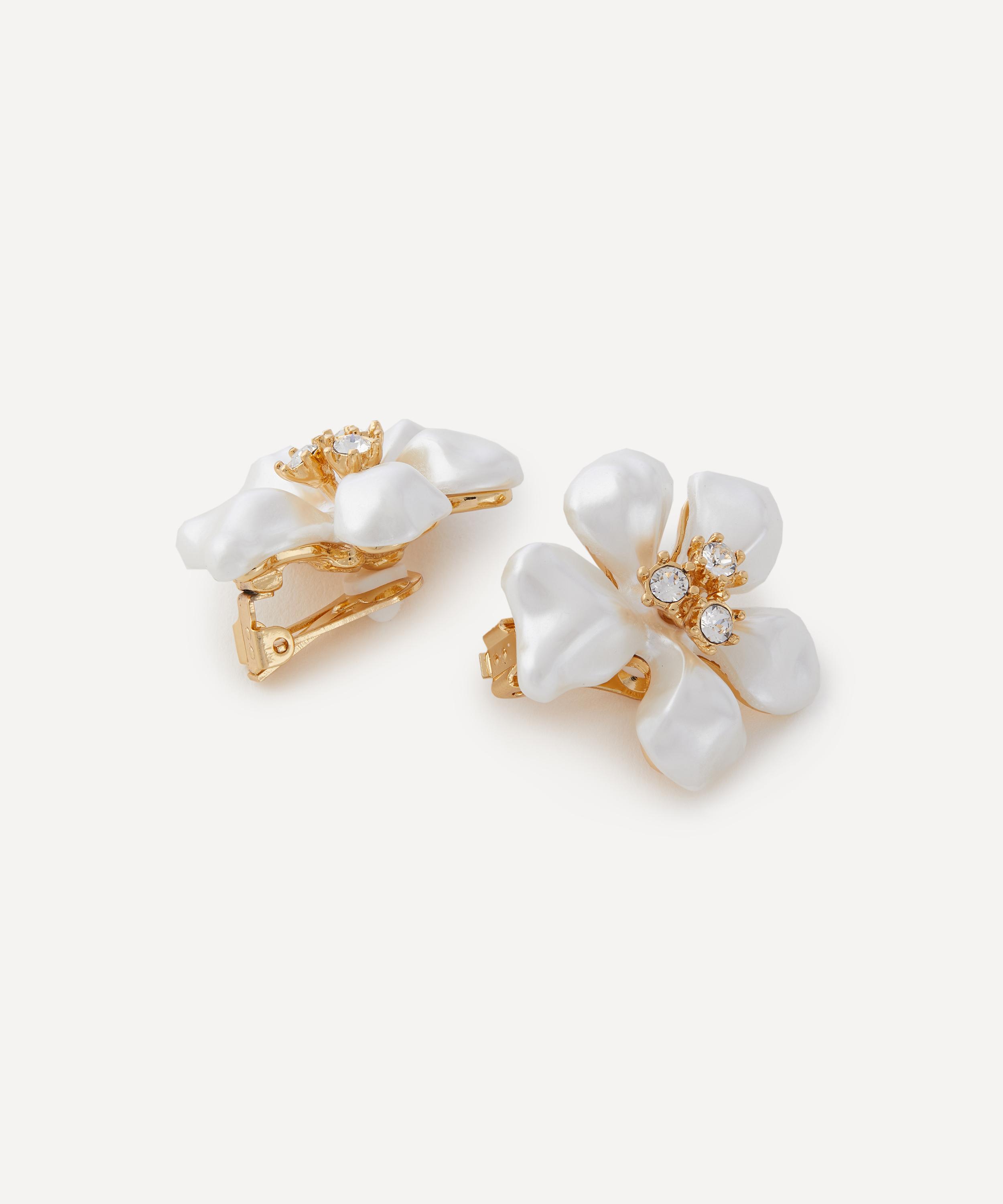 Add a whimsical touch to your look with these white pearl flower clip-on earrings from the renowned fashion jeweller Kenneth Jay Lane.