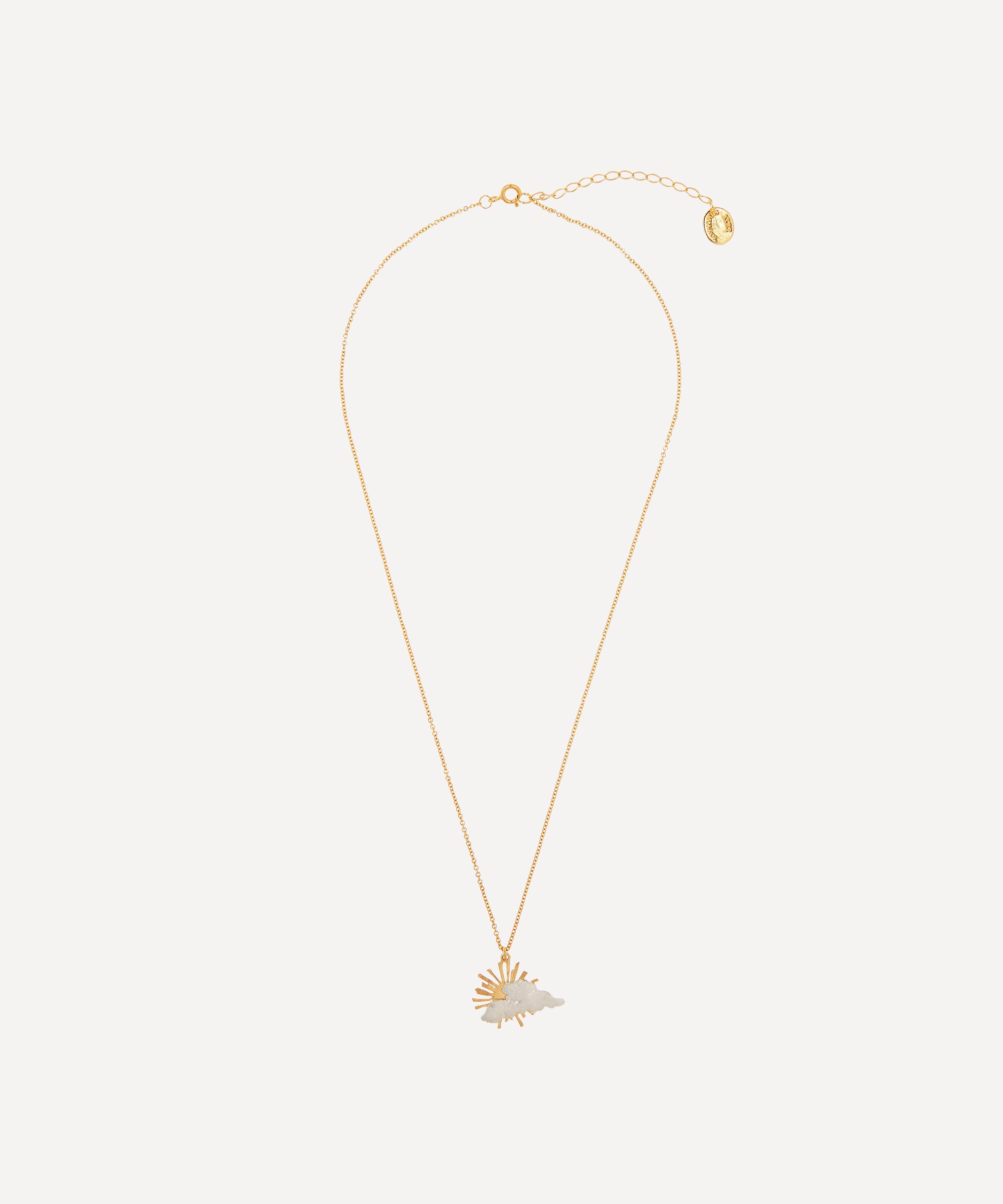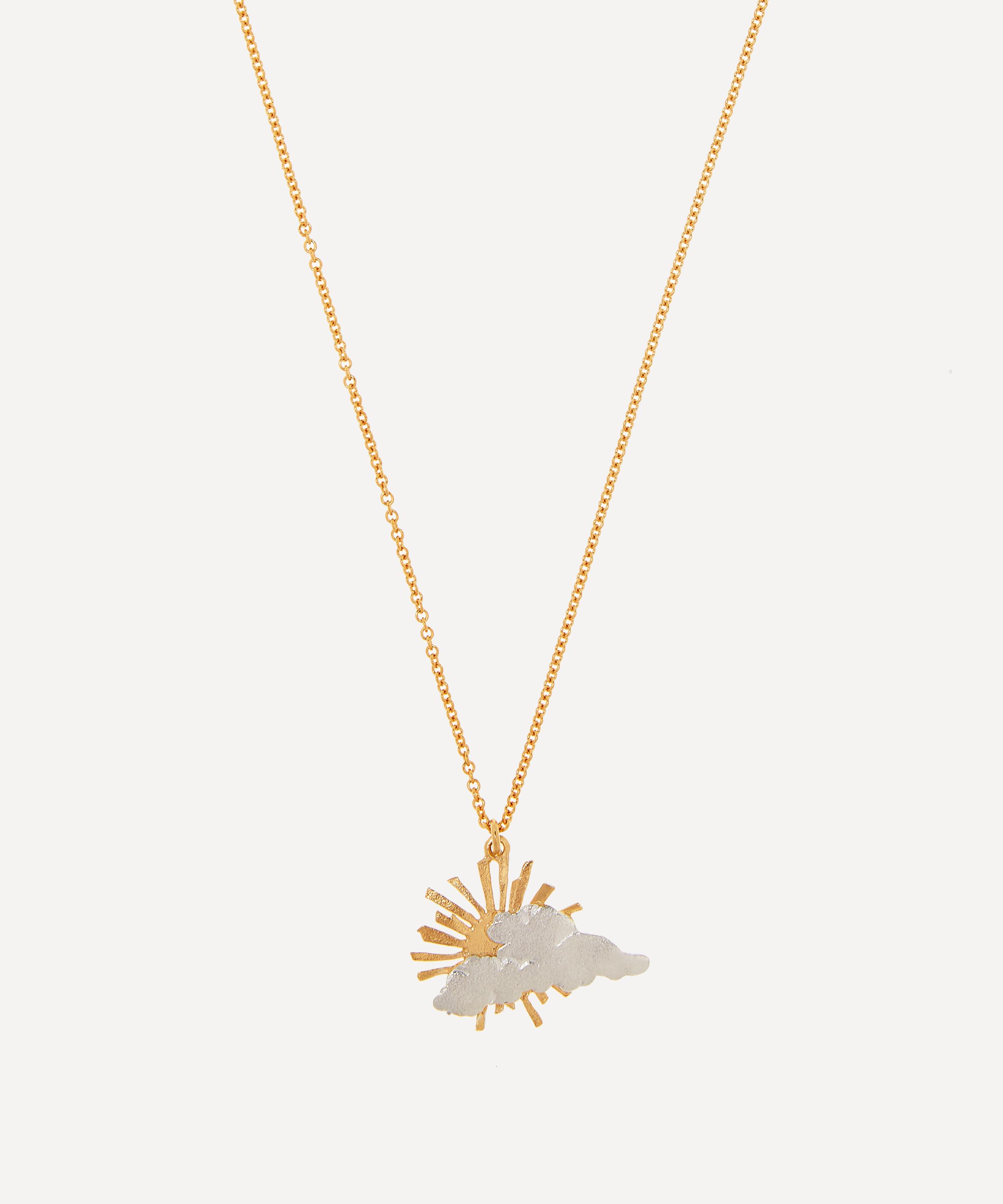 Handcrafted from 22 carat gold-plated sterling silver, this delicate chain necklace showcases a small golden sun pendant, its rays bursting out from behind a polished silver cloud as a symbol of hope and resilience. Style it alongside other enchanting pieces from the collection as an uplifting reminder that every day is a fresh start and the sun will always come out from behind the clouds.