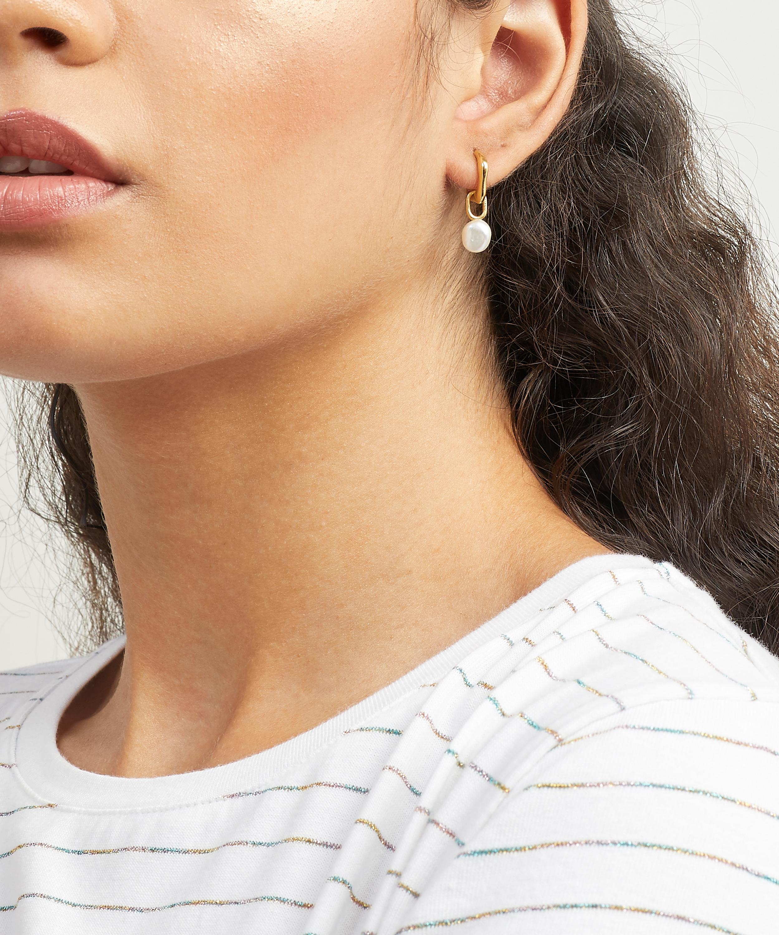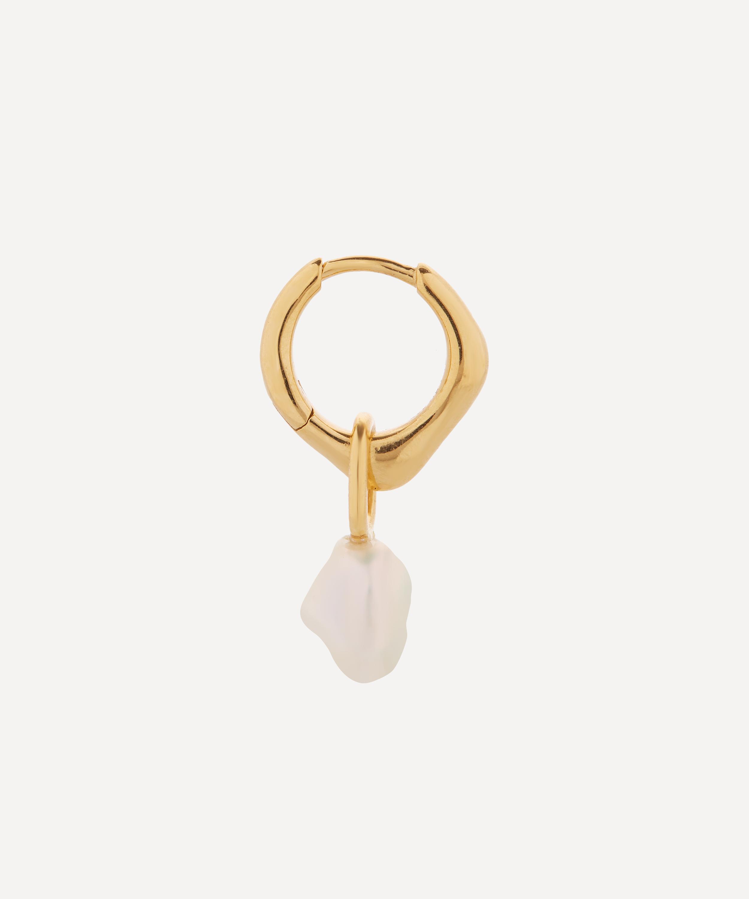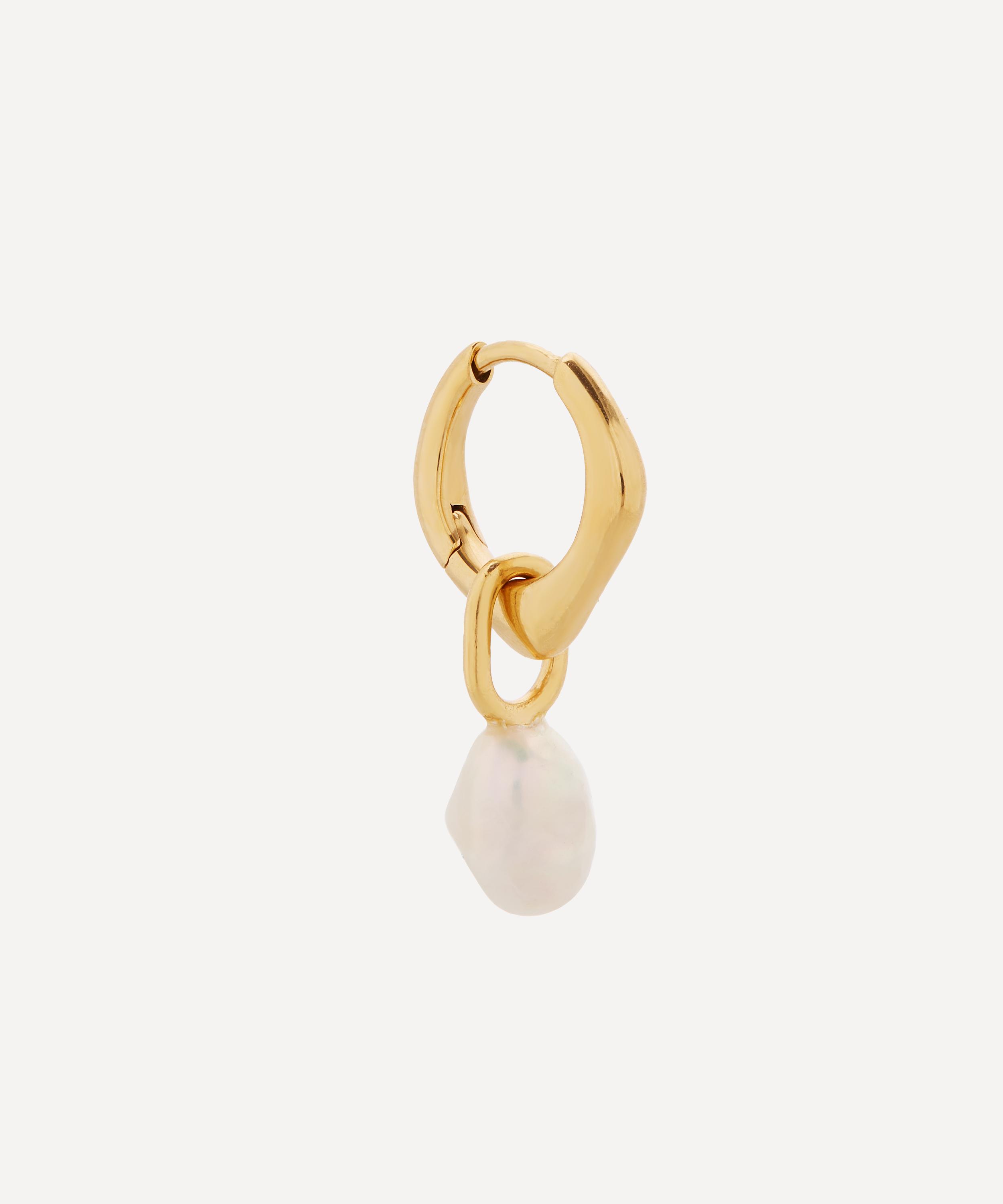Designed to be mixed and matched with other delicately embellished pieces from the collection, this small hoop earring is crafted from gold-plated sterling silver with a high-polished finish and a detachable baroque pearl charm. Stack it with several other plain metal hoops or one of the brand's contrasting gemstone styles to add a dynamic touch to your everyday ear curation.