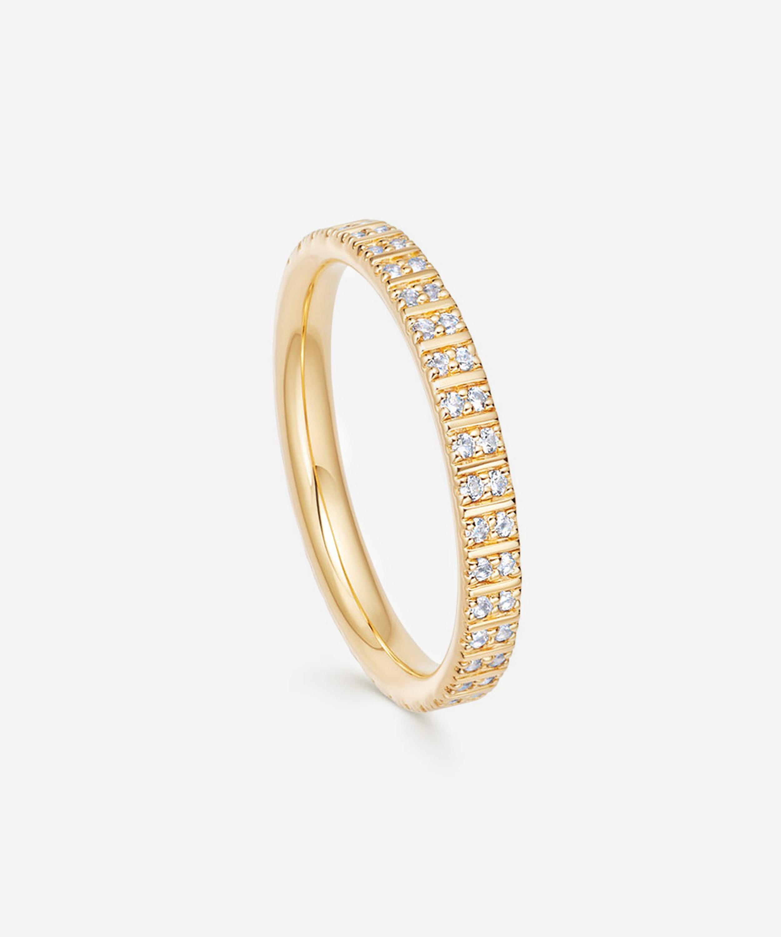 Crafted from sterling silver plated in 18 carat gold vermeil, this white sapphire double eternity ring is part of Astley Clarke's Celestial collection, evoking the idea of plotting a course through the stars.