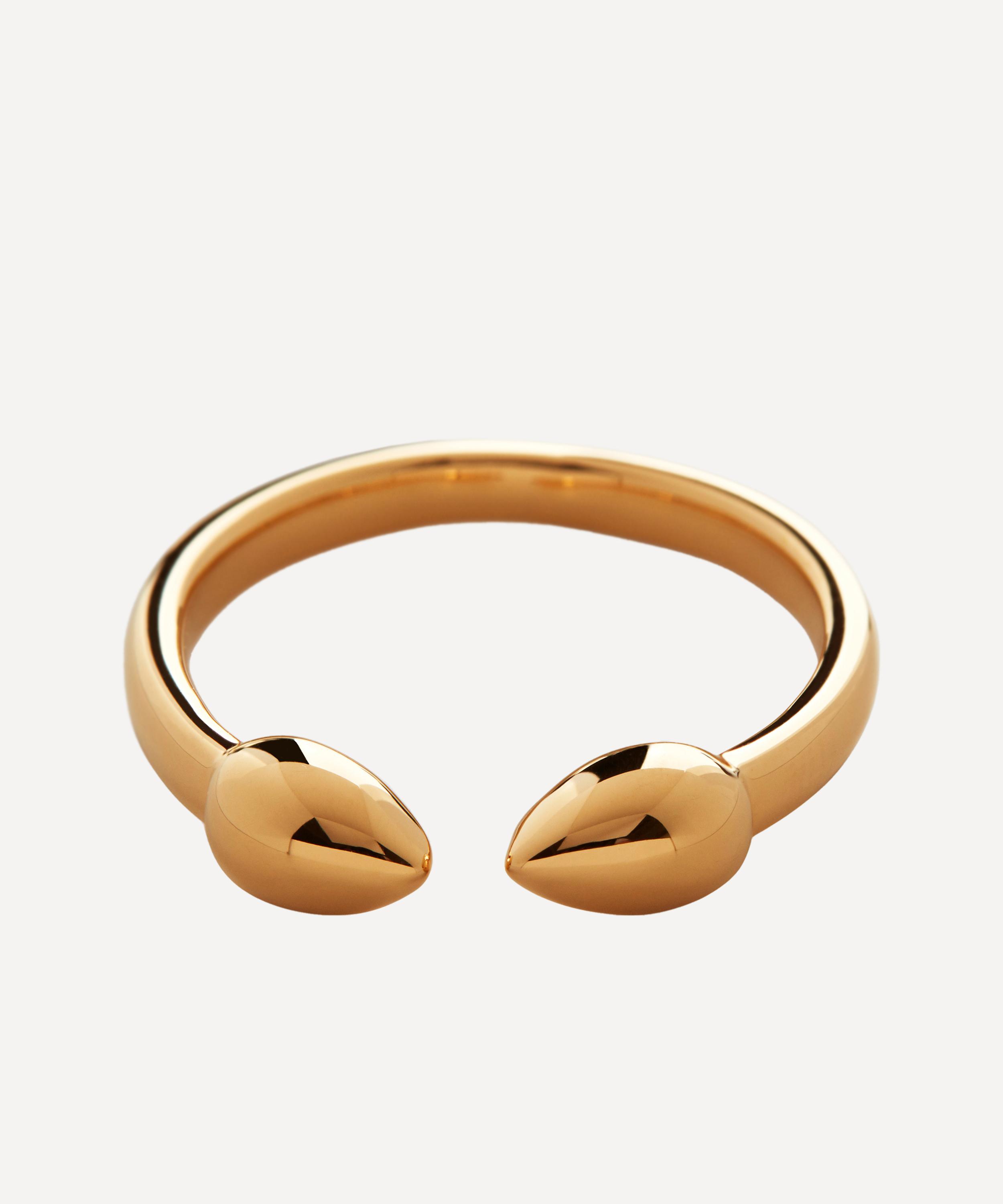This simple ring takes on a symmetrical form, with open ends inspired by elegant flower buds and a polished gold plated vermeil silver finish. Style it alone or stack it against additional gemstone rings of your own or from the Fiji collection.