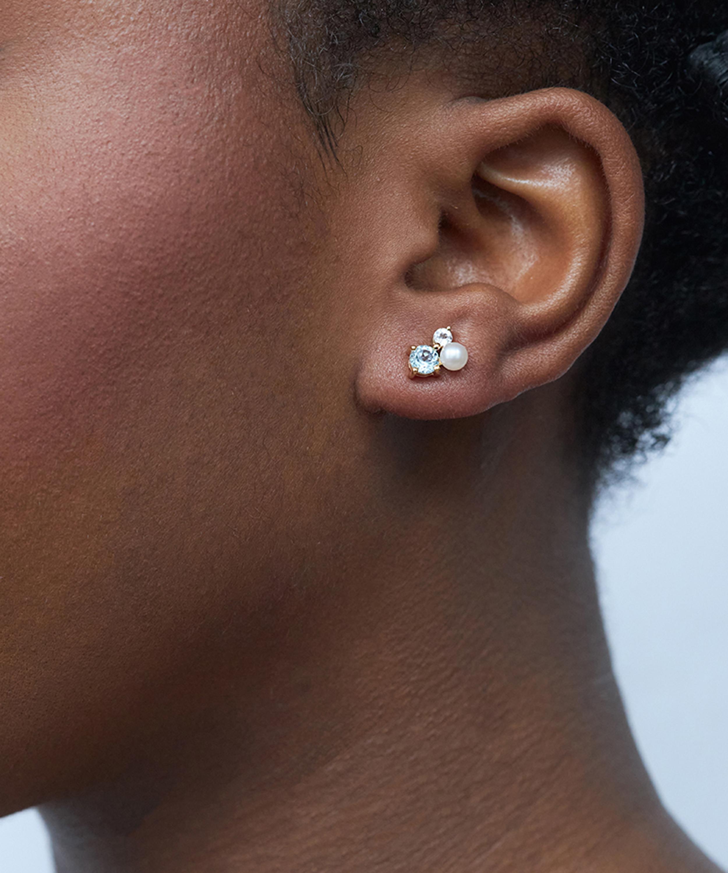 Exemplifying the designer's passion for understated coloured gems, Dinny Hall's Gem Drop collection is home to a host of sparkling, richly hued pieces, designed to be worn every day. Each of these glittering stud earrings features a single creamy white pearl and two round cut blue and white topaz stones set into polished 22 carat gold plated vermeil silver prong settings. Mix and match with other coloured jewels from the collection for a whimsical everyday curation.