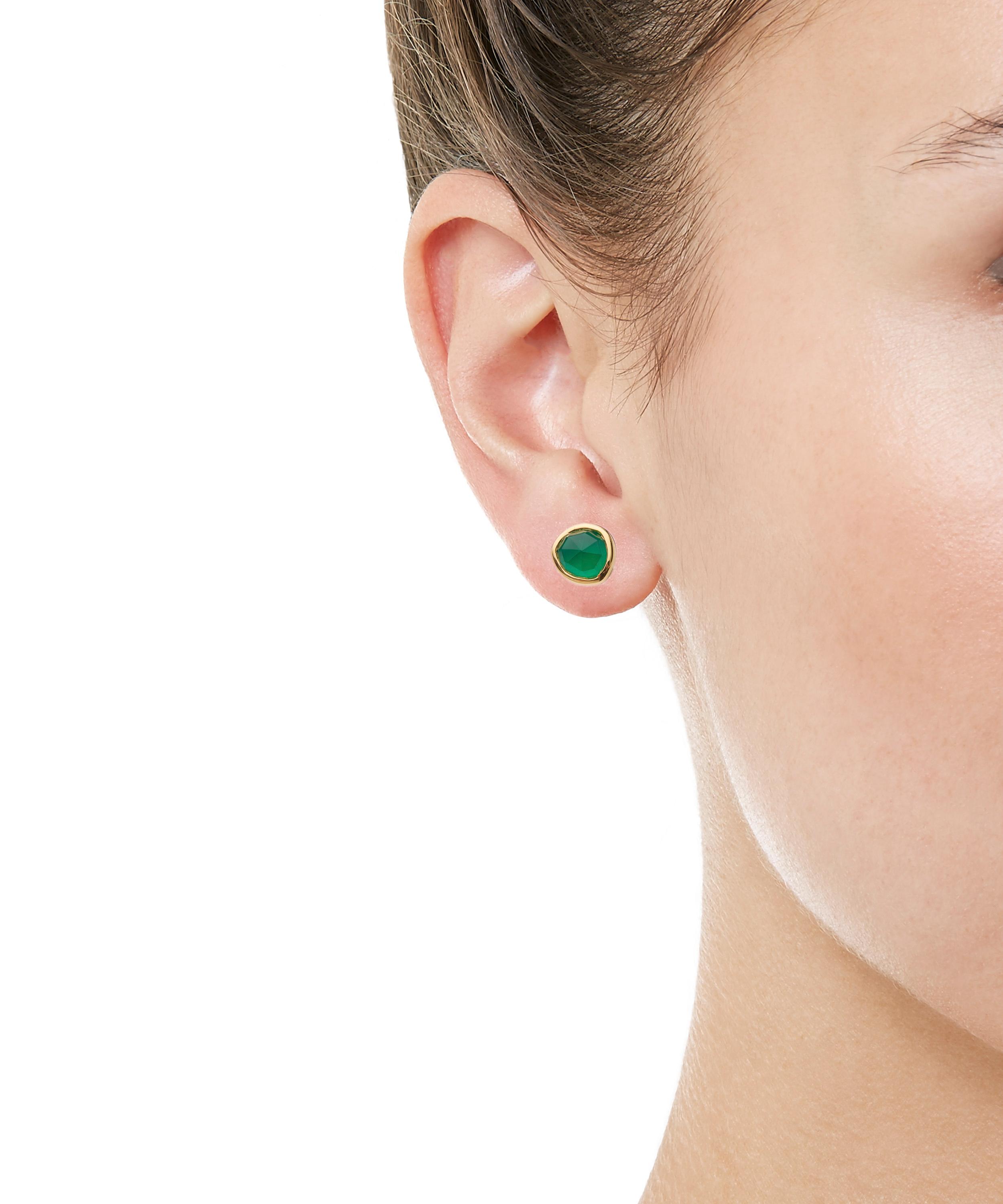 Gold Plated Vermeil Silver Green Onyx Siren Stud Earrings