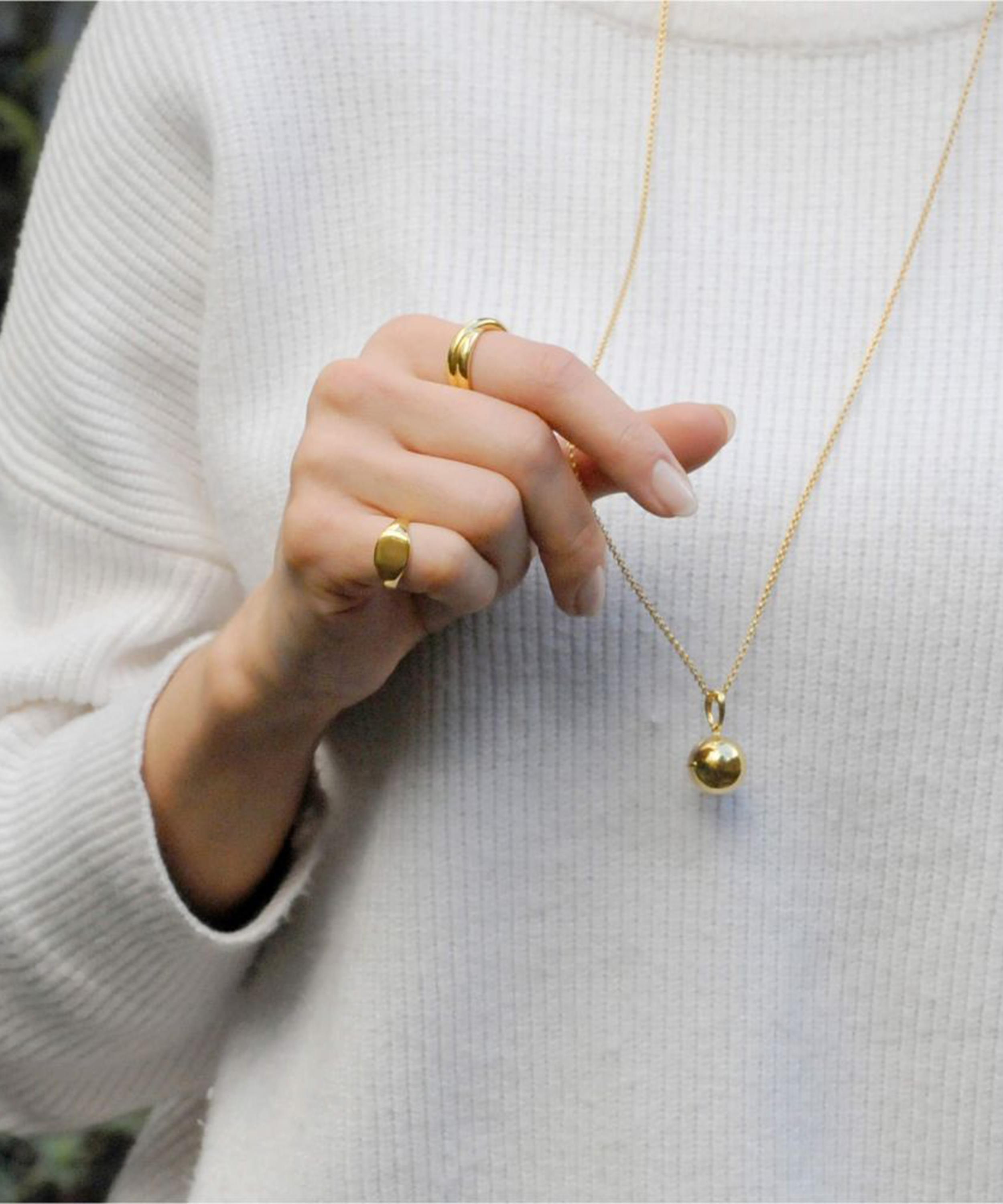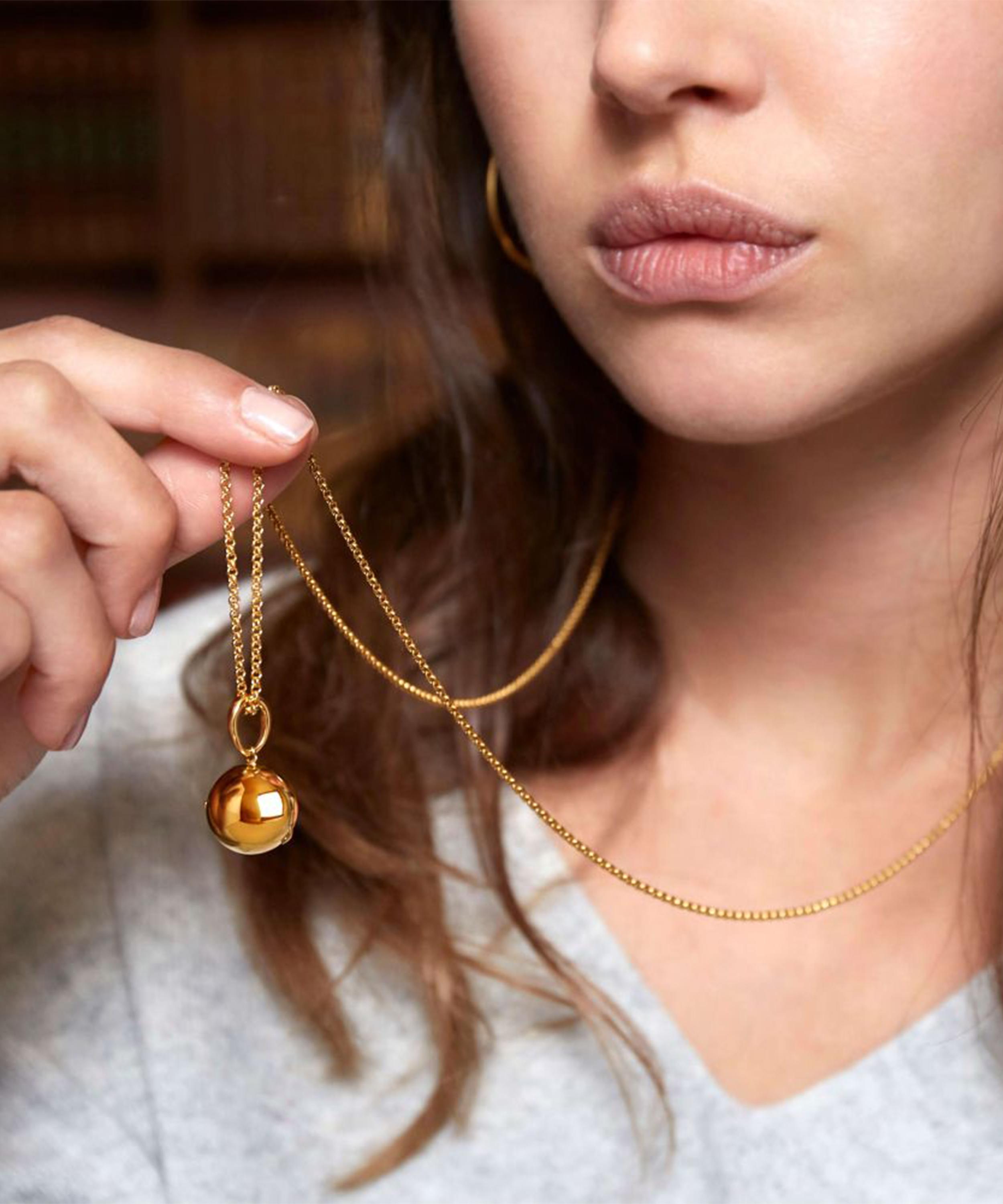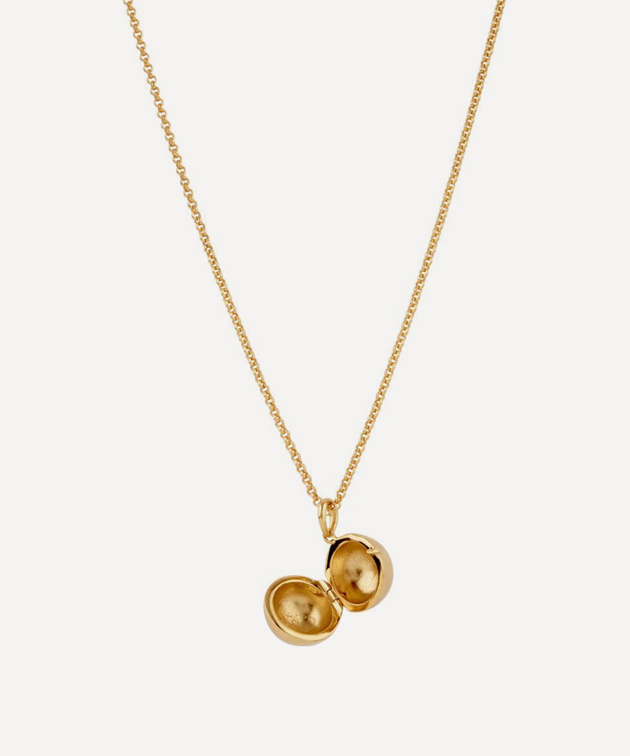 Crafted from sterling silver plated in 22 carat gold vermeil, this large orb locket necklace is the central motif of Dinny Hall's My World collection.