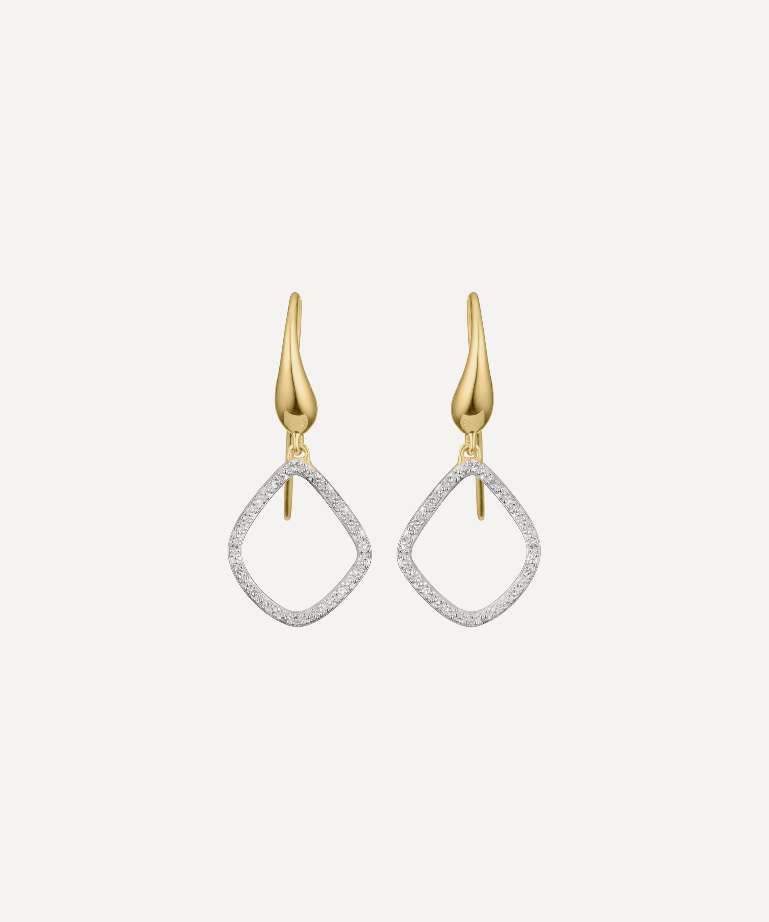 Inspired by waves and curves found in architectural structures in the Italian Riviera, these delicate Riva Kite drop earrings by Monica Vinader are crafted from polished gold plated vermeil silver and studded with tiny white diamonds.