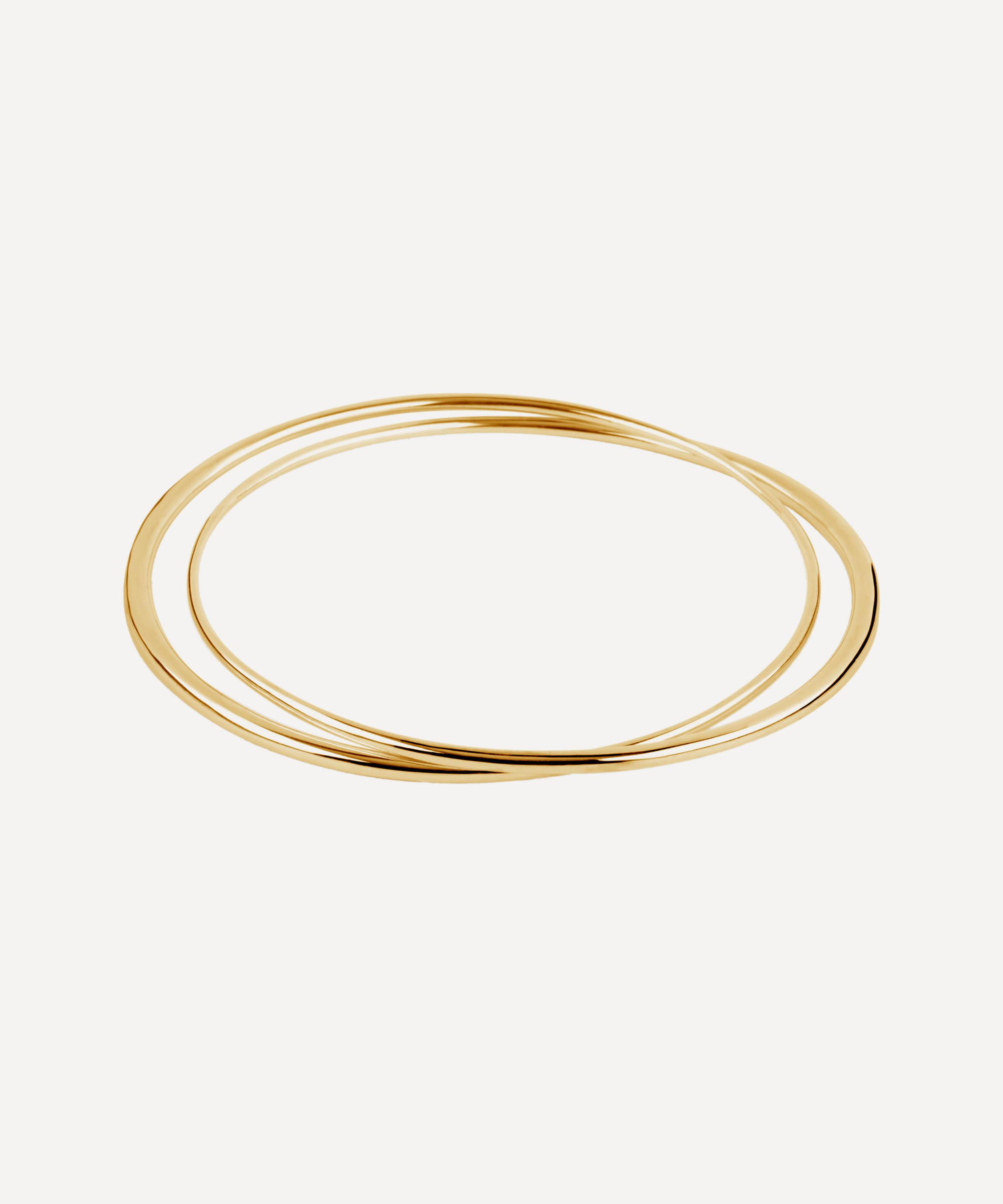Capturing the true essence of Dinny Hall's design philosophy, this double bangle is formed of two interlinked tapering bands, designed with simplicity and timelessness at the forefront. Guaranteed to slot seamlessly into your existing jewellery collection, style it alone or stack it with an array of contrasting chains, bangles and cuffs for a sleek, contemporary finish.