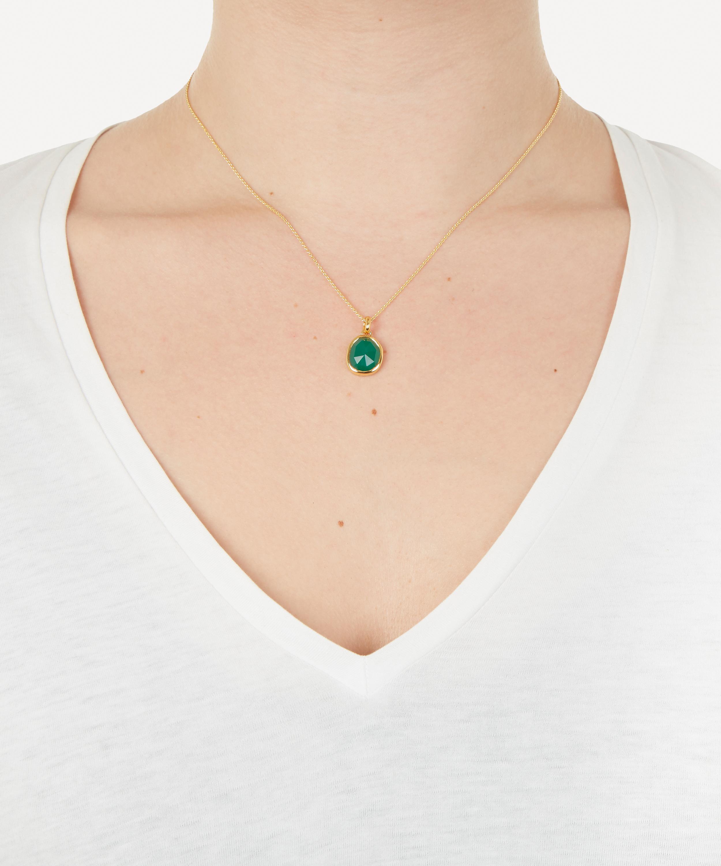 This gold plated vermeil silver and green onyx bezel pendant is another striking piece from Monica Vinader's Siren collection, inspired by sea-worn treasures and the glamour of Southern Italy.