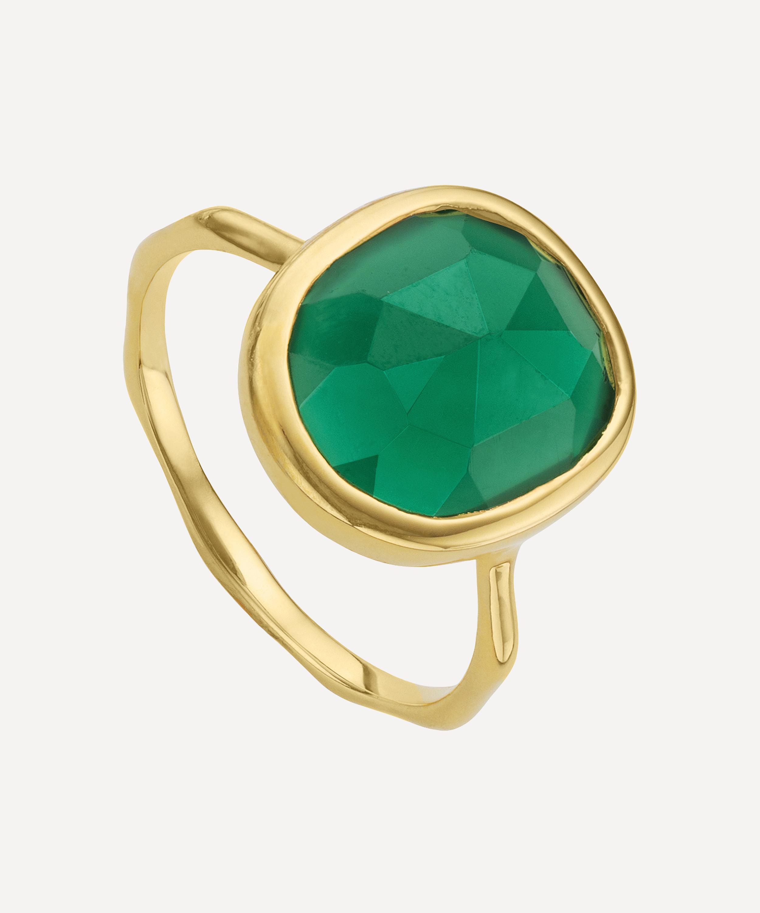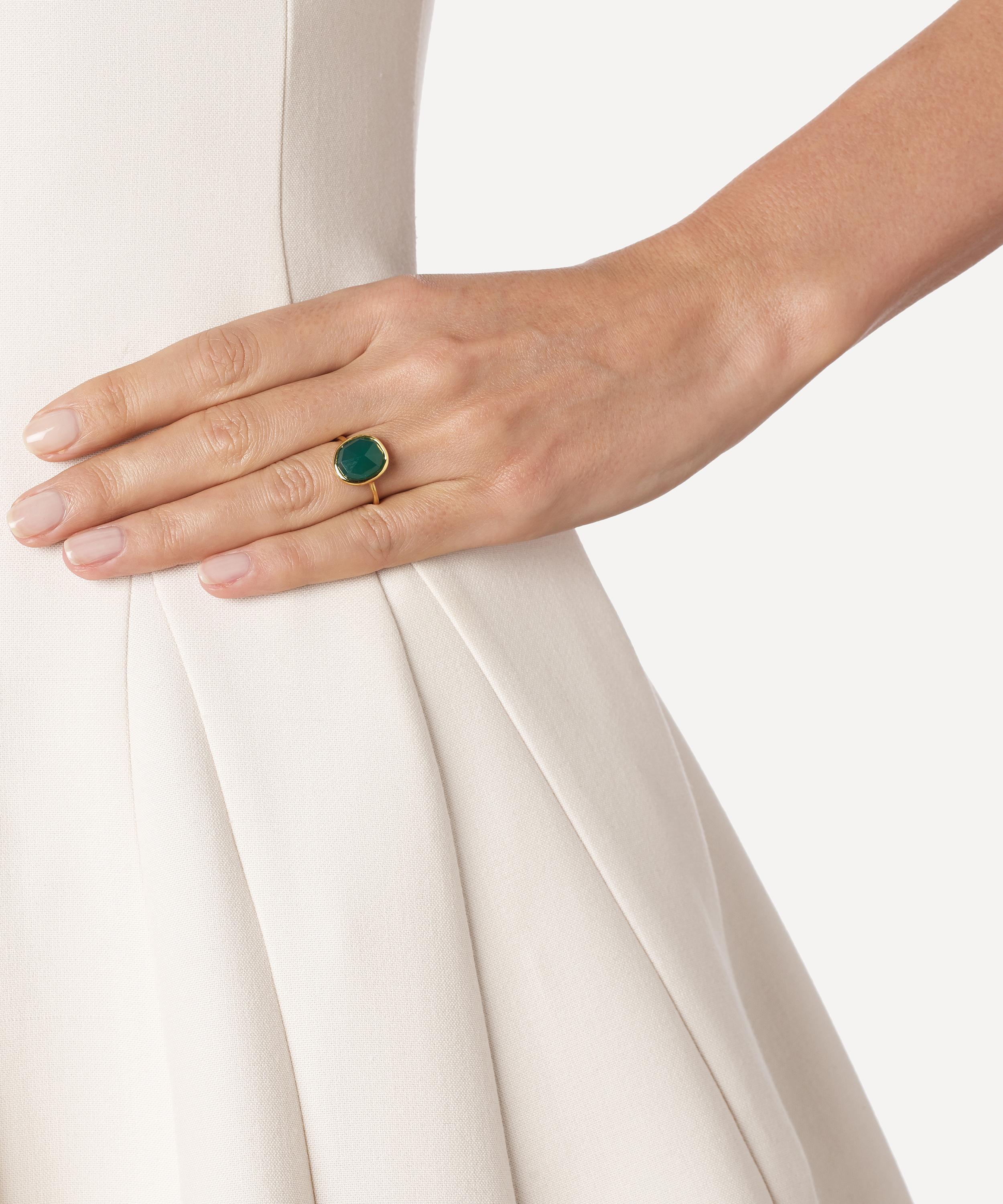 Crafted from recycled sterling silver plated in 18 carat gold vermeil, this medium green onyx stacking ring is part of Monica Vinader's Siren collection, inspired by sea-worn treasures and the glamour of Southern Italy.