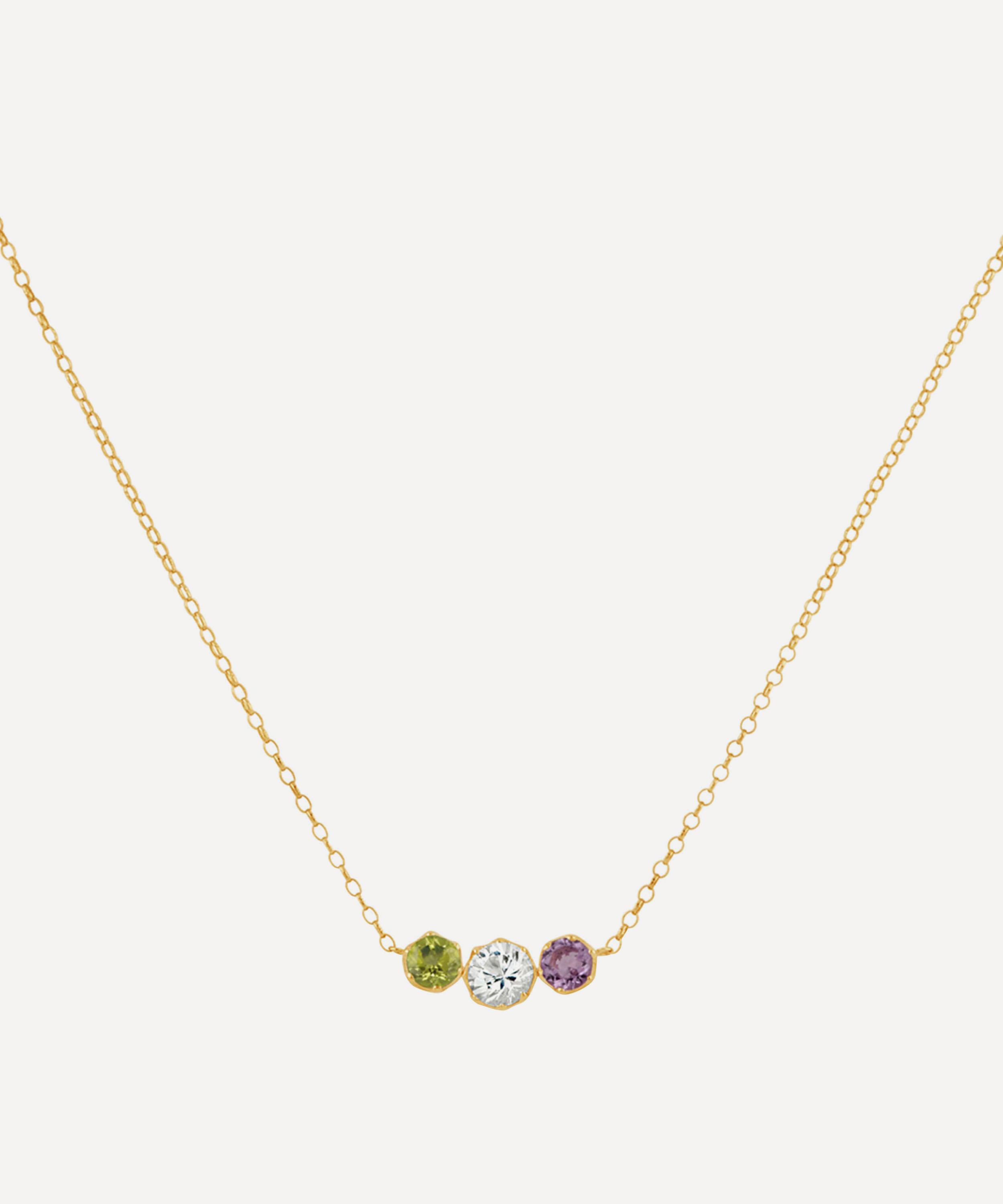 Crafted from sterling silver plated in 22 carat gold vermeil, this triple gemstone scoop pendant necklace is from Dinny Hall's Suffragette collection, designed to celebrate and honour the fight for women’s suffrage.