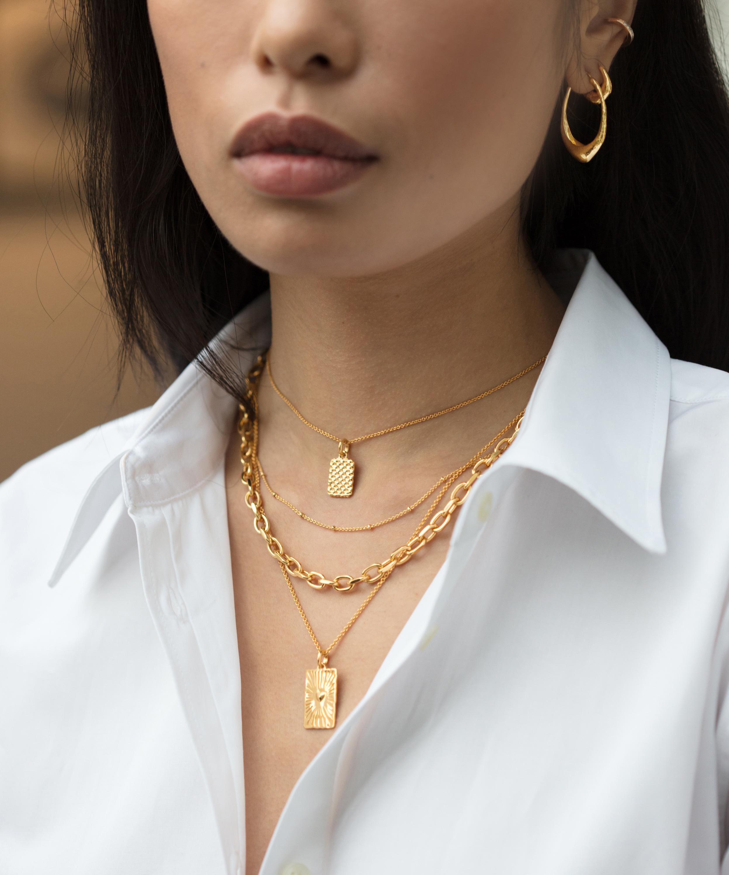 Perfect for gifting, this rectangular pendant features an engraved starburst design radiating out from a raised heart motif at the centre, while the back is left plain for you to add your own name, date or personalised message. Designed to elevate your existing jewellery collection, try threading it onto a fine chain necklace for a talismanic addition to your everyday jewellery line-up.
