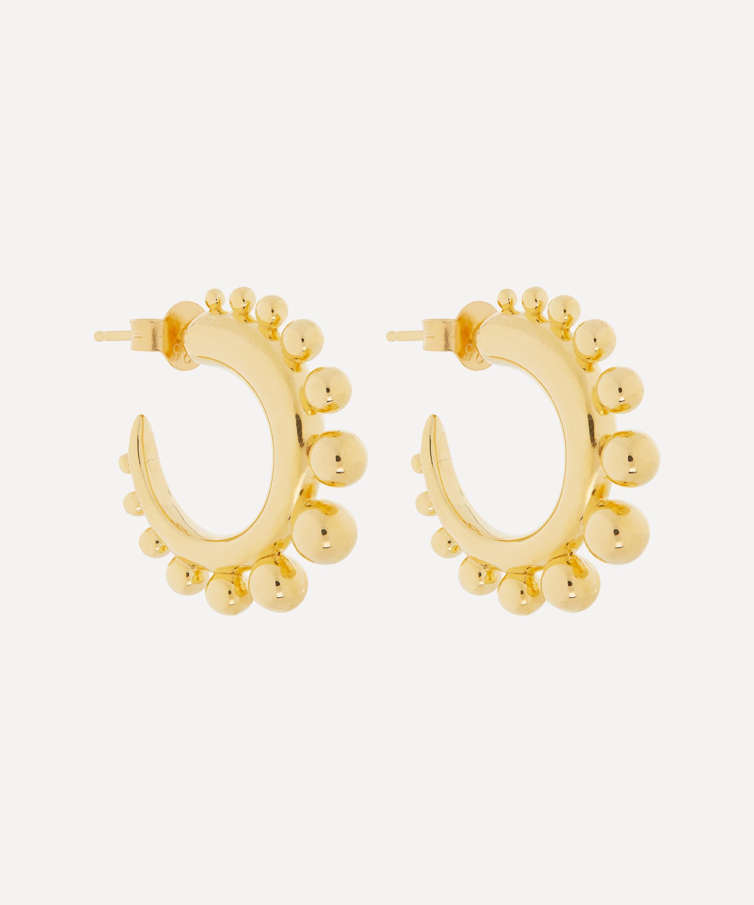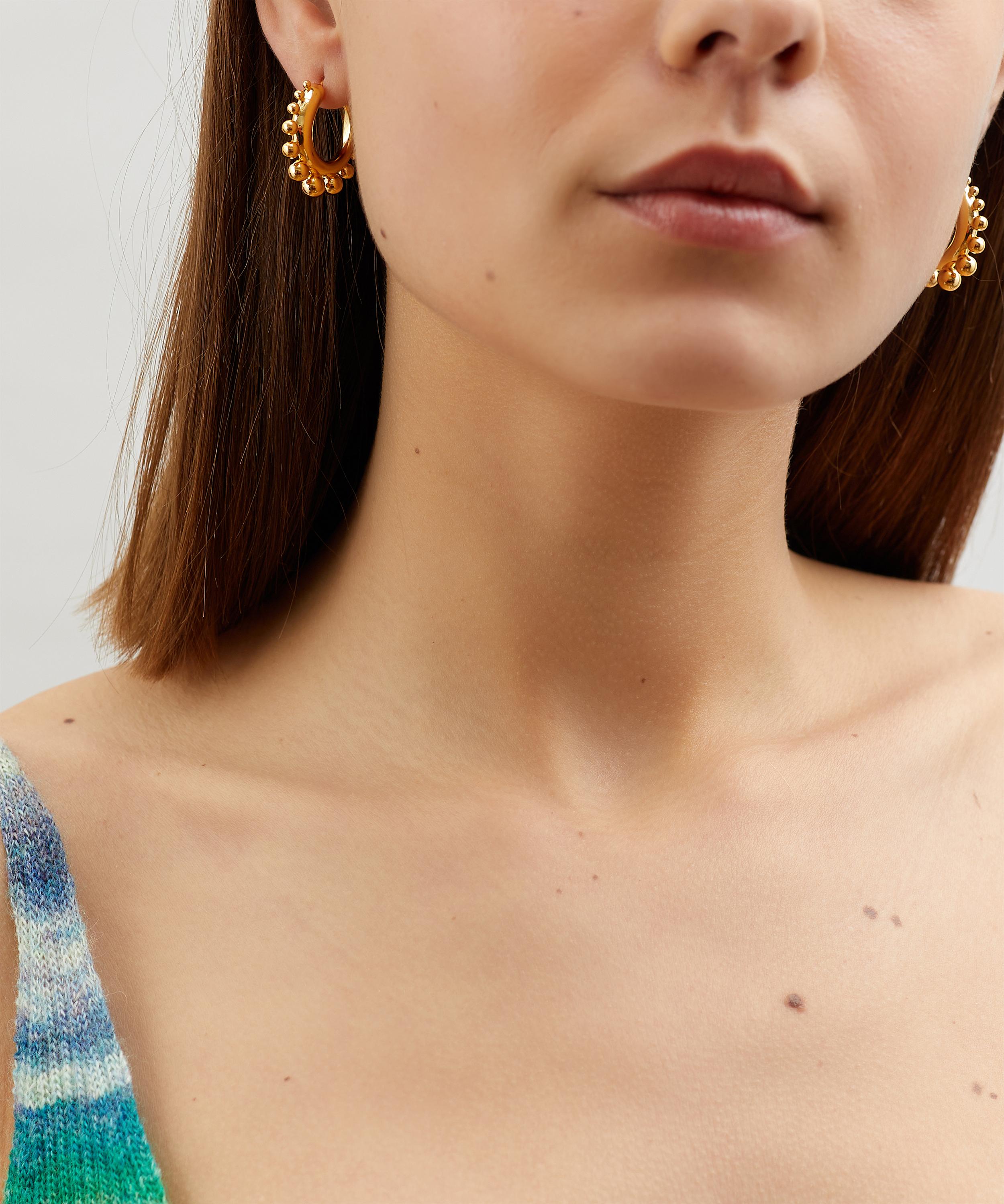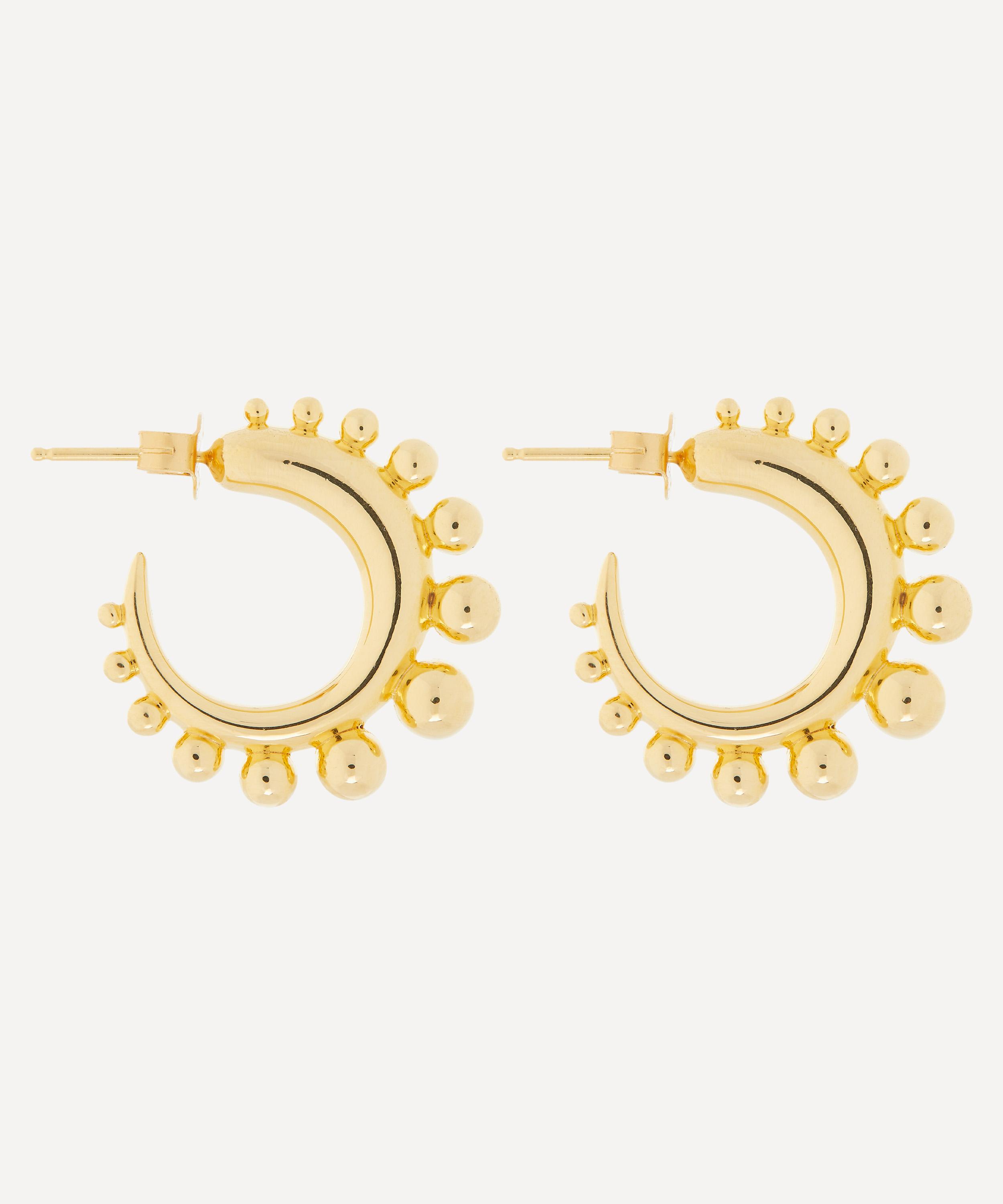 Crafted from sterling silver plated in 18 carat gold vermeil, the tiny Khartoum hoop earrings are a signature pair from KHIRY - the Afrofuturist brand that channels the beauty, art, heritage and culture of the African diaspora into modern jewellery designs.