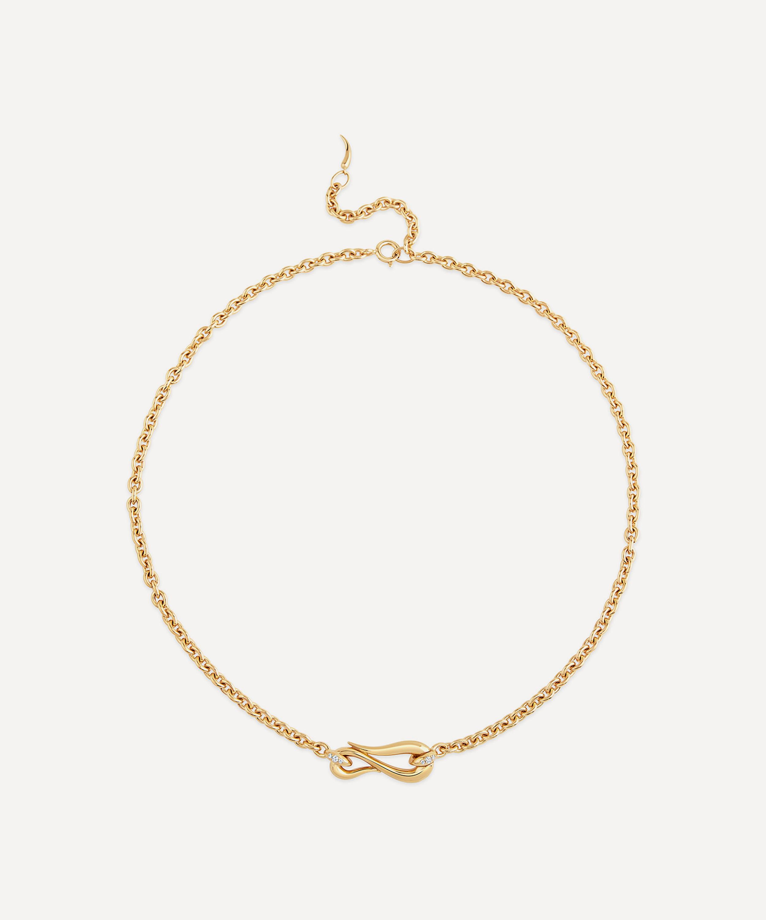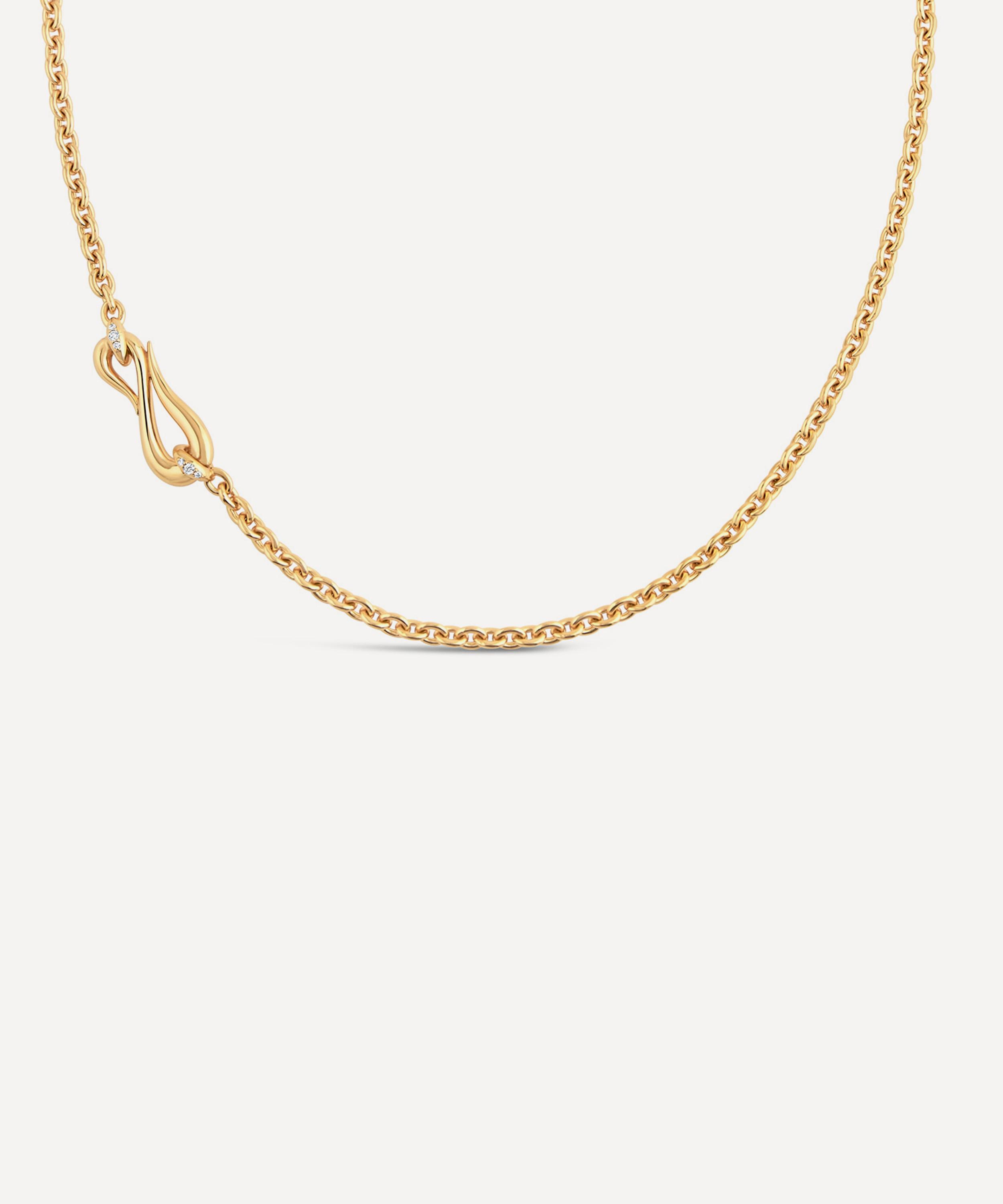 Empower your self-expression and unique style with Dinny Hall’s emblematic Toro Lasso diamond necklace. Crafted from sterling silver plated in gold vermeil, this exceptional piece of jewellery features a timeless cable chain adorned with a lasso-inspired charm held in place by two diamond set links. A symbol of grace and movement, it’s perfect for gifting. Style it on its own, pair with matching pieces from the collection, or layer with another gold necklace, chains and talismans to add depth and dimension to your look.