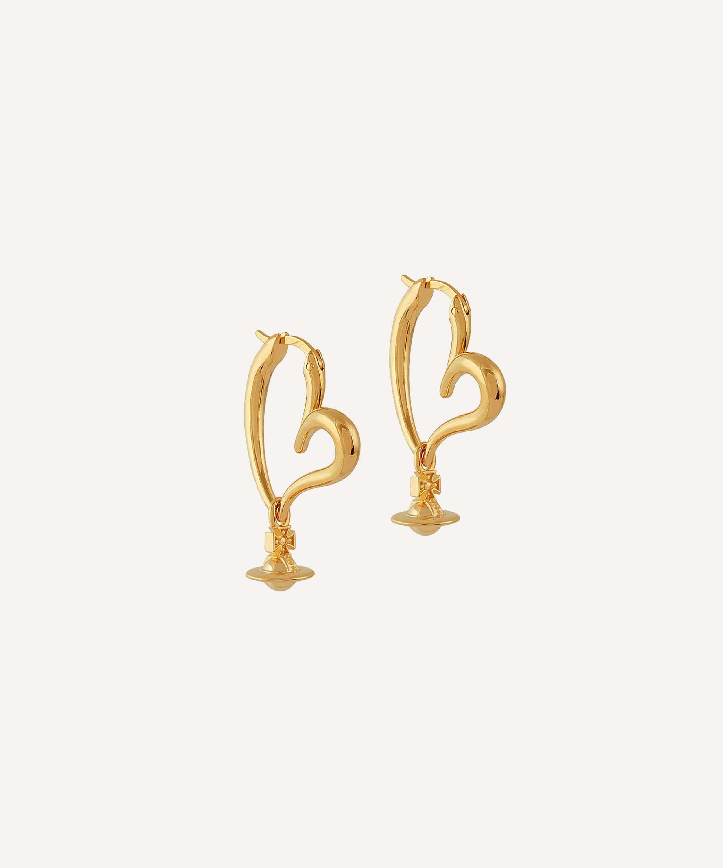 Channelling the brand’s rebellious spirit and individuality, each hoop is crafted from gold-tone brass, featuring a heart-shaped silhouette adorned with the house’s iconic cross-topped orb and saturn ring drop. Wear these statement-making earrings on their own, incorporate them into a stack, or pair with matching pieces from the brand for a co-ordinating look.