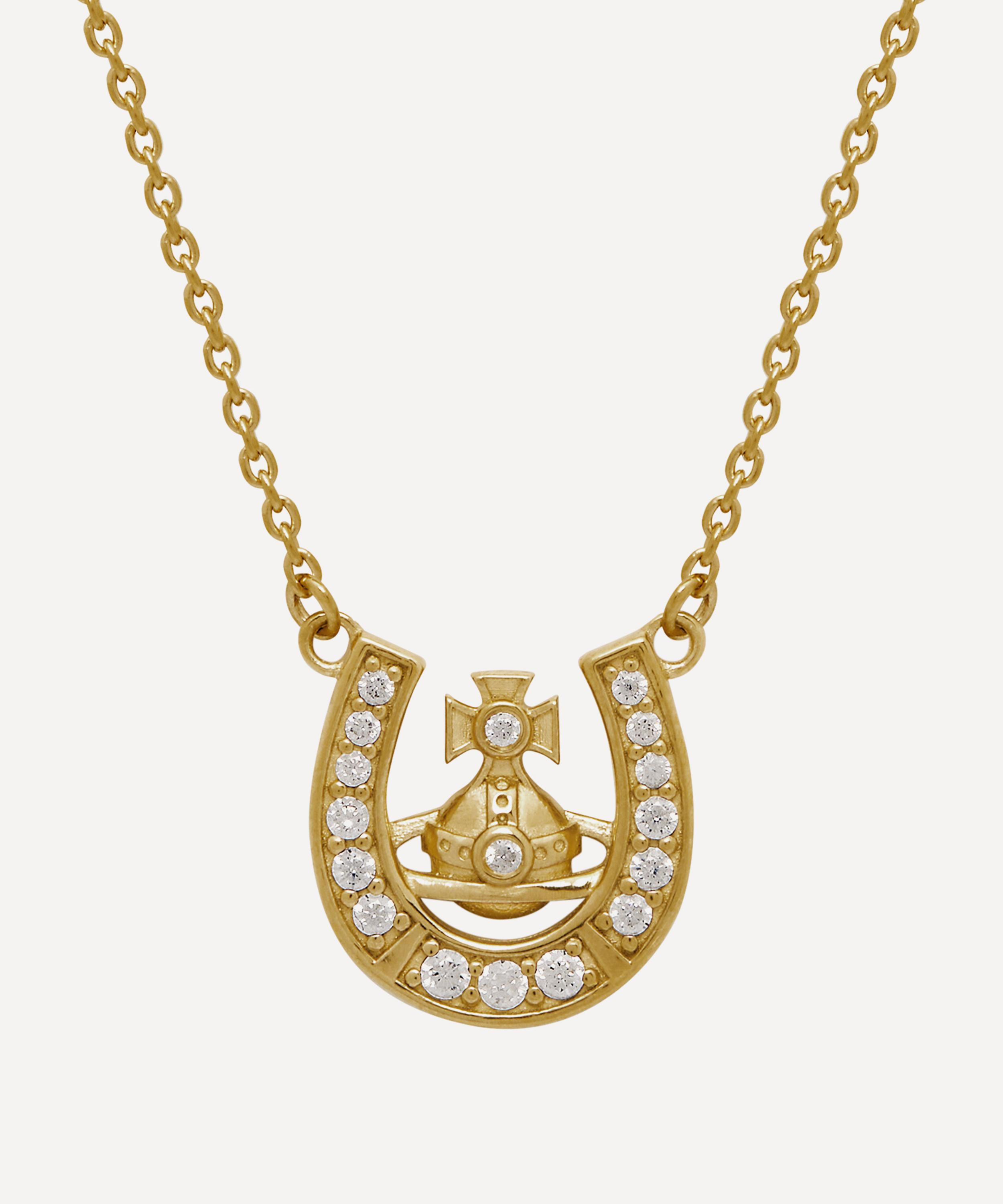 Channelling the brand’s rebellious spirit and individuality, it’s crafted from gold-tone silver, featuring a fine trace chain adorned with a horseshoe pendant and the house’s iconic cross-topped orb and Saturn ring, set with cubic zirconia. Wear this statement-making necklace on its own, incorporate it into a stack, or pair with matching pieces from the brand for a co-ordinating look.