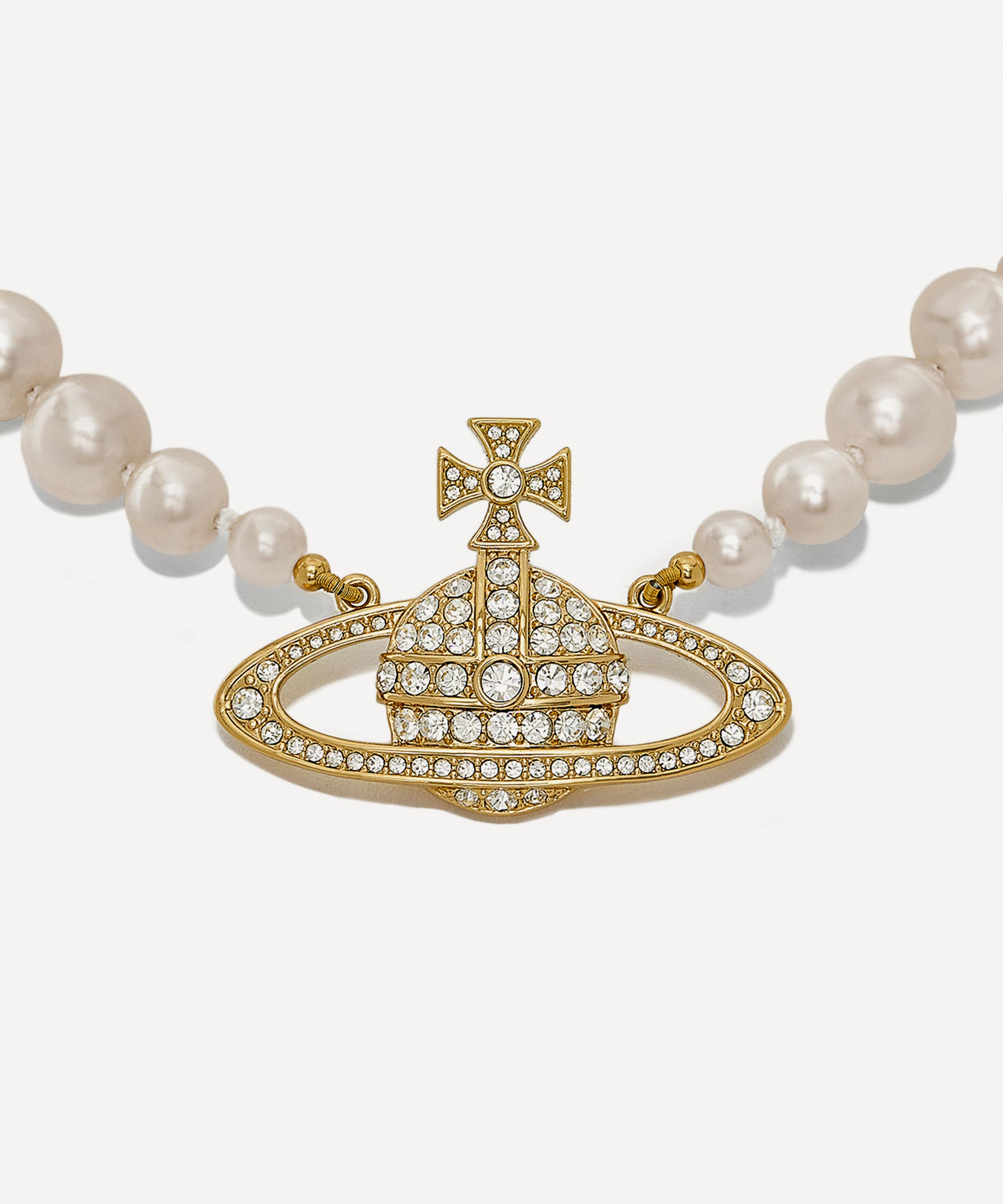 Break with convention and infuse your style with the bold, edgy elements of Vivienne Westwood’s One Row Pearl Bas Relief necklace - a juxtaposition of punk and femininity.