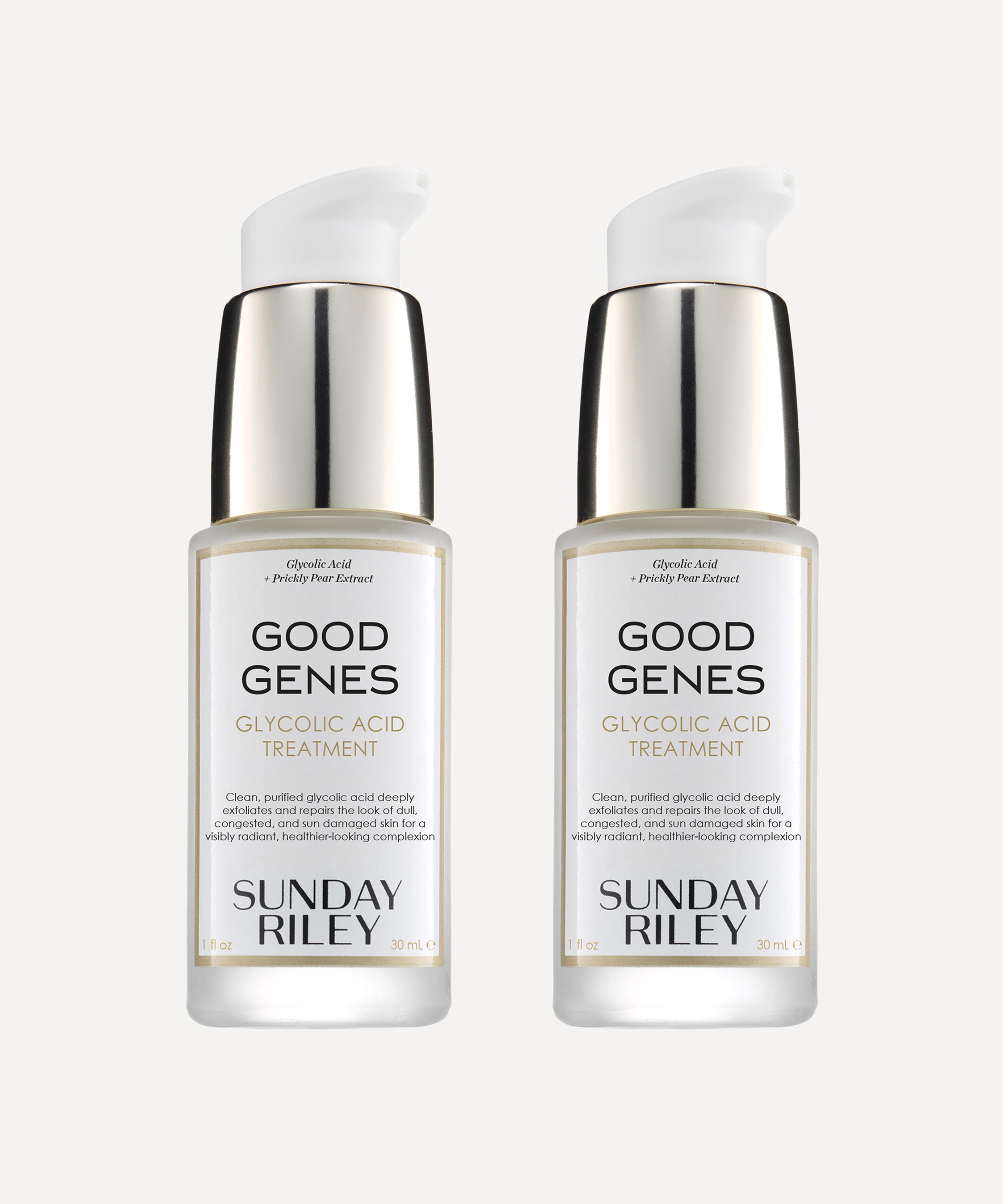 Top-up your supply of the cult-favourite Good Genes glycolic acid serum with this duo set from Sunday Riley - award-winning thanks to its unrivalled ability deeply exfoliate and repair, revealing a radiant and healthy-looking complexion. This once-a-day serum penetrates the surface of the skin with tiny glycolic acid molecules, sinking deeper than other forms of AHA for a thorough break-down of pore-clogging dirt and debris.