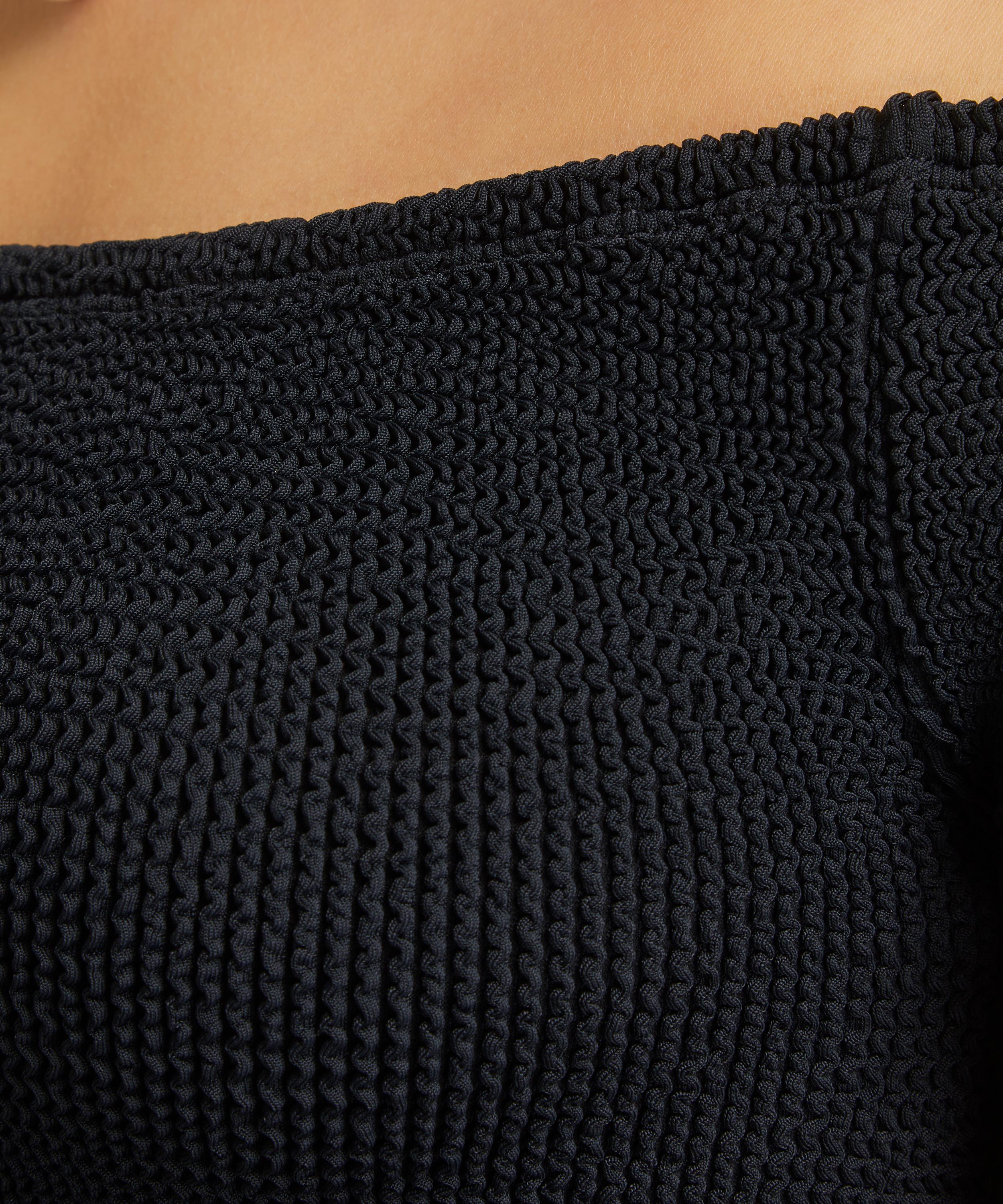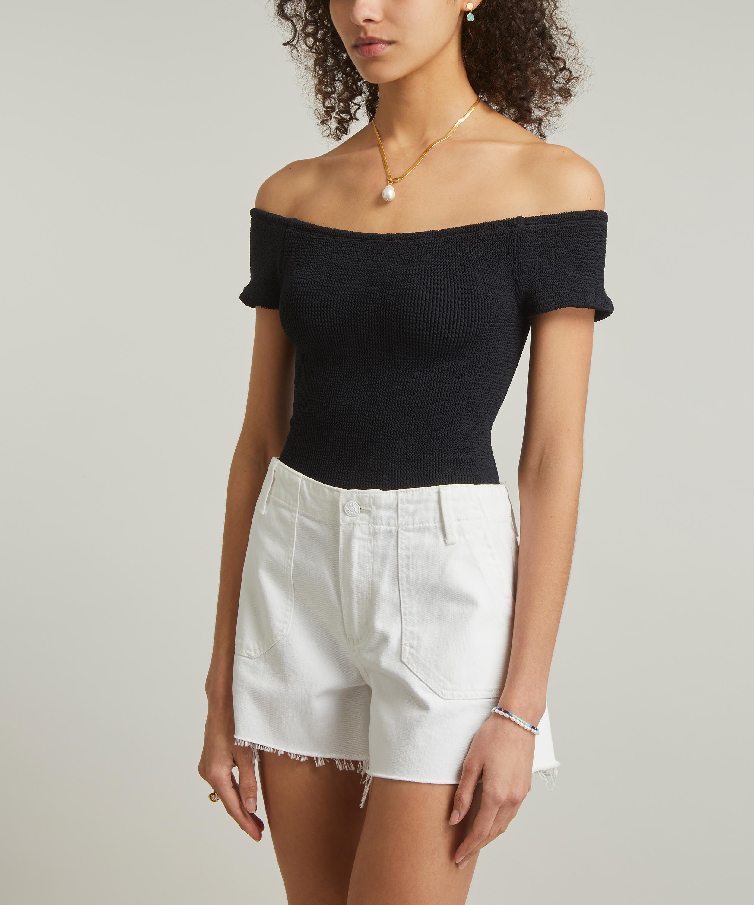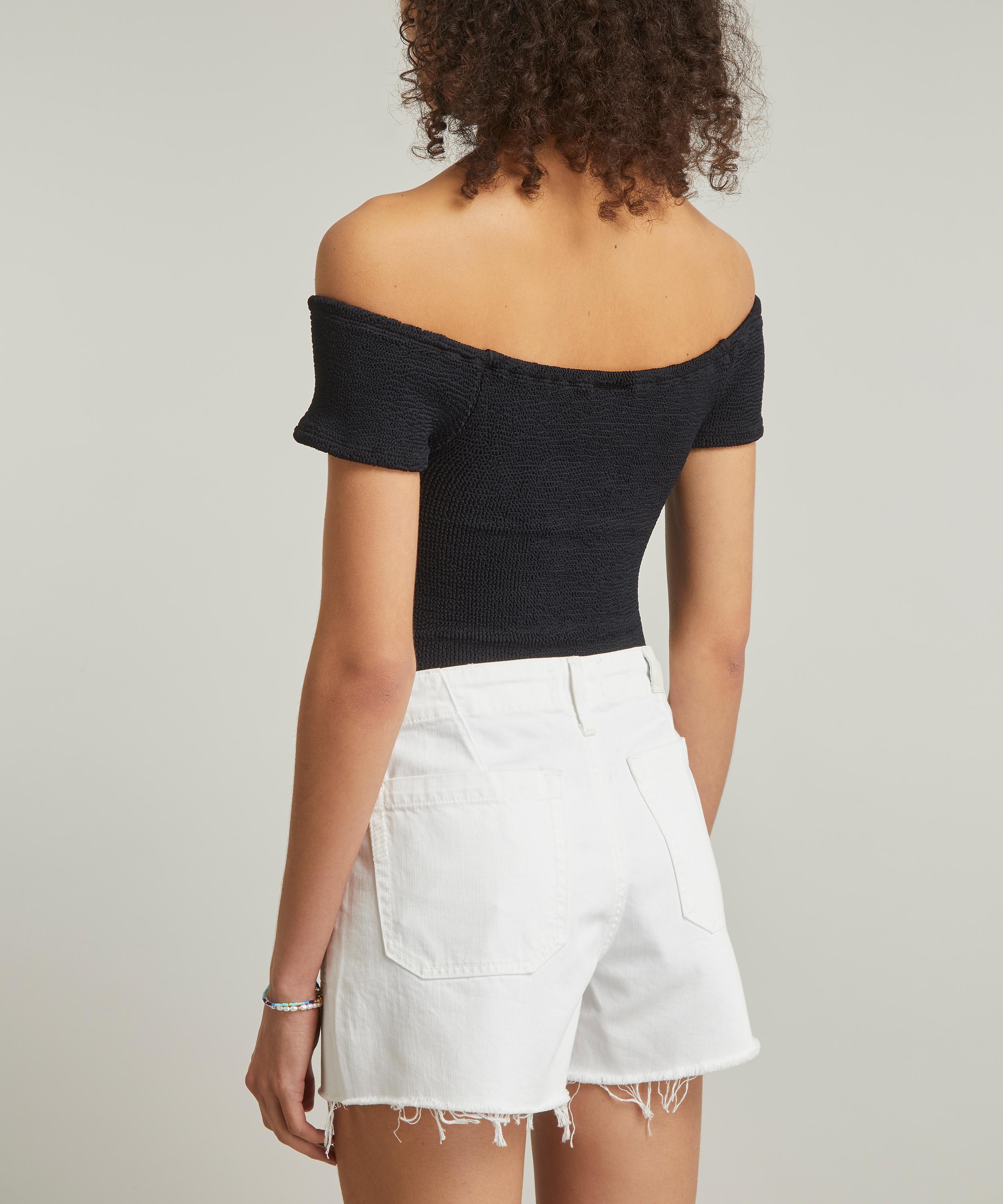 Crafted from the British label’s trademark crinkle cloth fabric, this off-the-shoulder top offers a flattering, form-fitting silhouette complete with light bust support. Versatile and easy-to-wear, pair it with anything from denim shorts to patterned skirts.