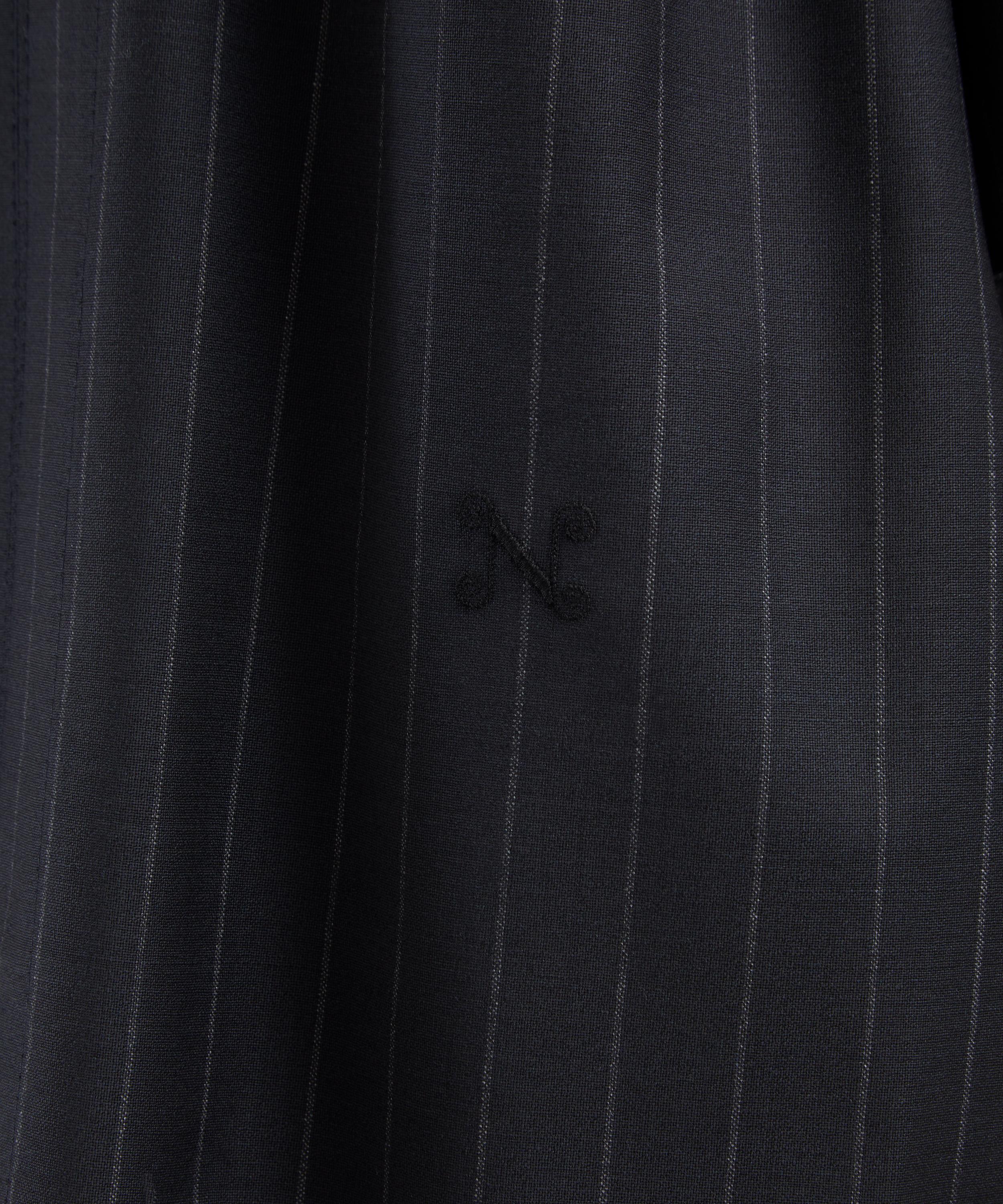 Just in time for the milder months ahead, Nackiyé presents its iconic Grand Bazaar Top reimagined with short sleeves. Crafted from a wool-blend pinstripe fabric with a shawl collar and the signature double-pearl neck pin, it’s finished with subtle ‘N’ embroidery for a refined, polished touch.