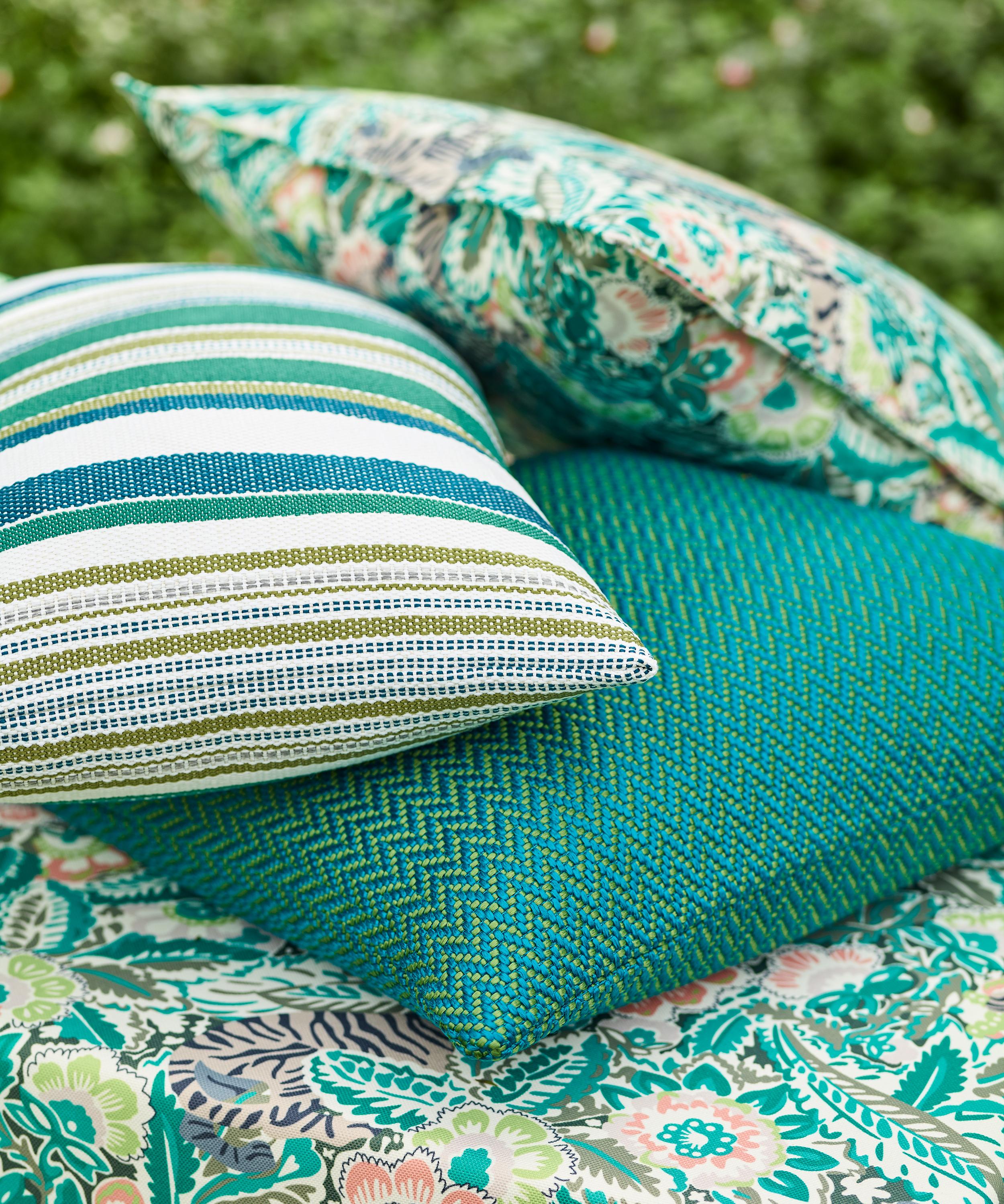 The design is expertly printed in Italy onto Majorelle – a densely woven, high-performance furnishing fabric made using the highest quality yarns and cutting-edge techniques. Specifically designed for outdoor use, Majorelle brings to life the more expressive and painterly designs in the collection with vibrant colour effects. Durable and intricately detailed, it’s perfect for cushions and day beds.