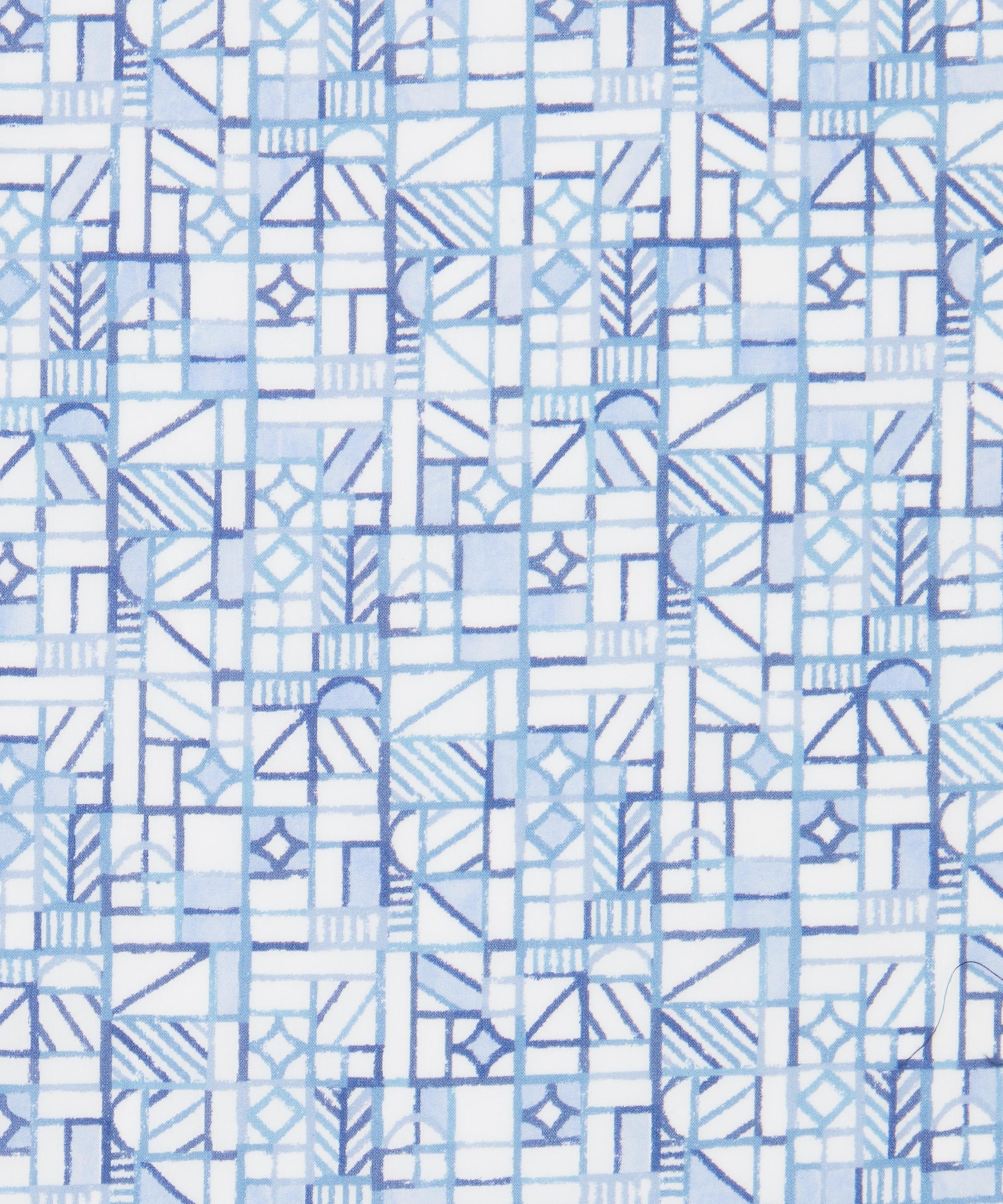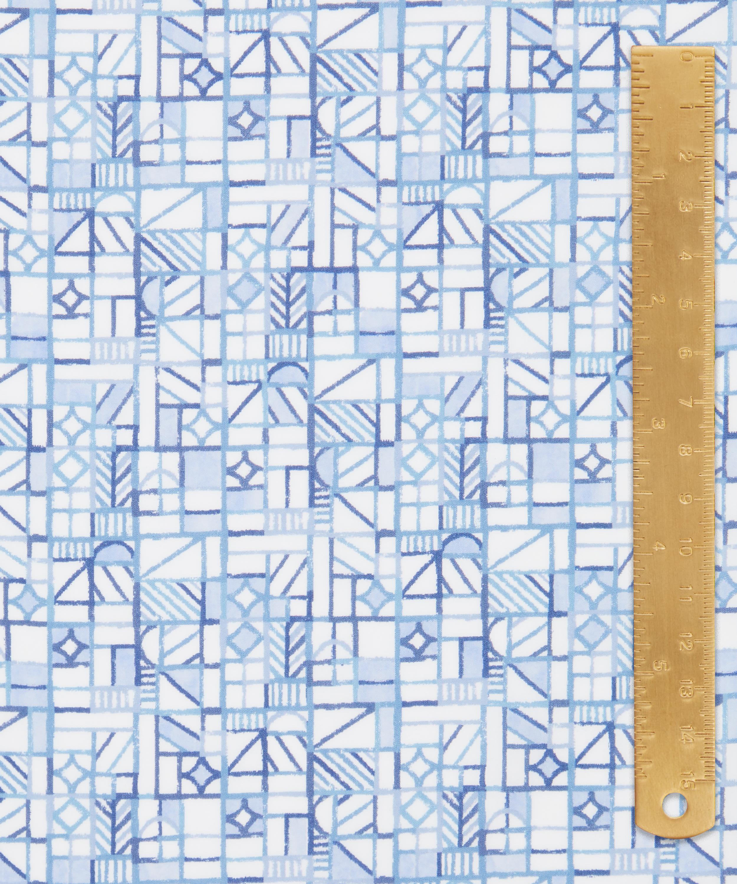 Paying homage to the iconic timber work of the Liberty store’s distinctive exterior architecture, this design was hand-painted in the London studio using a variety of print rollers and printing inks. Adapted into a series of tonal colourways, Grand Tudor House evokes a textural patchwork of alternating, stacked geometric shapes hued in fluctuating shades.