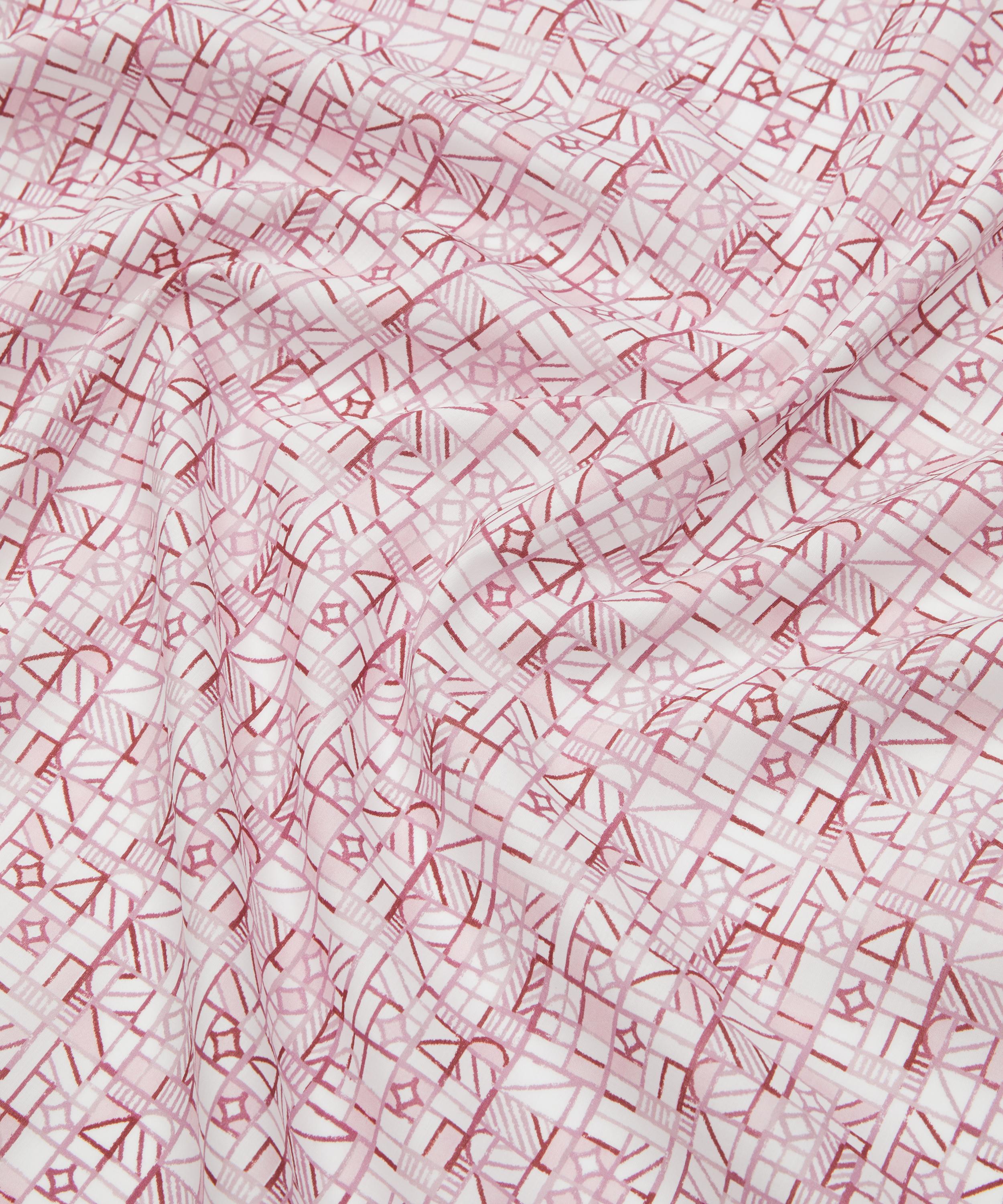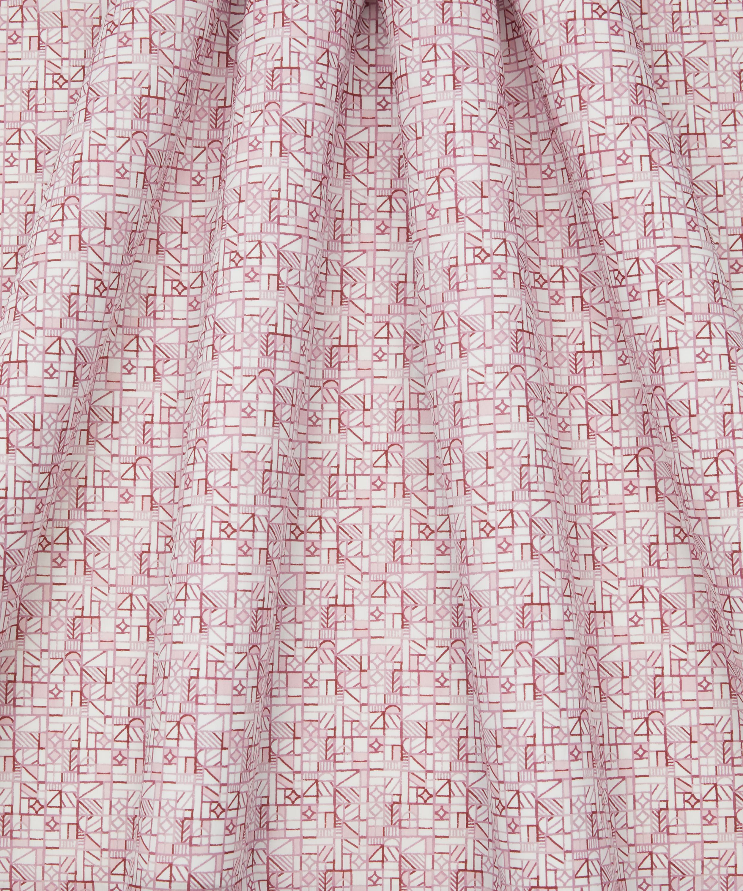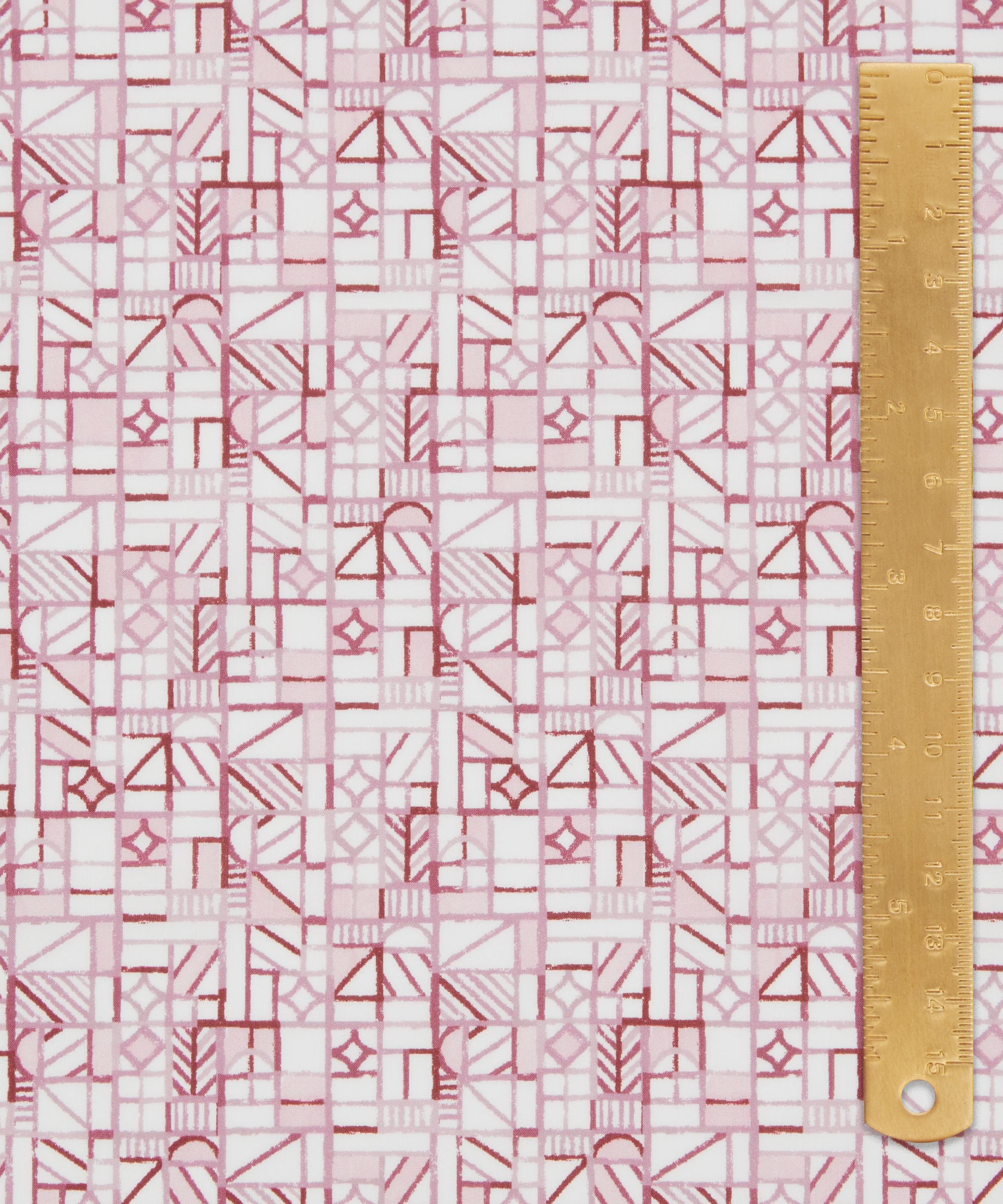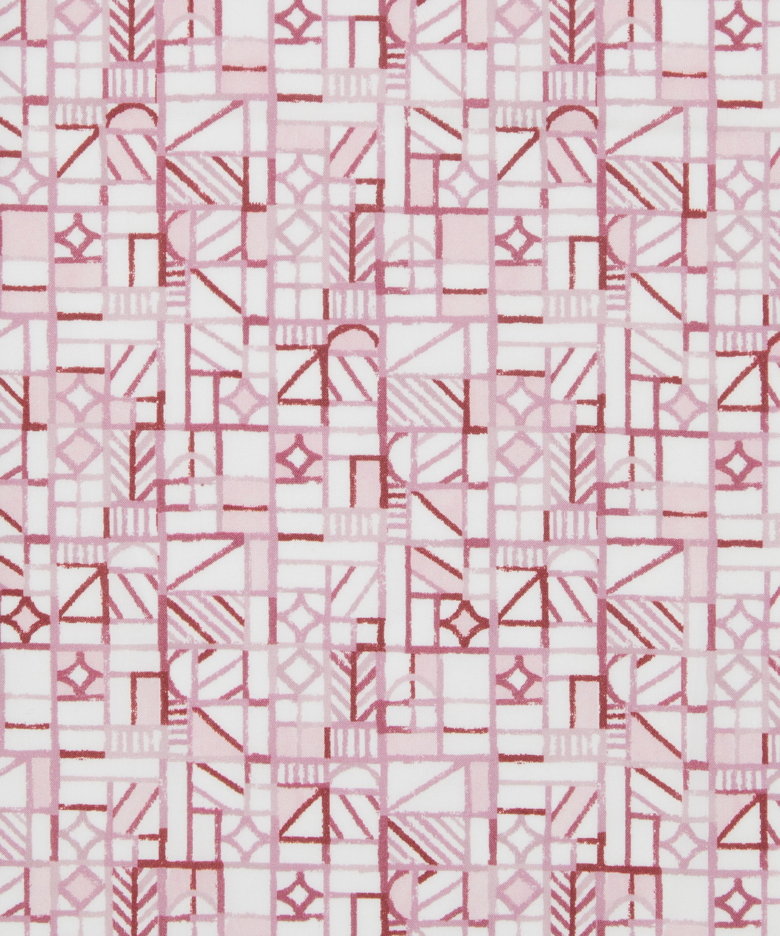 Paying homage to the iconic timber work of the Liberty store’s distinctive exterior architecture, this design was hand-painted in the London studio using a variety of print rollers and printing inks. Adapted into a series of tonal colourways, Grand Tudor House evokes a textural patchwork of alternating, stacked geometric shapes hued in fluctuating shades.