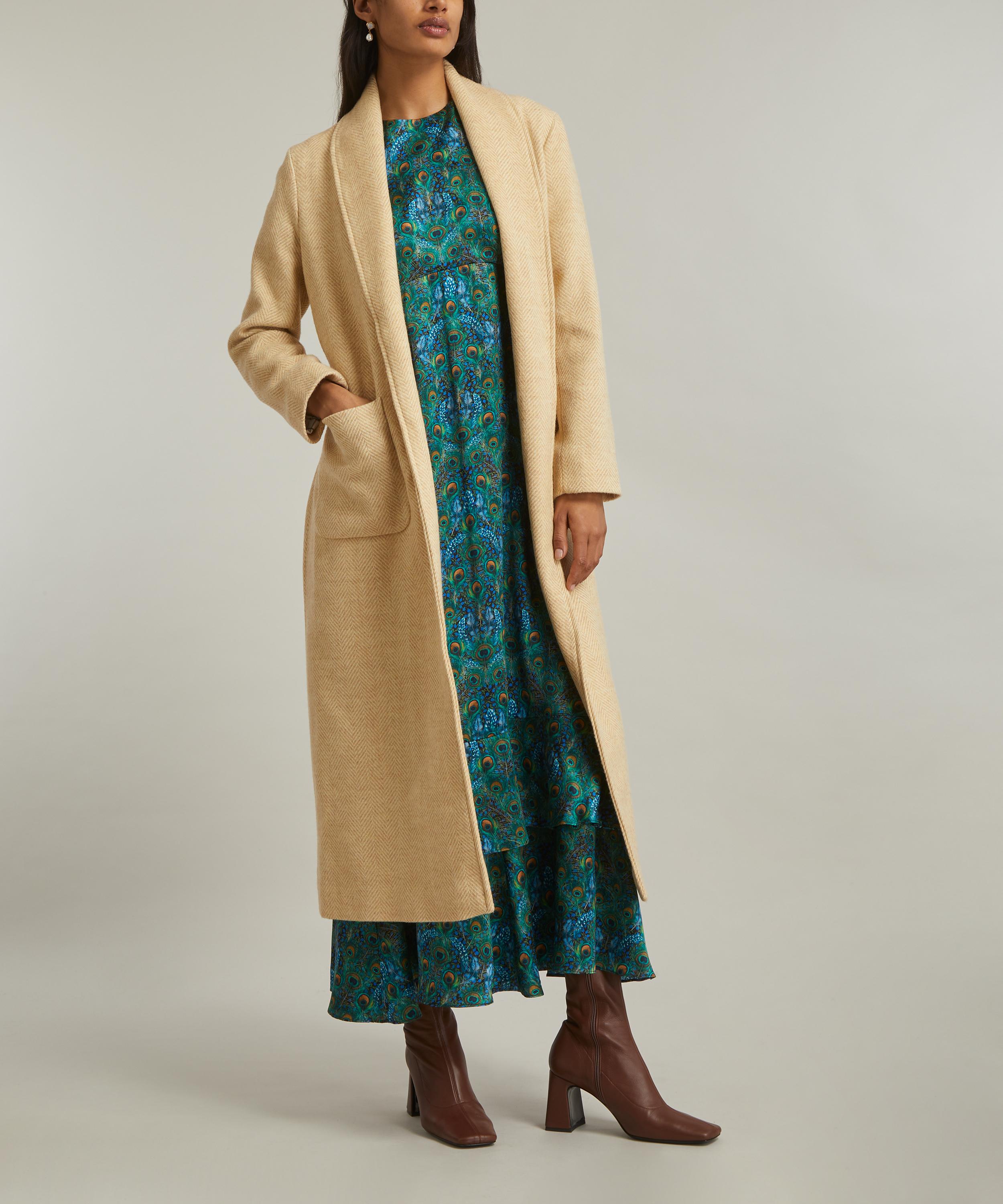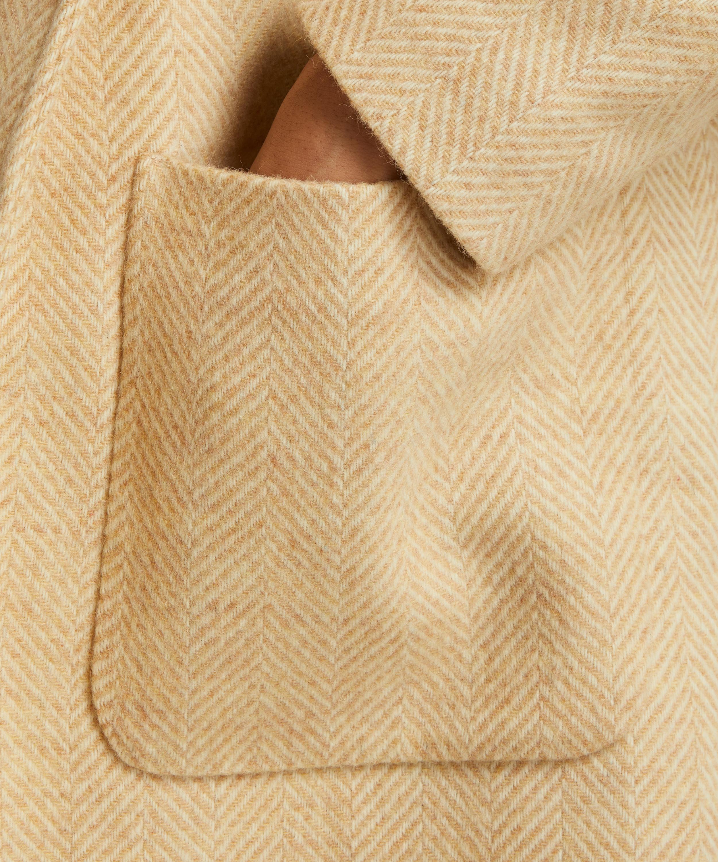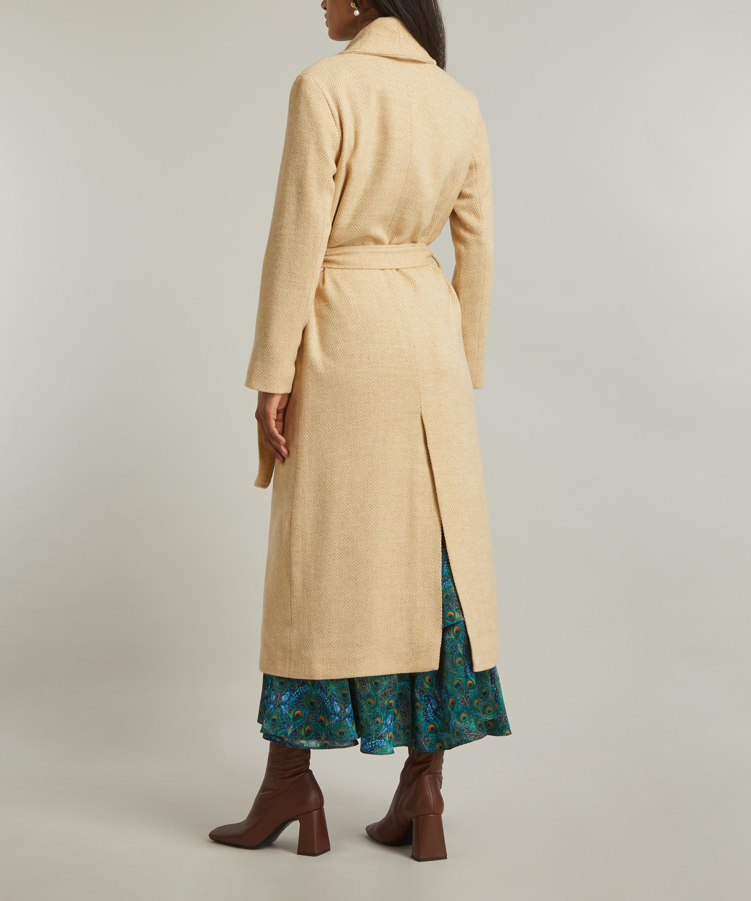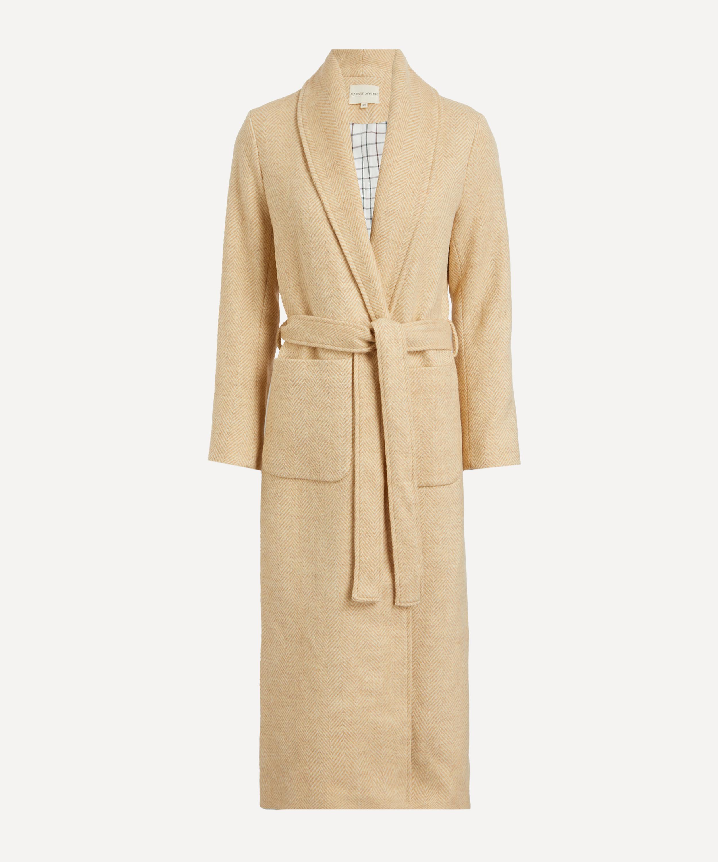 A fusion of feminine silhouettes and fanciful frills, the Grape Coat from Maria de la Orden perfectly encapsulates the European label’s whimsical aesthetic. Cut from soft wool to a tailored straight-fit, it’s elevated by the playful herringbone pattern. Complete with a turned-down collar, tie belt and two front pockets, this coat is wearable for work, or weekends when paired with patterned trousers.