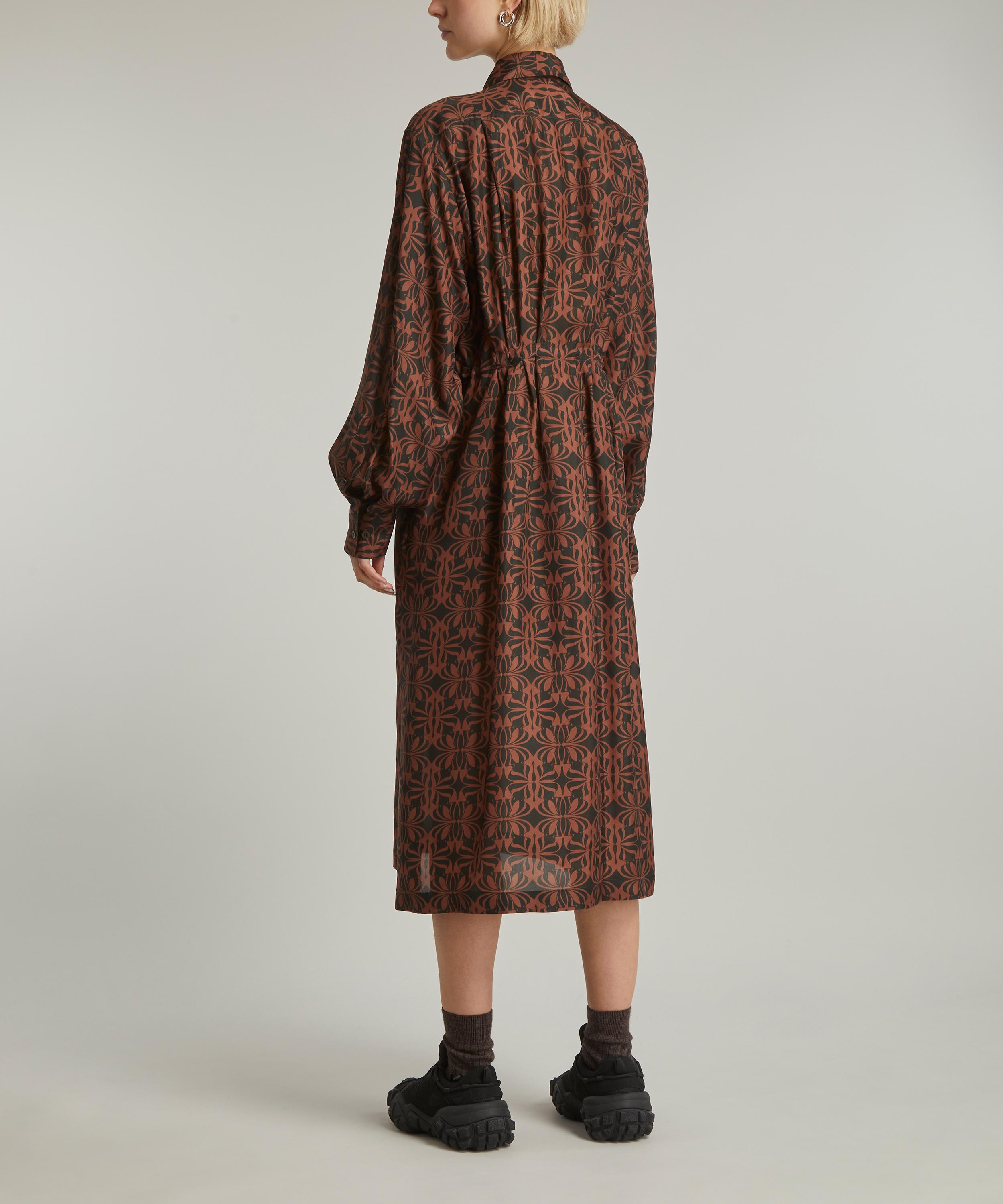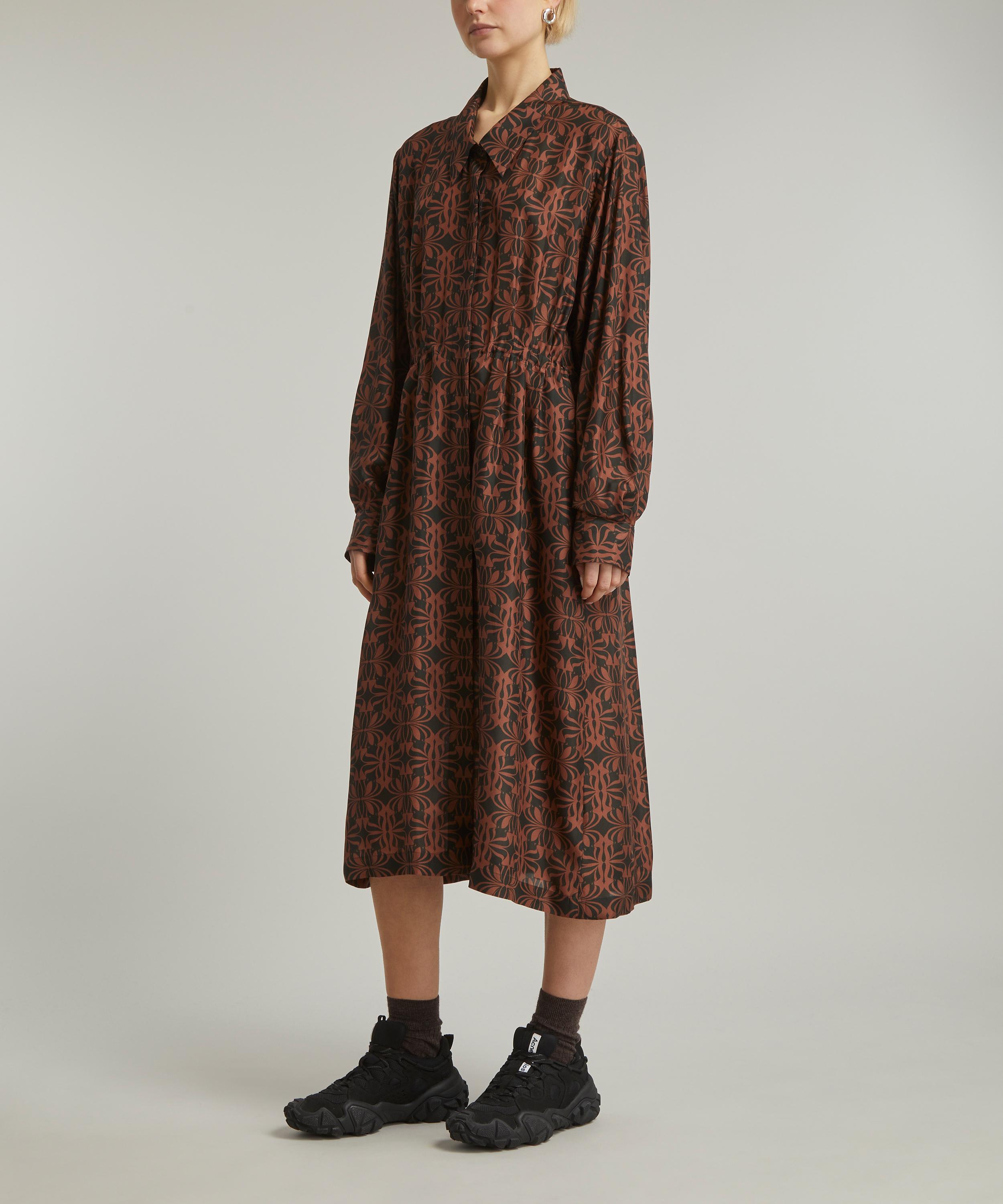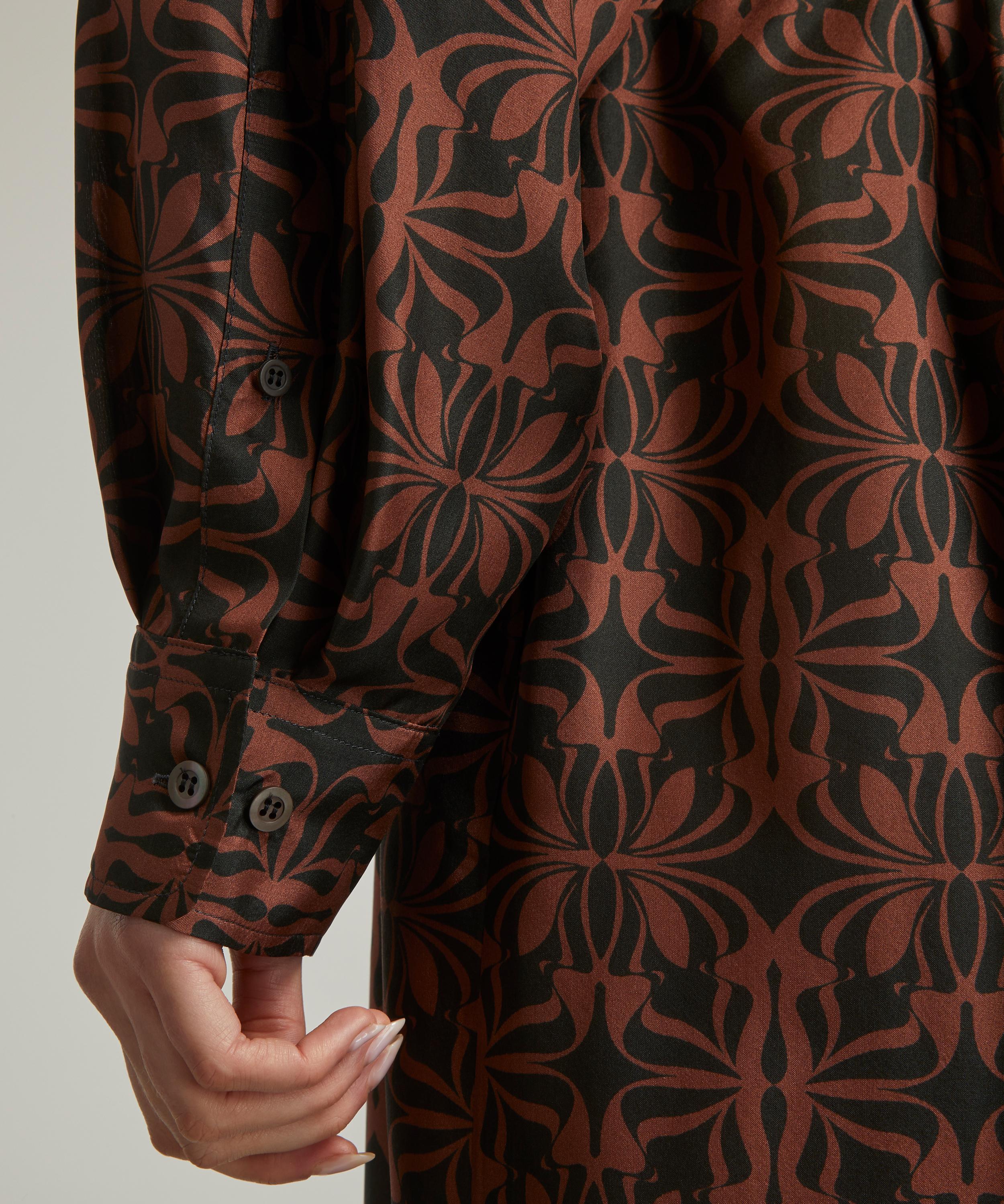 Printed in the retro-inspired Graphic Buttery print, this silk shirtdress is designed for a loose fit with its voluminous blouson sleeves, and natural waistline, which falls to a flowy midi-length.