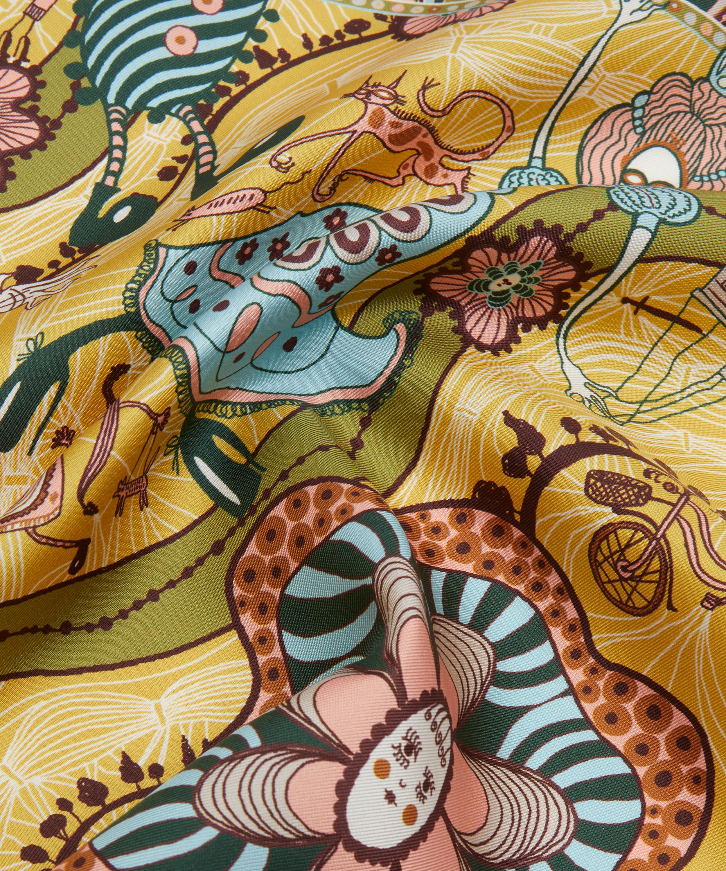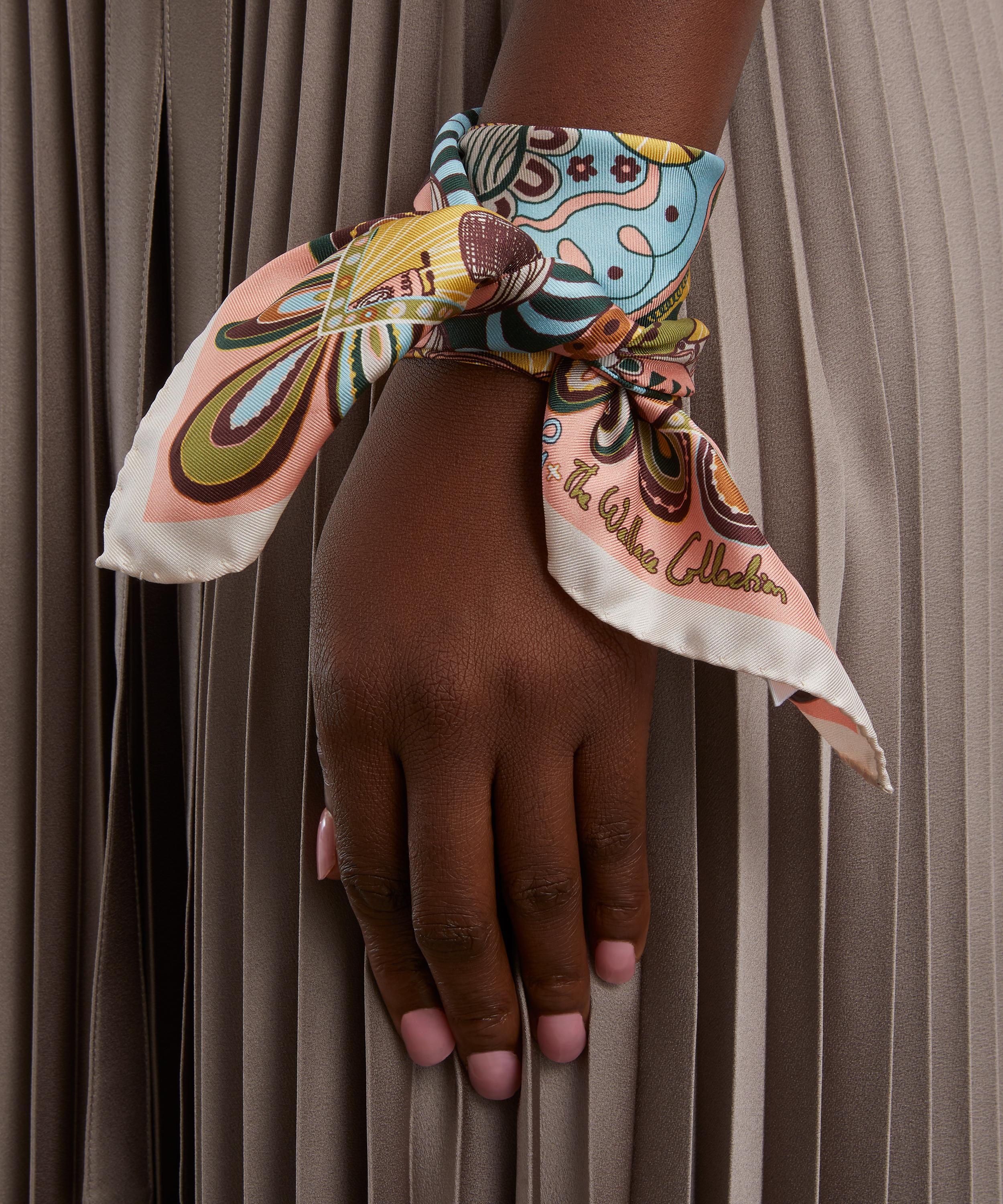 Meticulously crafted in Italy from a luxurious and ultra-soft silk twill fabric with hand-rolled hems, it features the Shirley Smith print by Grayson Perry – inspired by his invented muse Shirley Smith, the central figure of his Delusions of Grandeur exhibition at the Wallace Collection, it depicts imaginative characters and a crude version of Hertford house, where the collection resides. Designed to stand the test of time, this versatile accessory staple will breathe new life into your wardrobe with its rich colouration and texture. Try styling it as a traditional neck scarf to lock in warmth, wear it as a chic wrist band for a bold style statement, or use as a creative embellishment to a bag, the possibilities are endless.