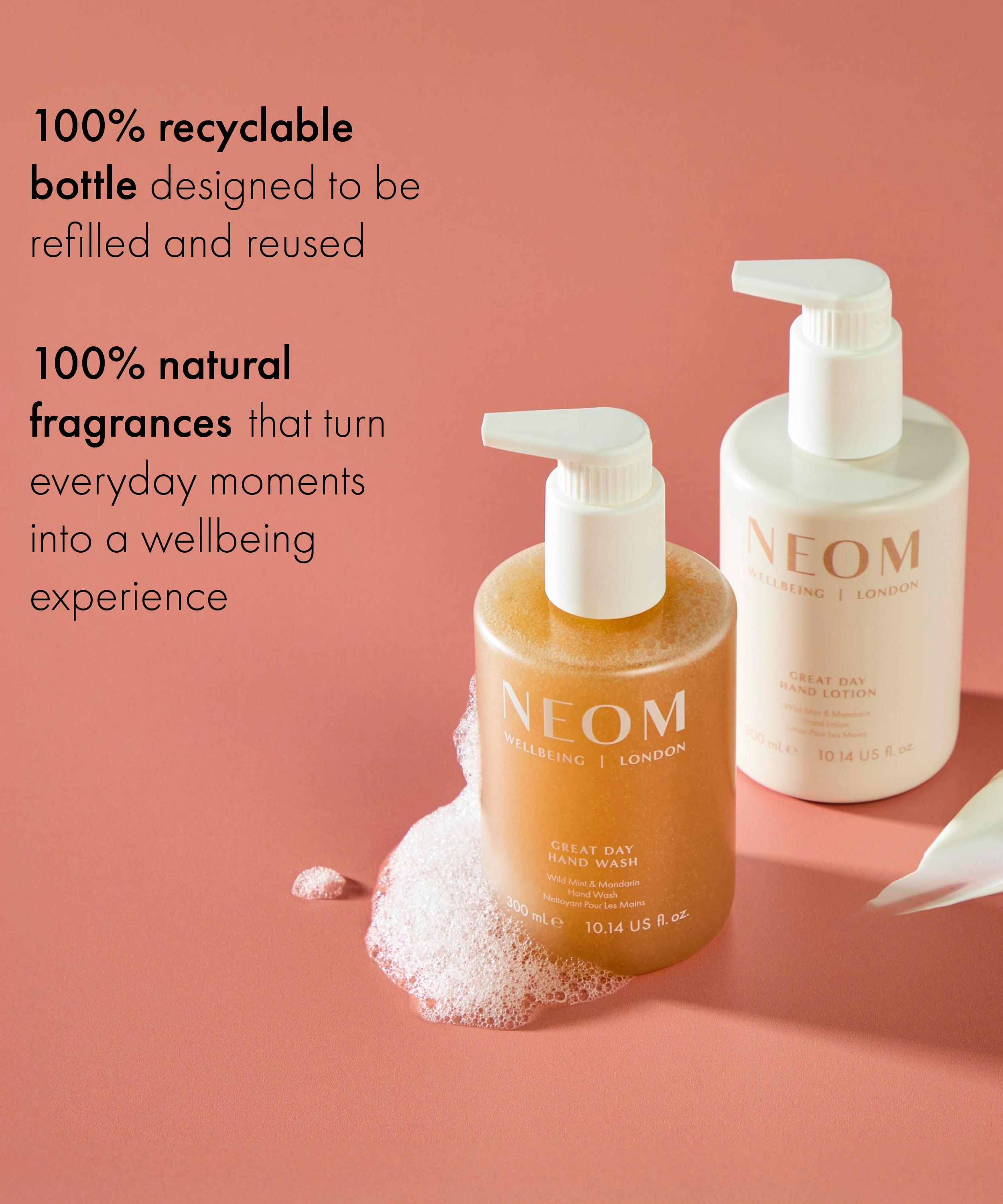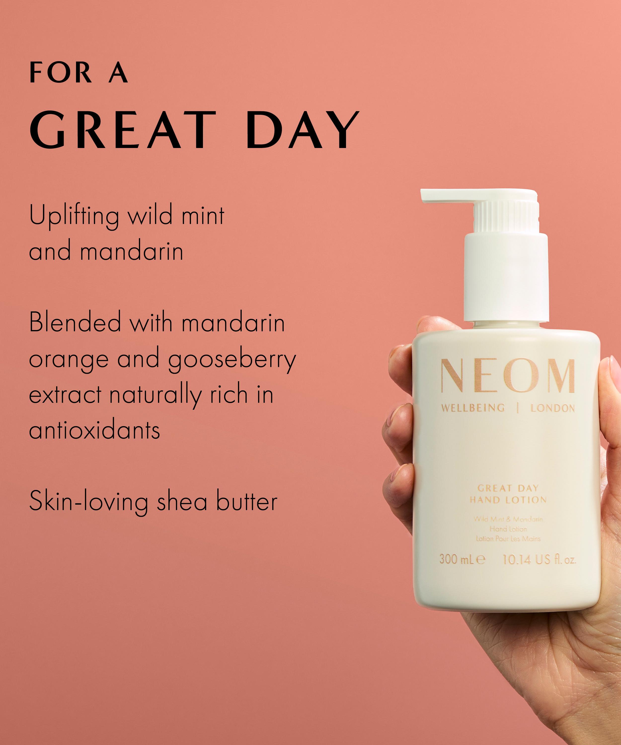 Offering an uplifting addition to your daily routine, NEOM Wellbeing London's Great Day Hand Lotion is infused the fresh aromas of wild mint and mandarin.