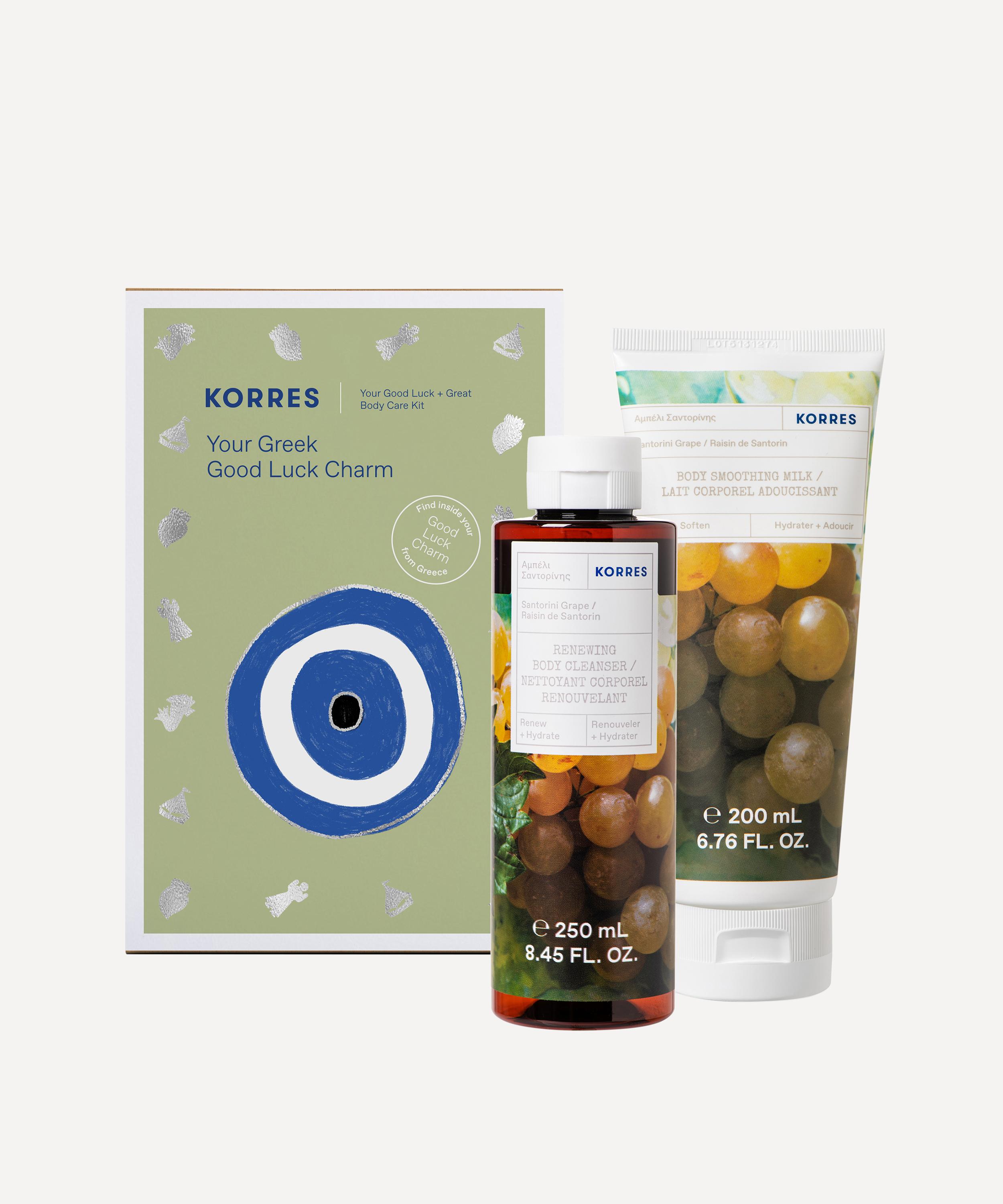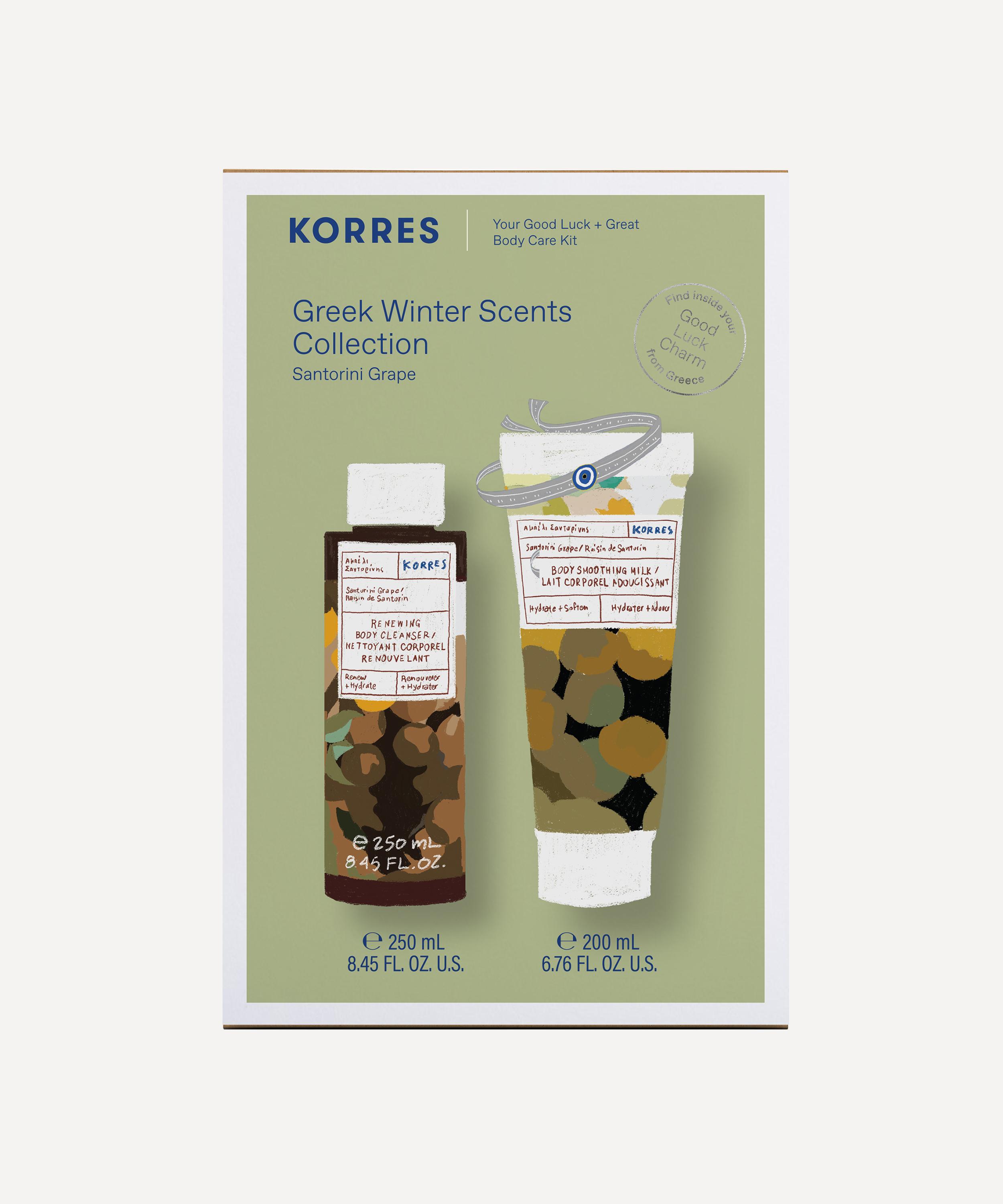 Immerse in the revitalising fragrance of KORRES’ Greek Winter Santorini Grape Shower Gel & Body Milk gift set, a duo of nourishing formulas to elevate your daily body care regime.