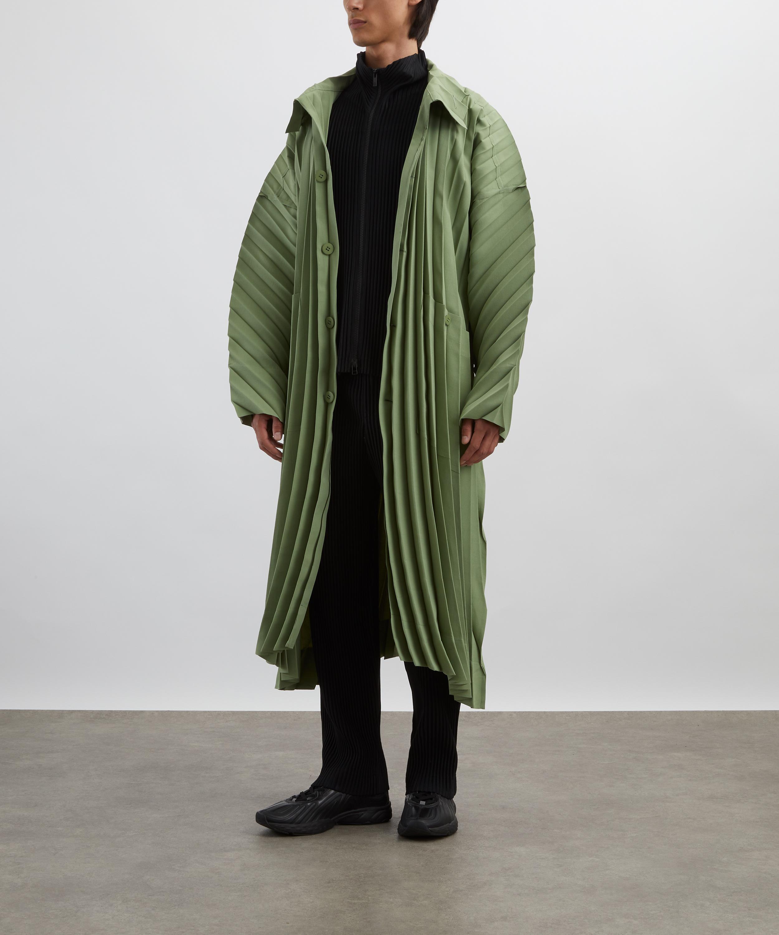 The Green EDGE COAT LIGHT from HOMME PLISSÉ ISSEY MIYAKE channels the avant-garde spirit of the label’s late founder.