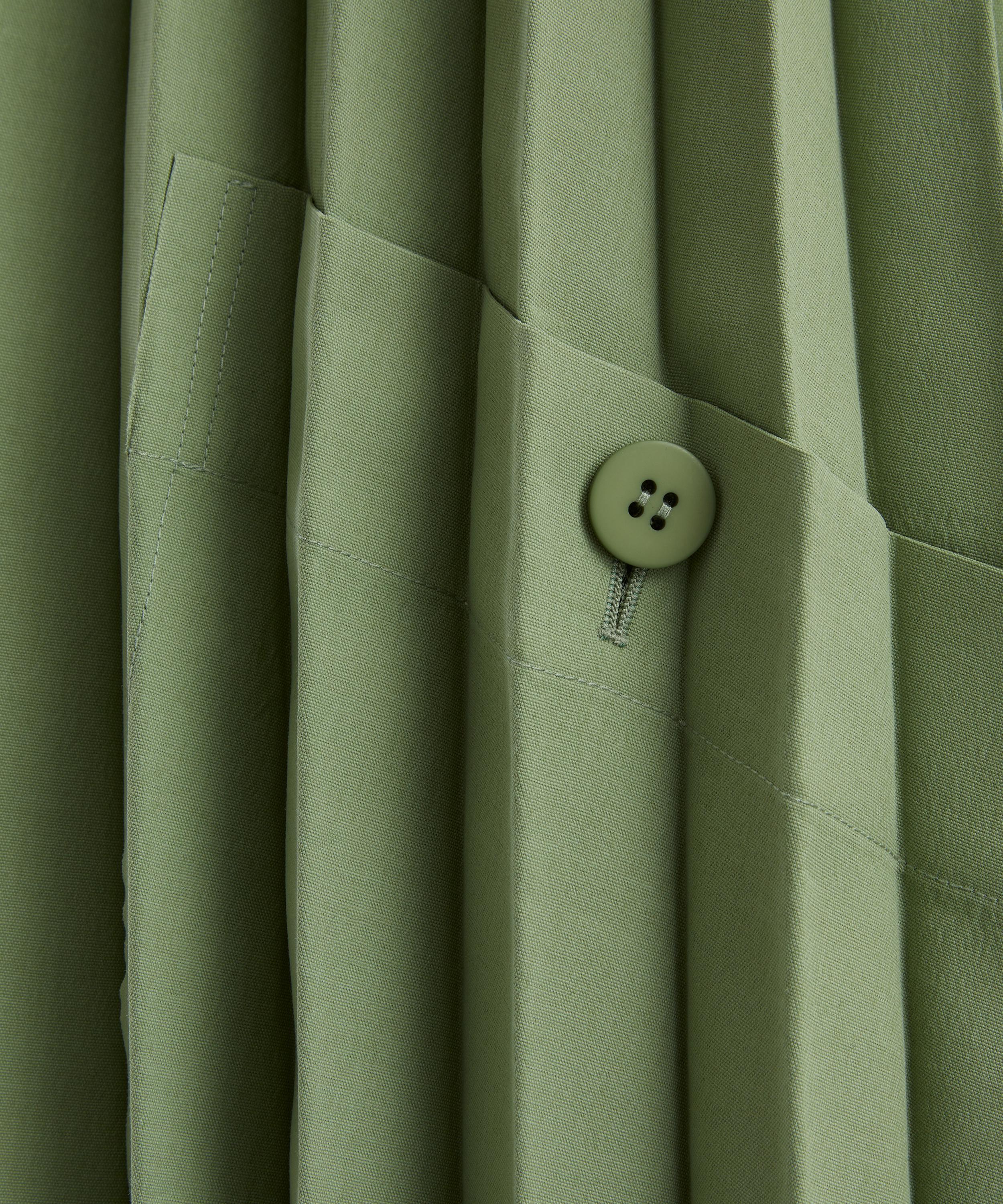 Part of the EDGE COAT LIGHT series - outerwear crafted from high-density, water-repellent woven polyester - this green coat is cut to a flattering A-line silhouette, featuring a high neckline, sculptural dolman sleeves, and a streamlined button closure. Two side pockets add a practical finish to this modern, functional layer.