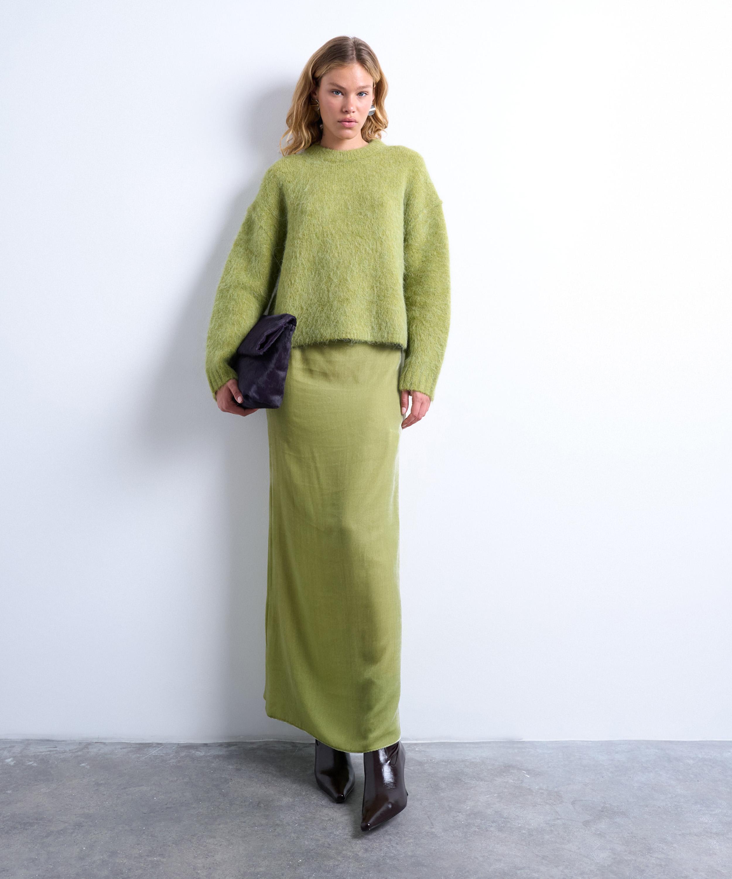 This Green Knitted Alpaca Boxy Jumper is part of the exclusive Liberty x TOPSHOP residency, marking TOPSHOP’s highly anticipated relaunch at Liberty.